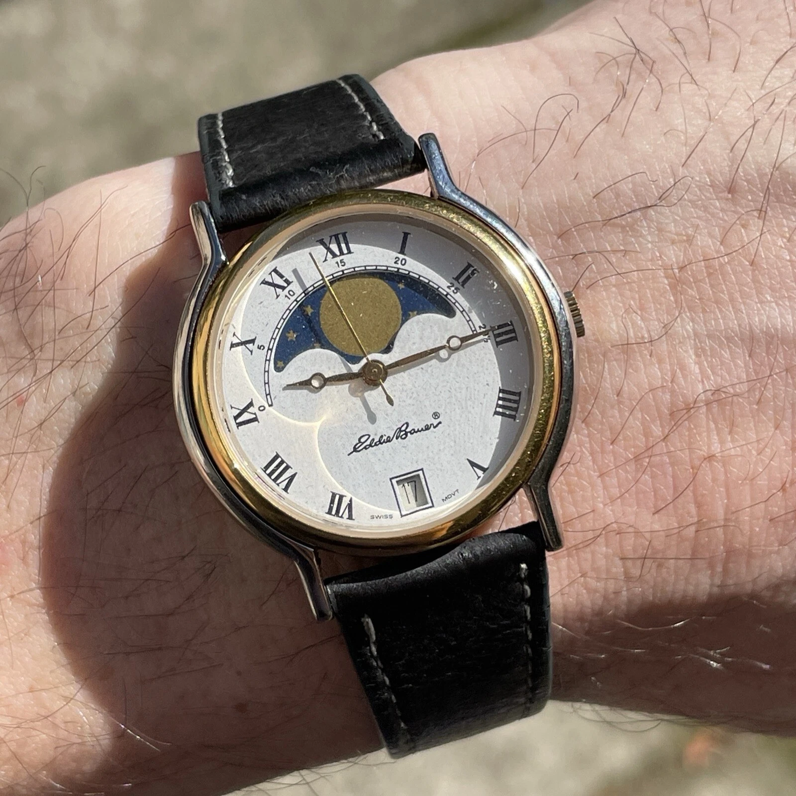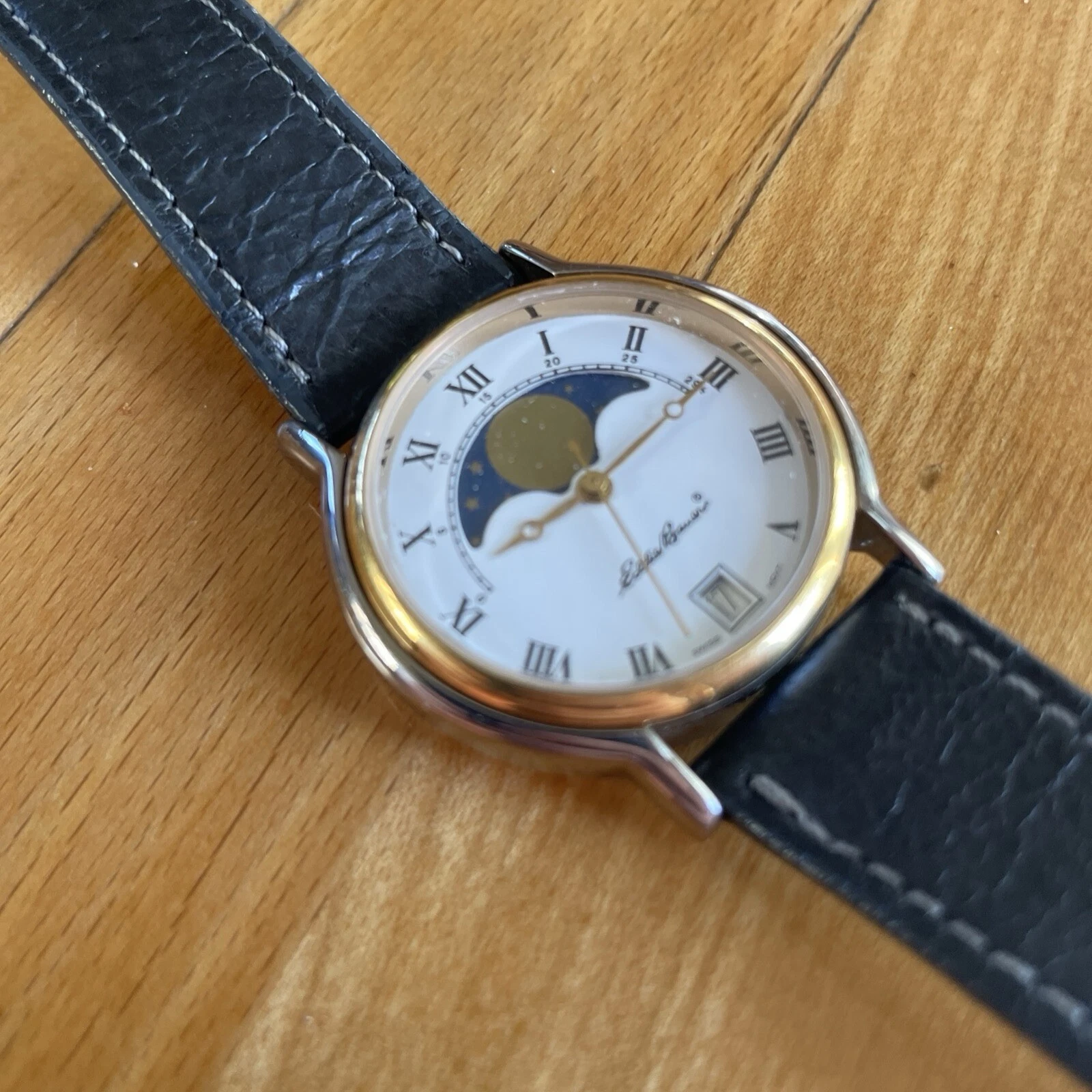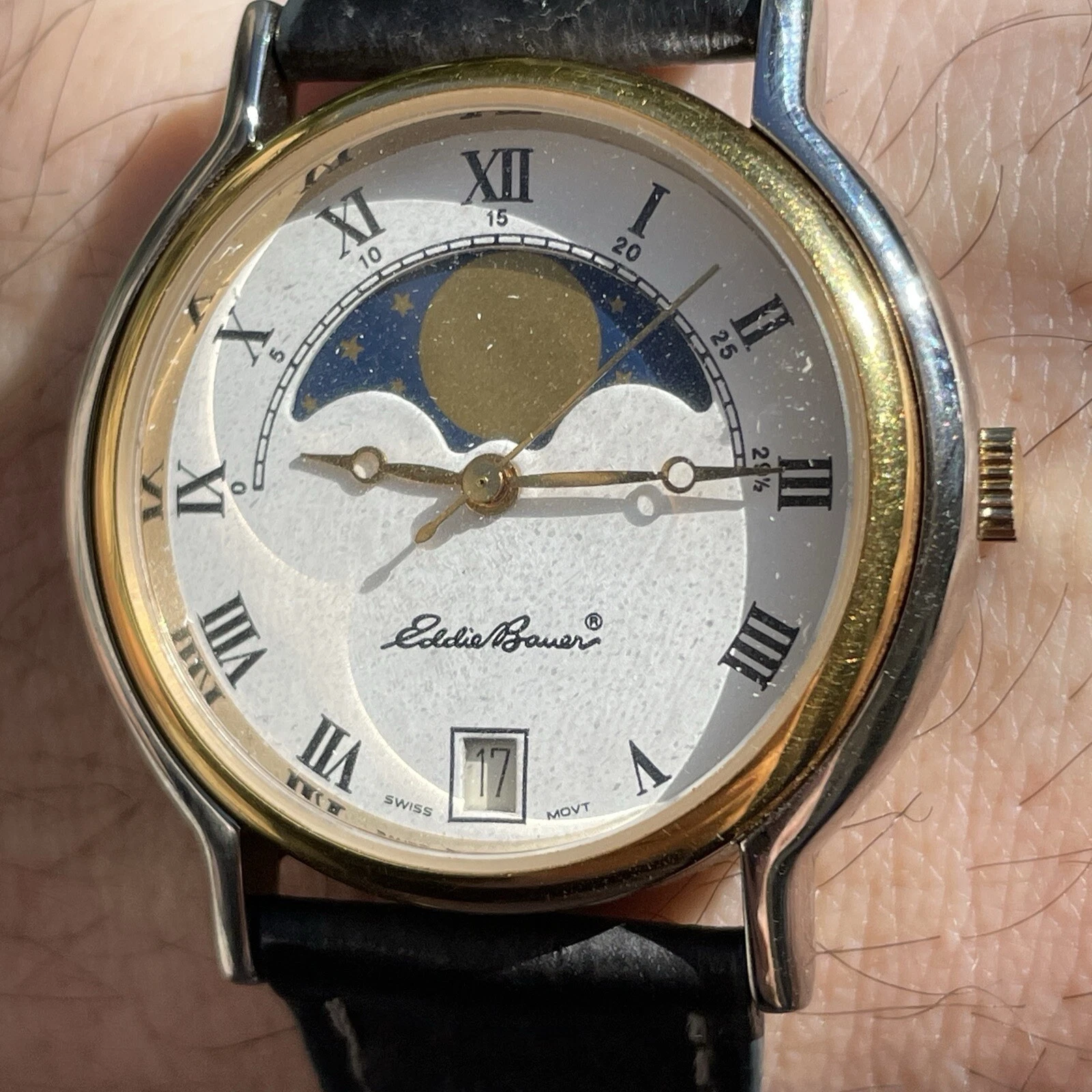 Eddie Bauer Vintage Moonphase Watch Swiss Ronda Harley Movement Leather Date