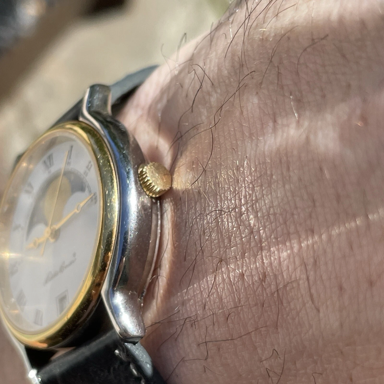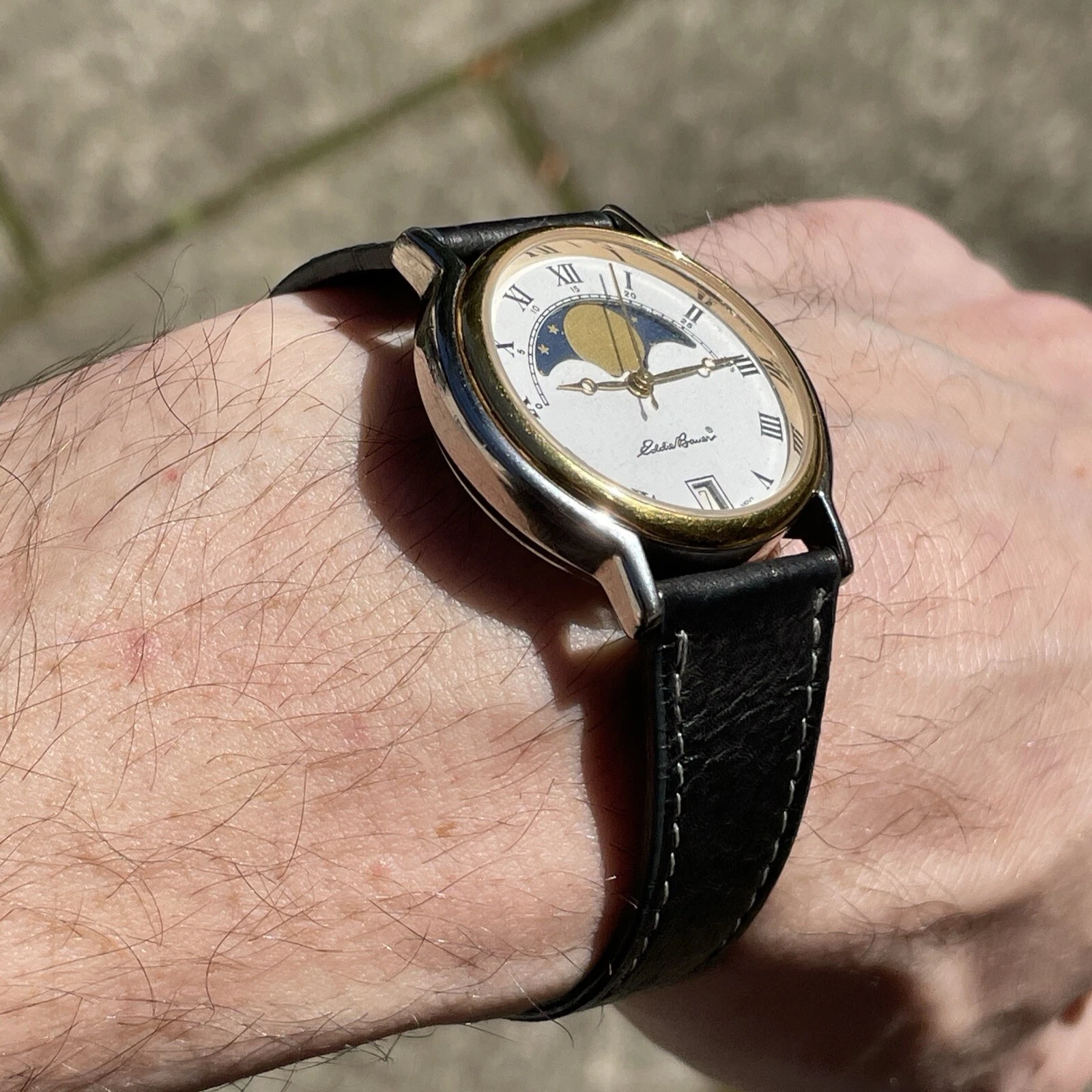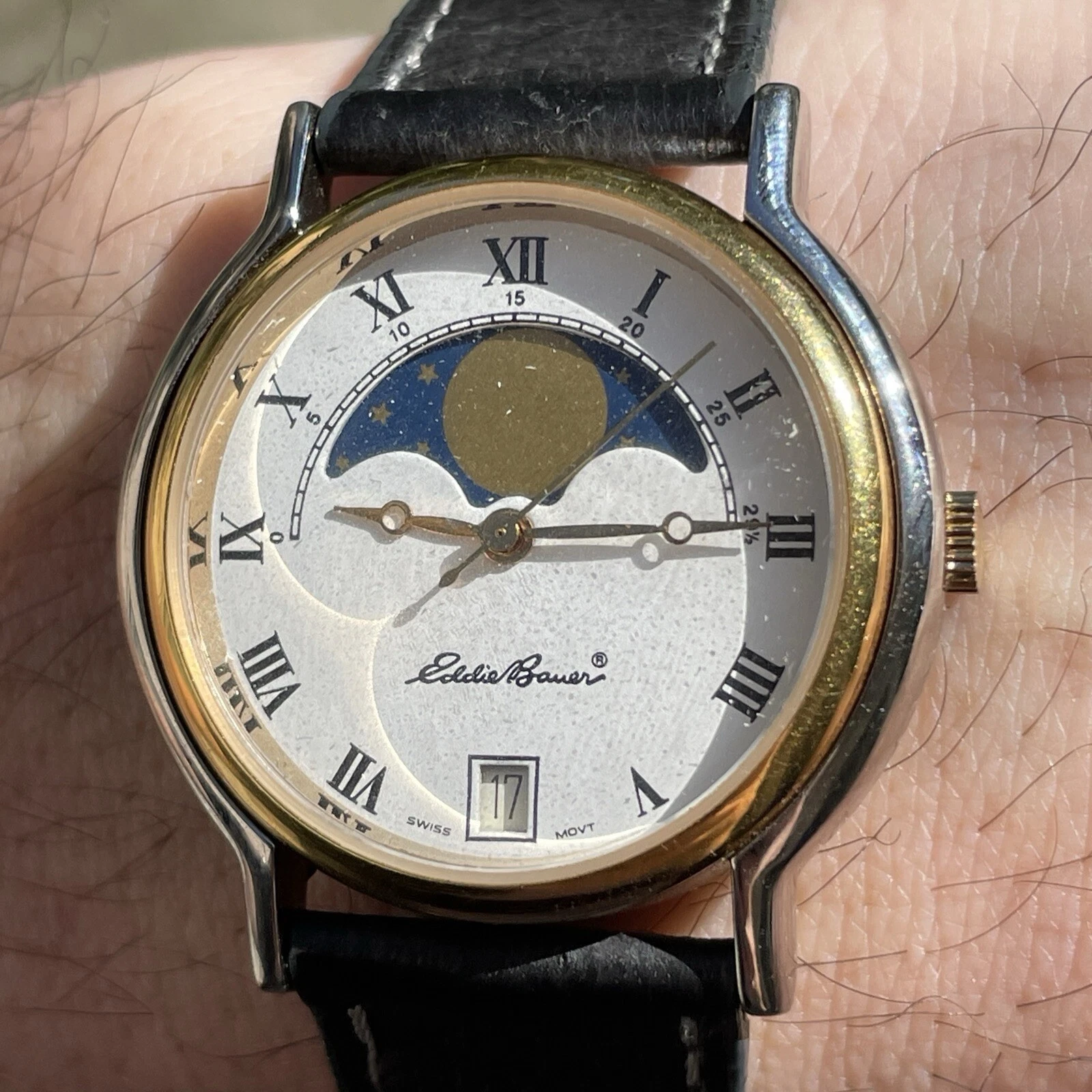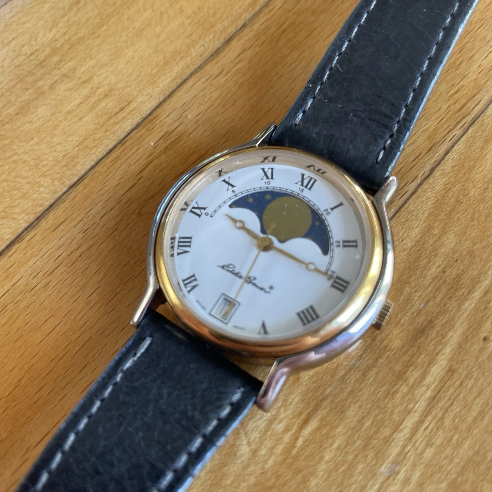 Eddie Bauer Vintage Moonphase Watch Swiss Ronda Harley Movement Leather Date