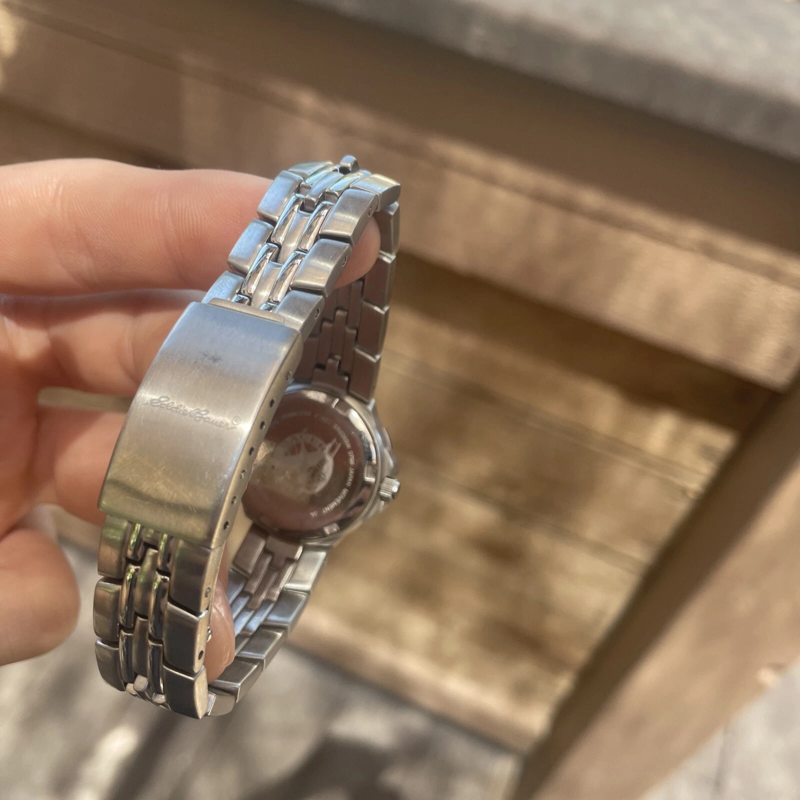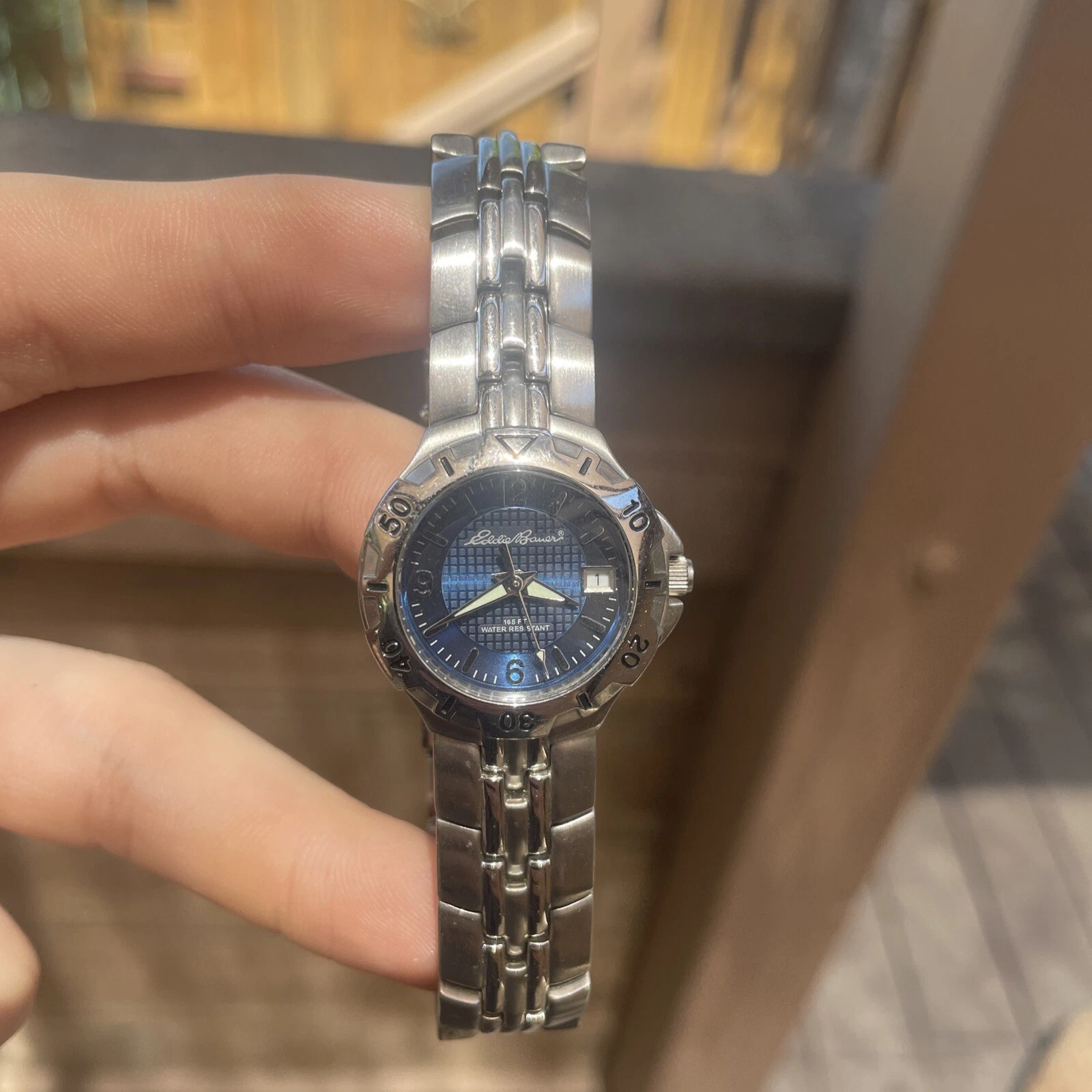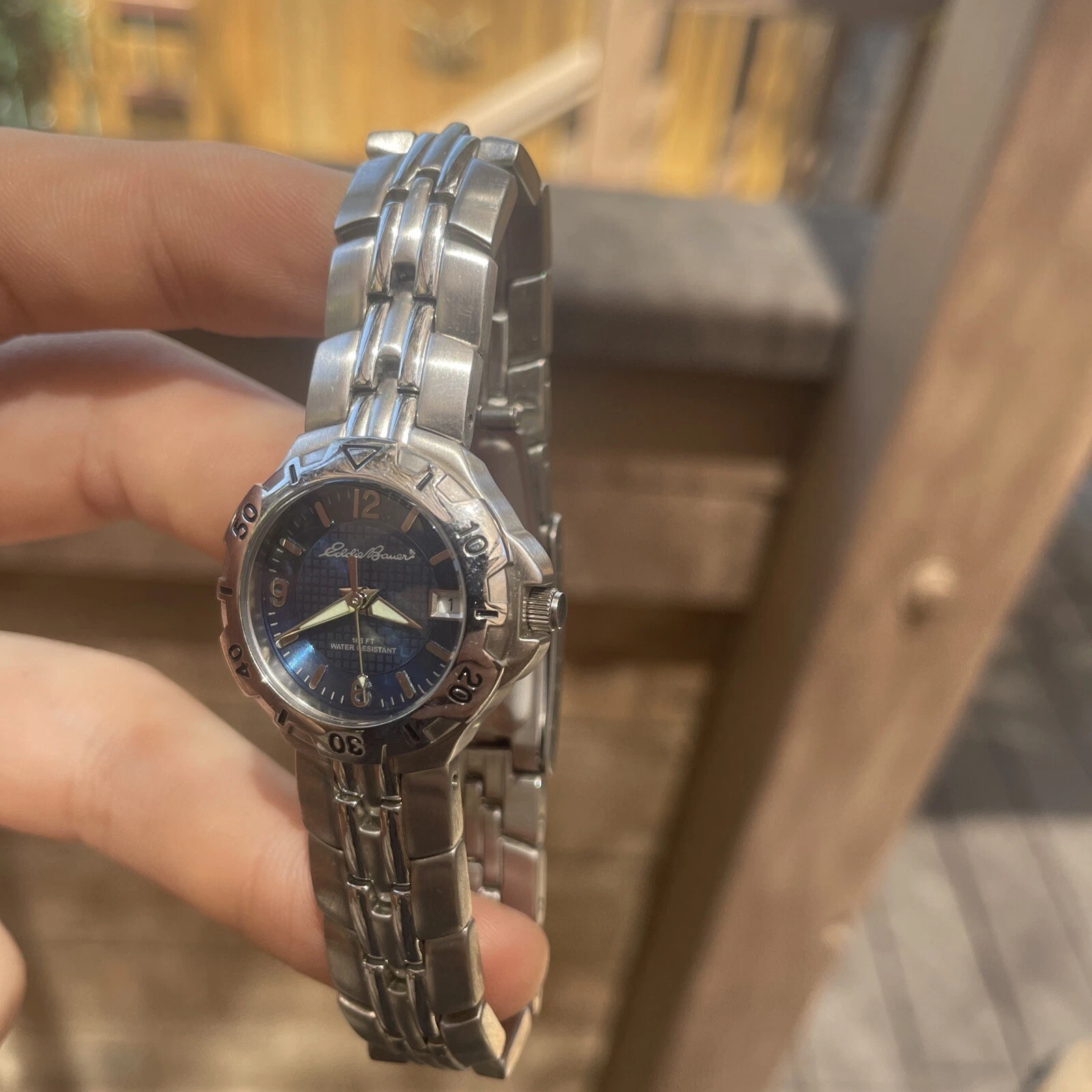Eddie Bauer Saphire Silver Water Resistant Womens Watch Day Date New Battery