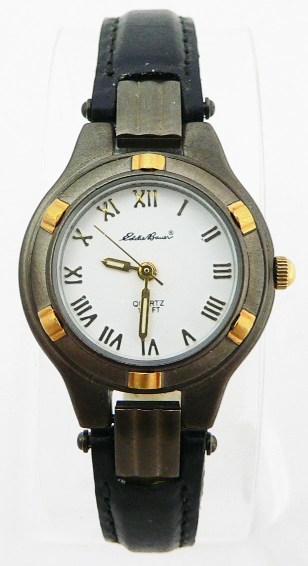 Eddie Bauer Women's White Dial Two-Tone Steel Black Strap Watch - CONVERTIBLE