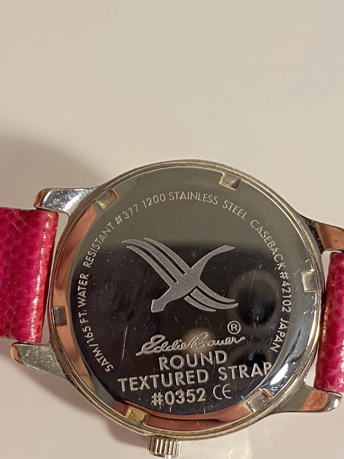 Women's pink leather #352 EDDIE BAUER 165ft Water-Resistant Watch  needs battery