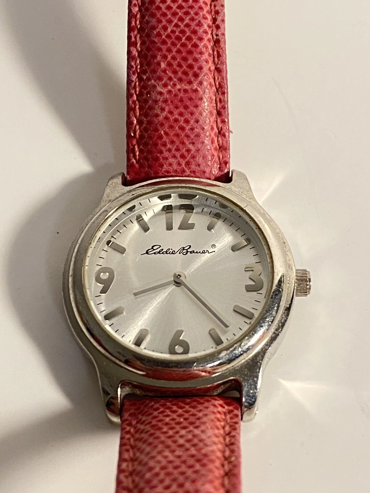 Women's pink leather #352 EDDIE BAUER 165ft Water-Resistant Watch needs battery