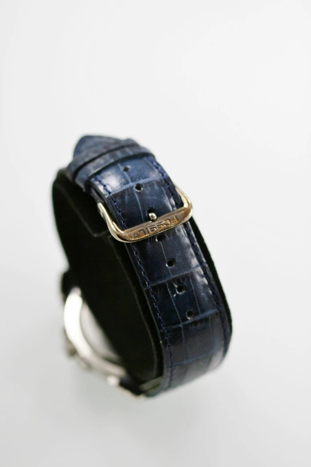 Eddie Bauer Watch Mens Stainless Silver Date 24hr Leather Blue 50m Black Quartz