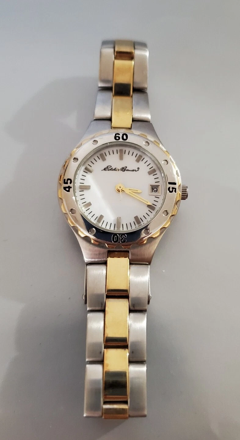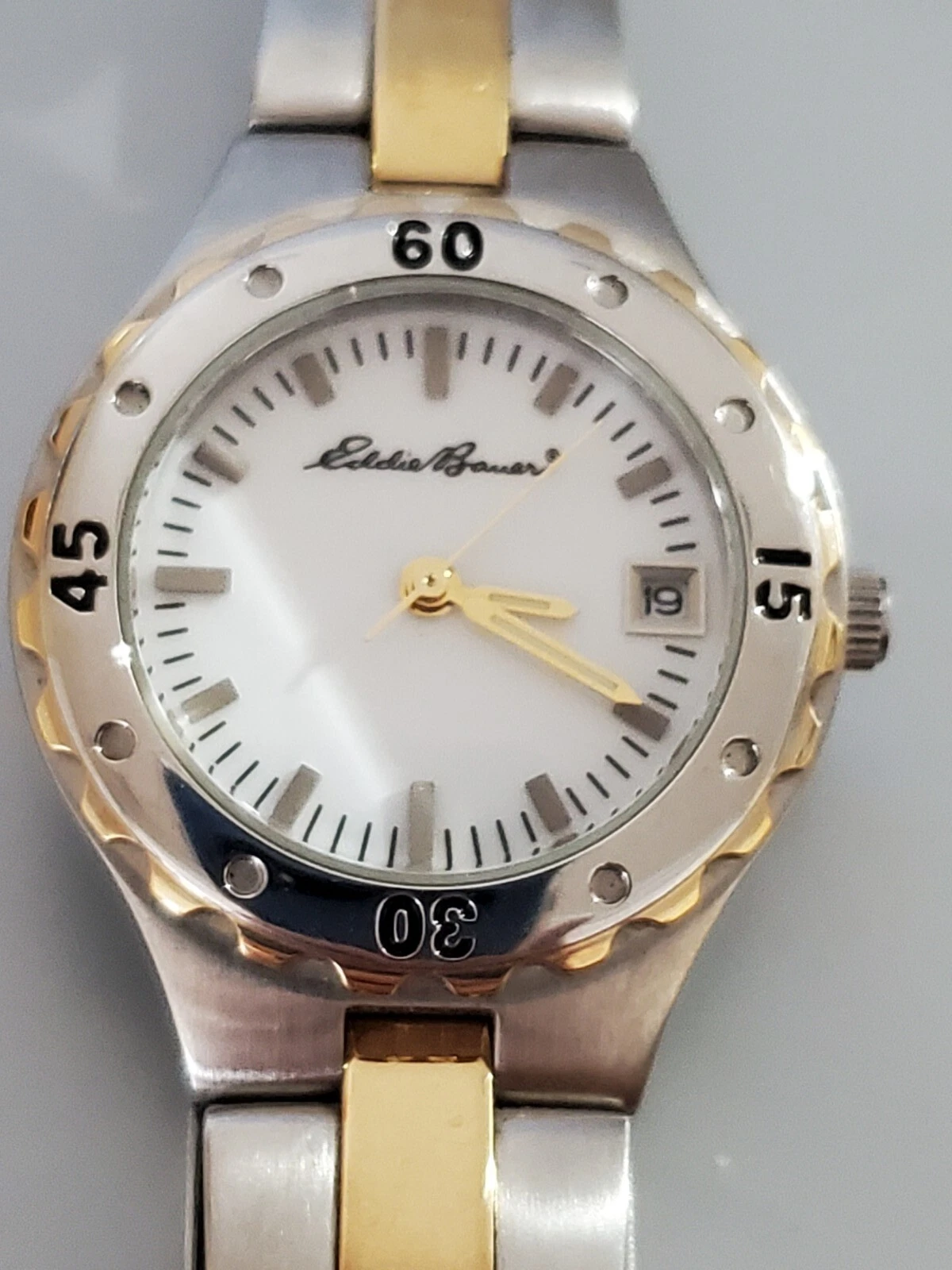 EDDIE BAUER LADIES 2 TONE SPORT BRACELET WRISTWATCH, IN BOX, NEW BATTERY