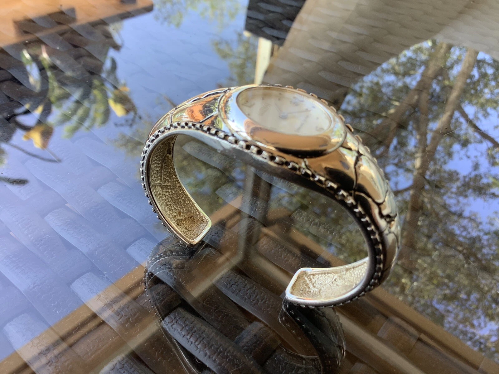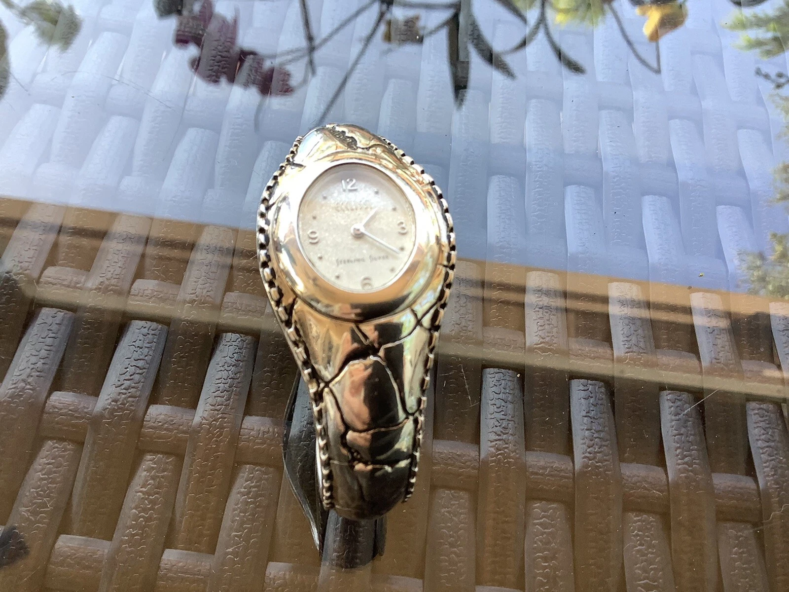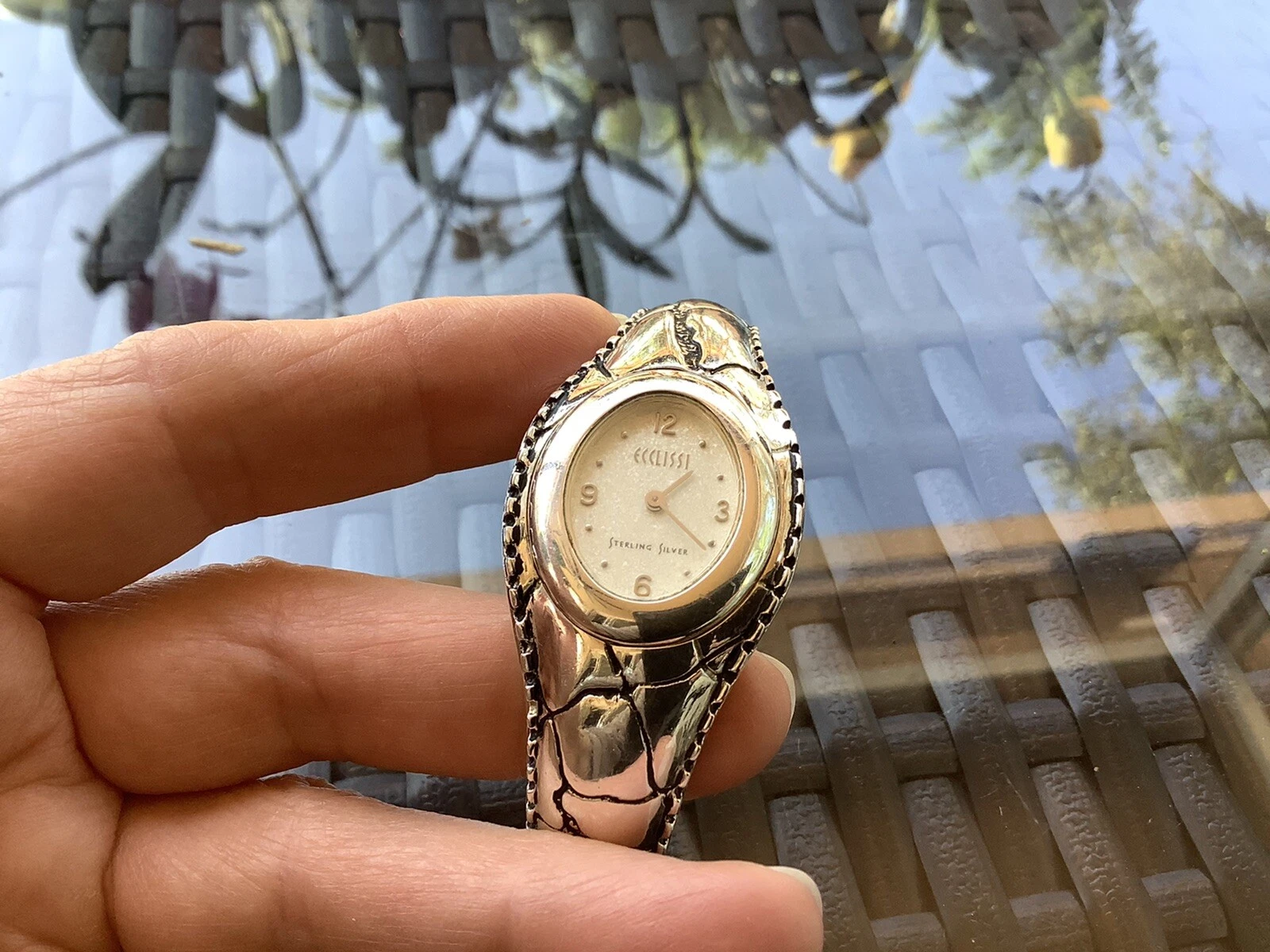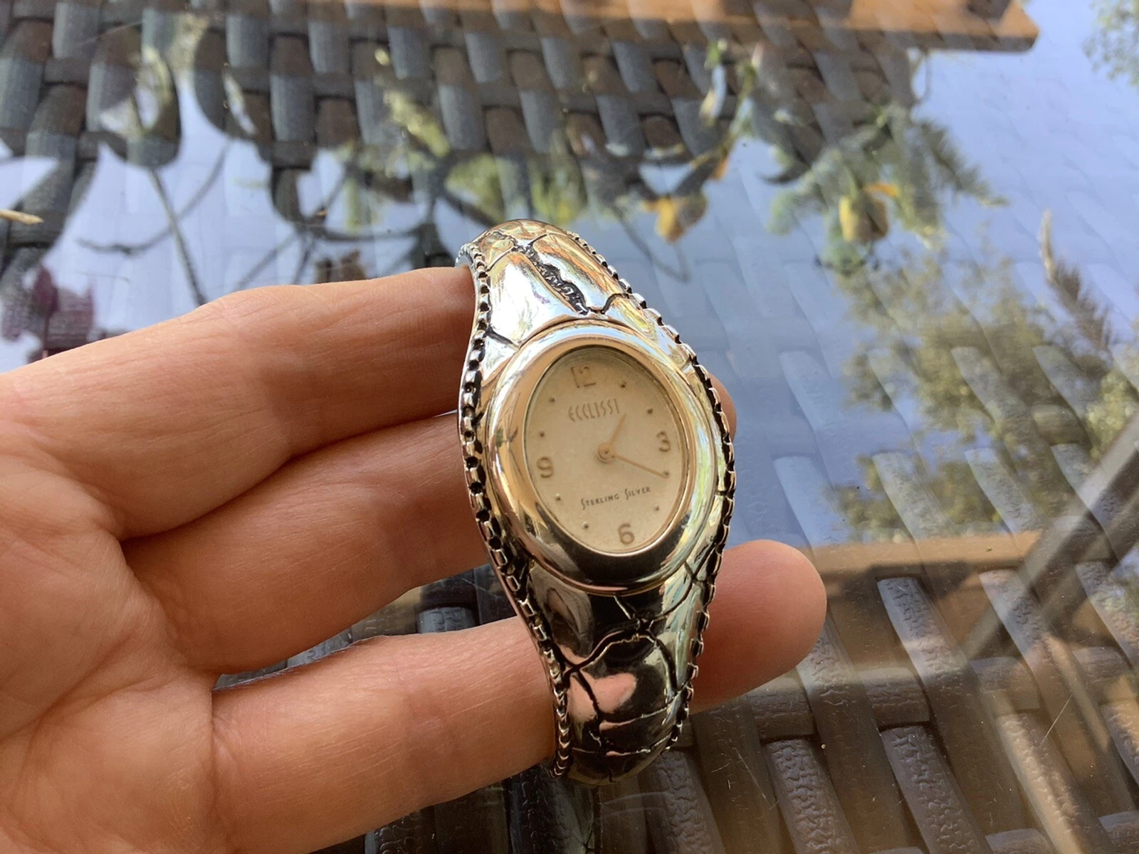ECCLISSI STERLING SILVER LADIES ALIGATOR PRINT CUFF WATCH WITH SILVER DIAL