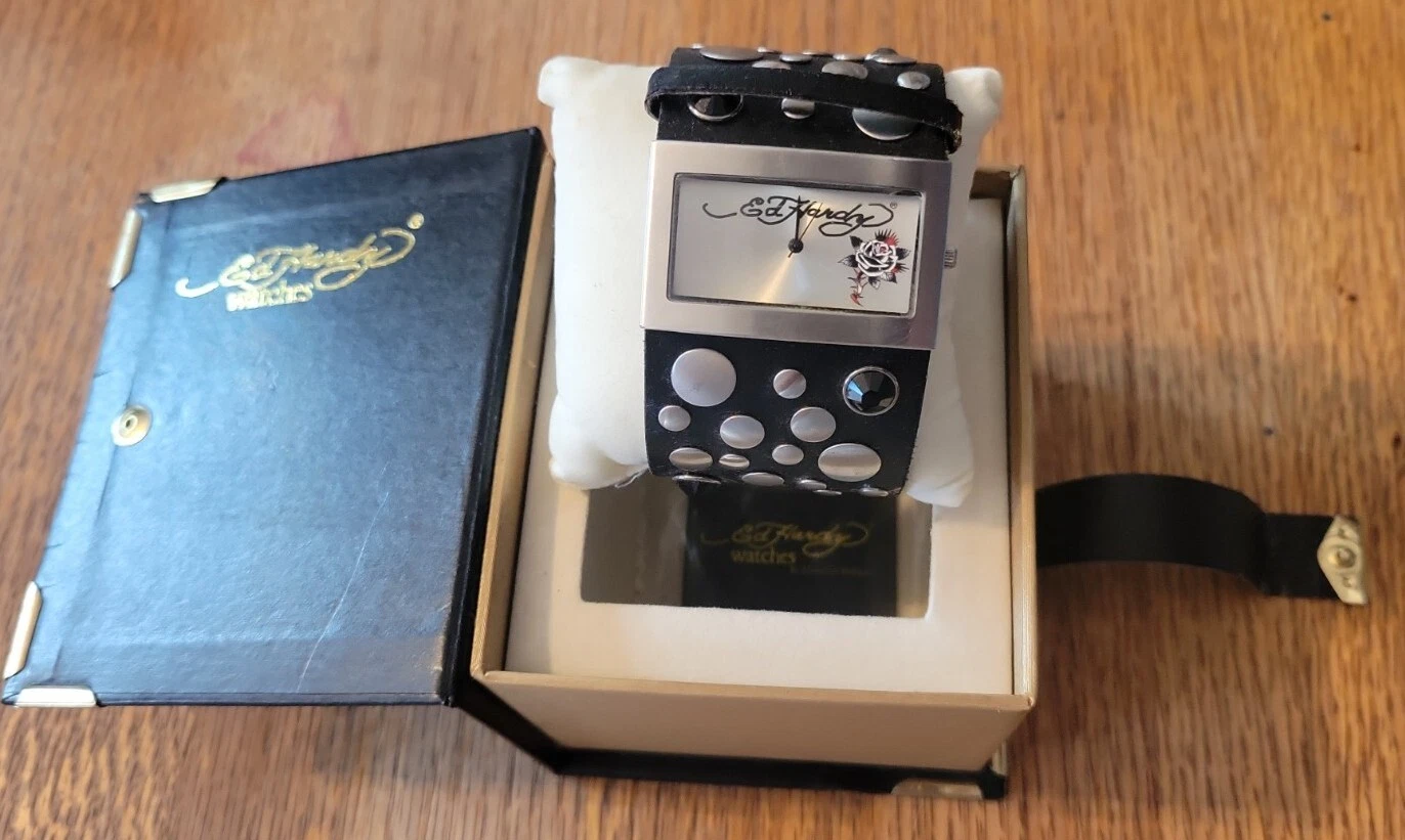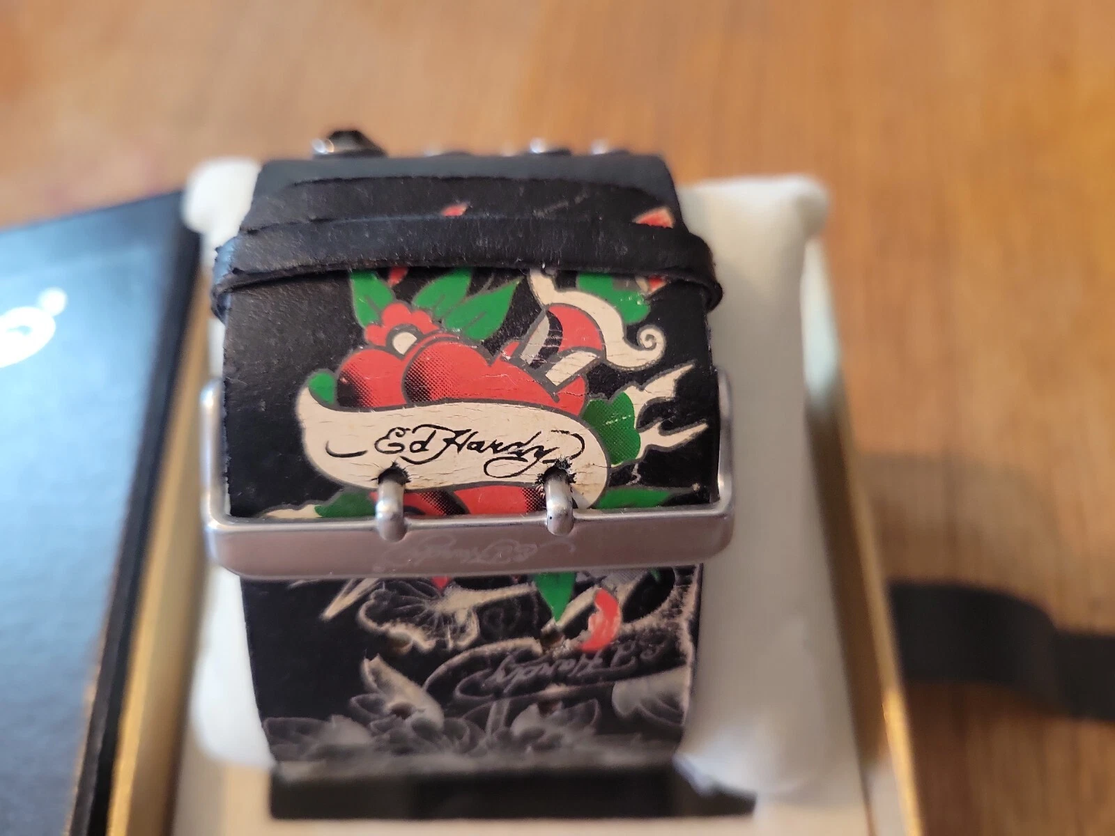 Ed Hardy LC-BR Womens Love Child Black Leather Band NEEDES NEW BATTERY