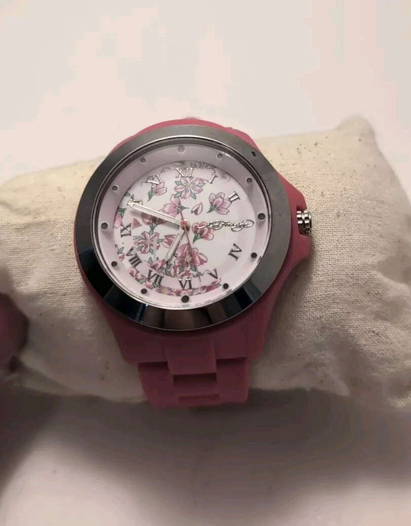 Pink Ed Hardy Watch Silicone Band