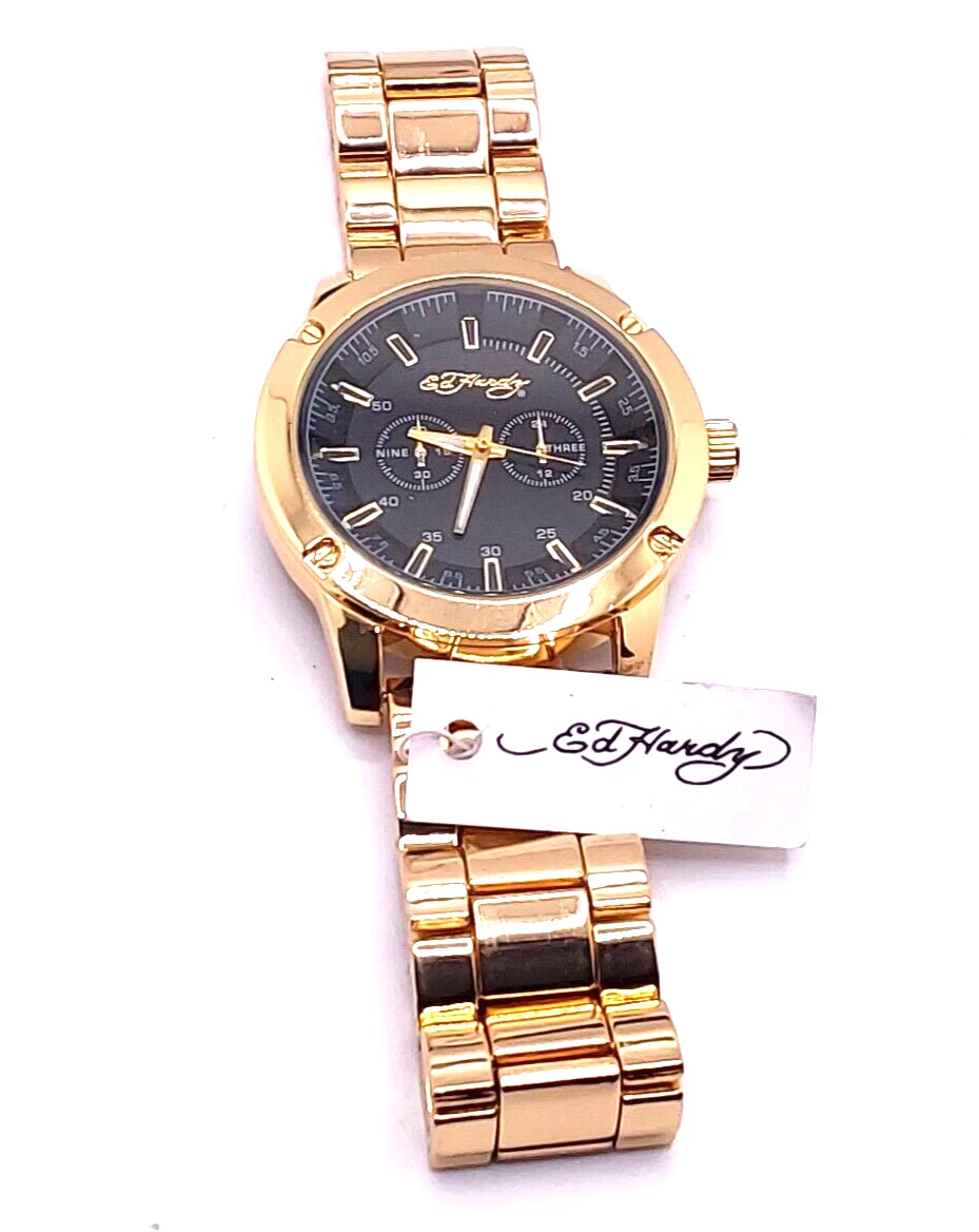 Ed Hardy Men's  Shiny Gold Tone Bracelet Watch 46mm 9746g-42-G27 (MSRP $105)