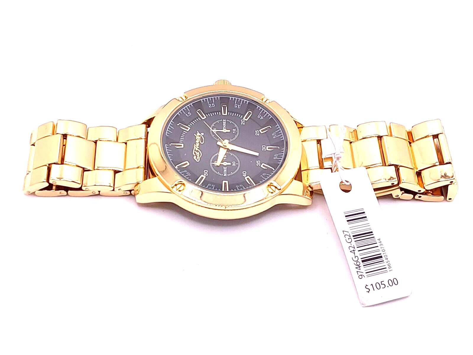 Ed Hardy Men's Shiny Gold Tone Bracelet Watch 46mm 9746g-42-G27 (MSRP $105)