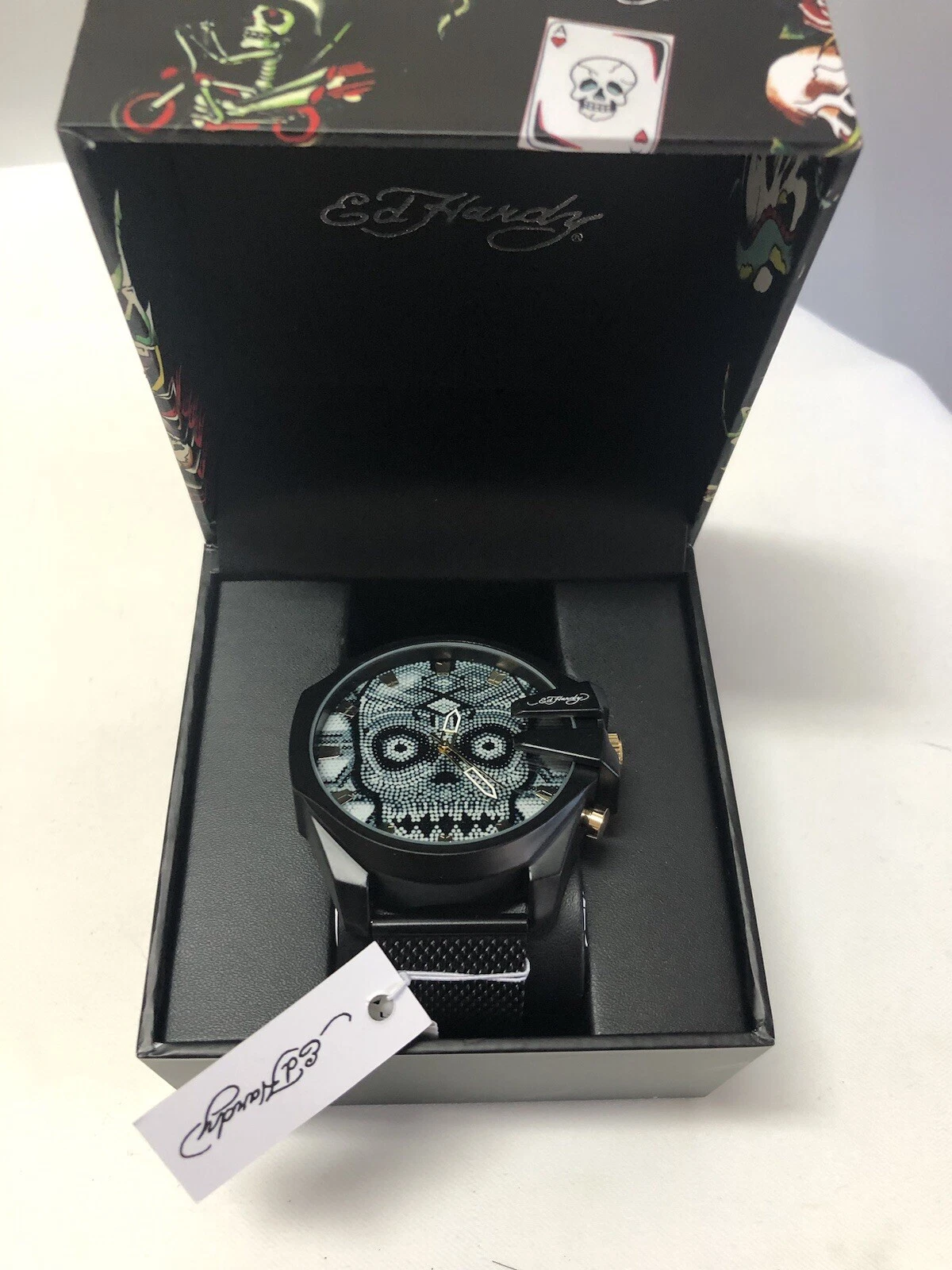NIB Ed Hardy Men’s Skullface Watch Black Aluminum Strap Free Shipping