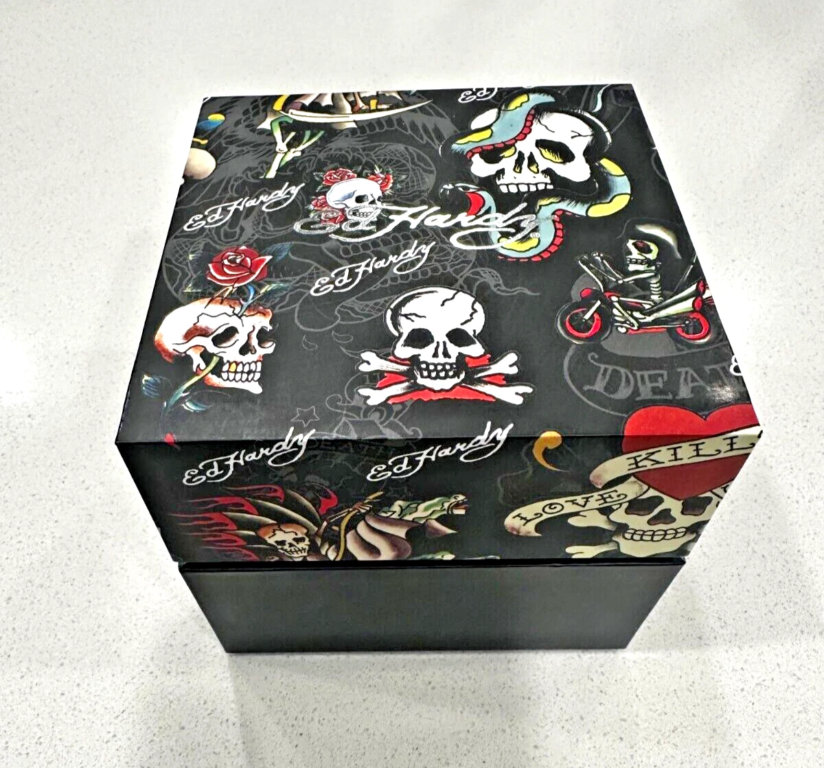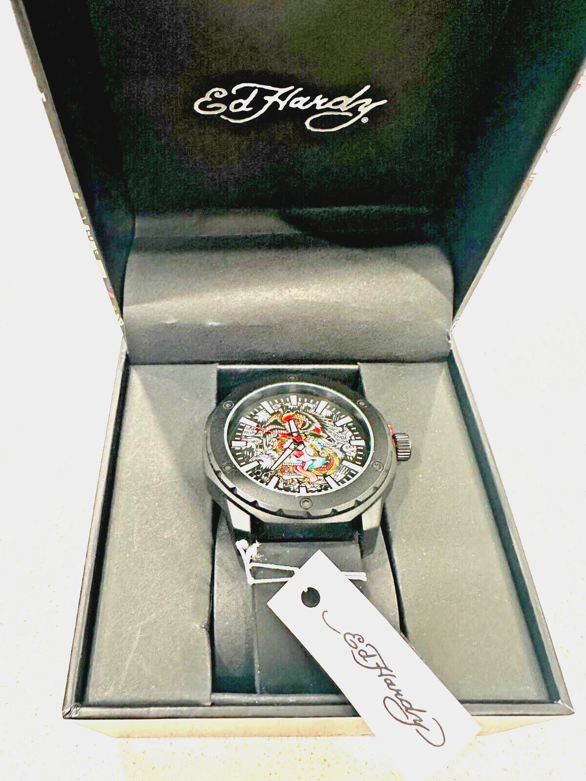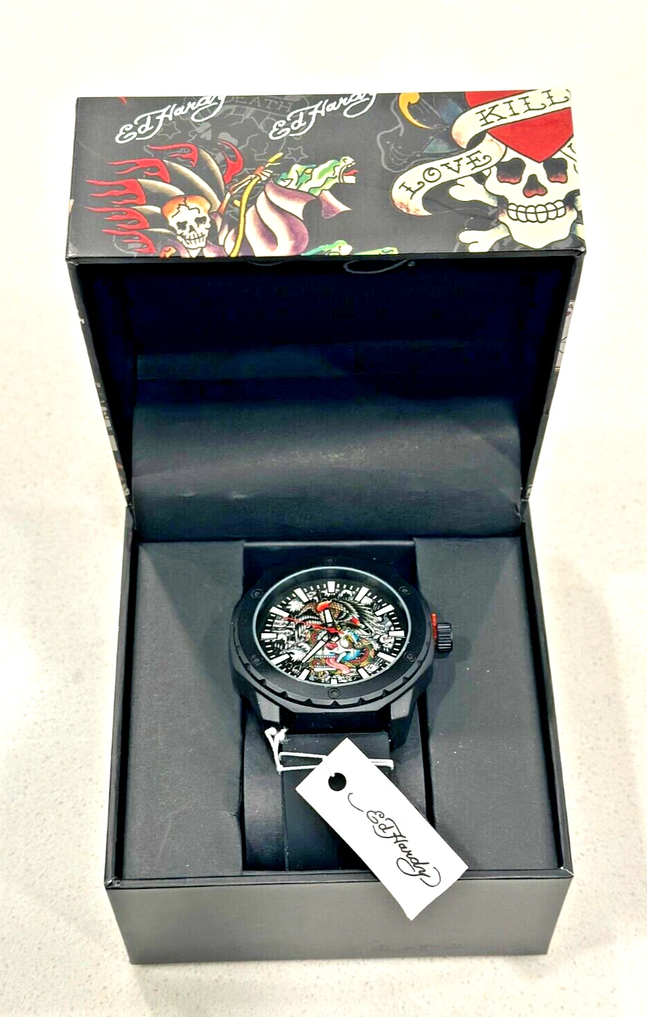 Ed Hardy Men's Eagle & Skull Multi Print Dial/Matte Black Silicone Strap 47 mm