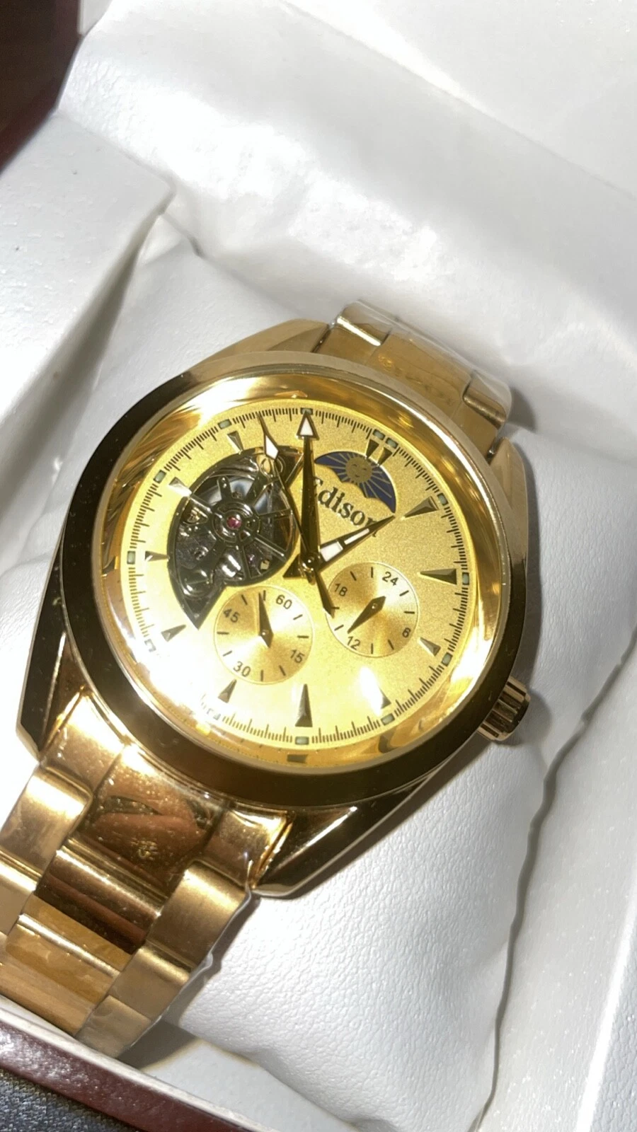Brand New Gold colour Edison Moonphase automatic Watch In Original Box