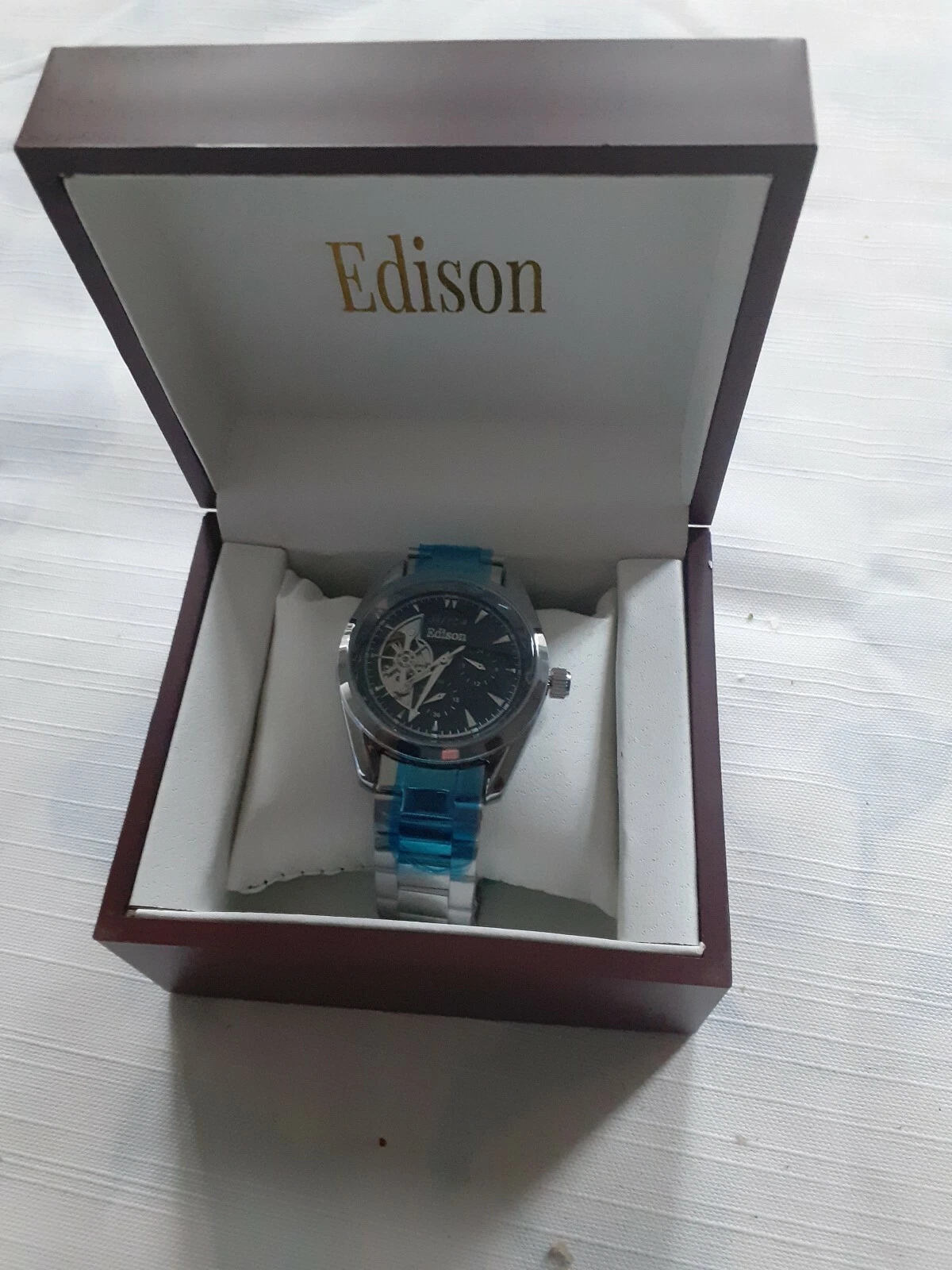 Men's Automatic Edison Watch with Moon face Silver & Gold.