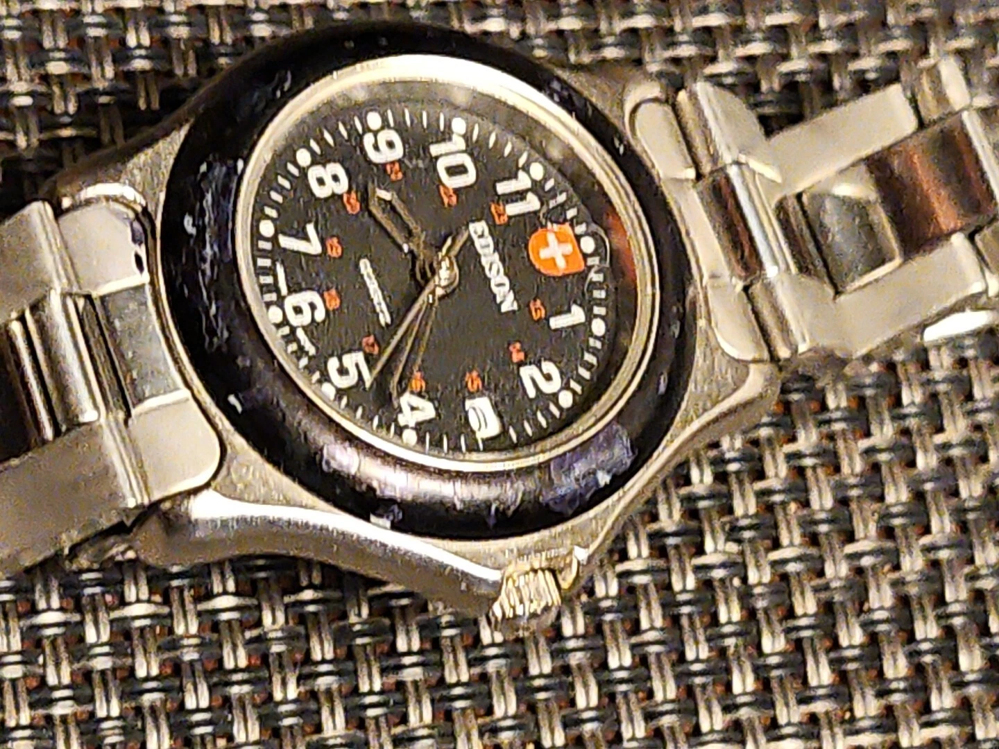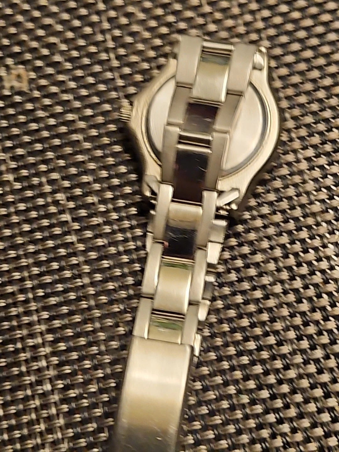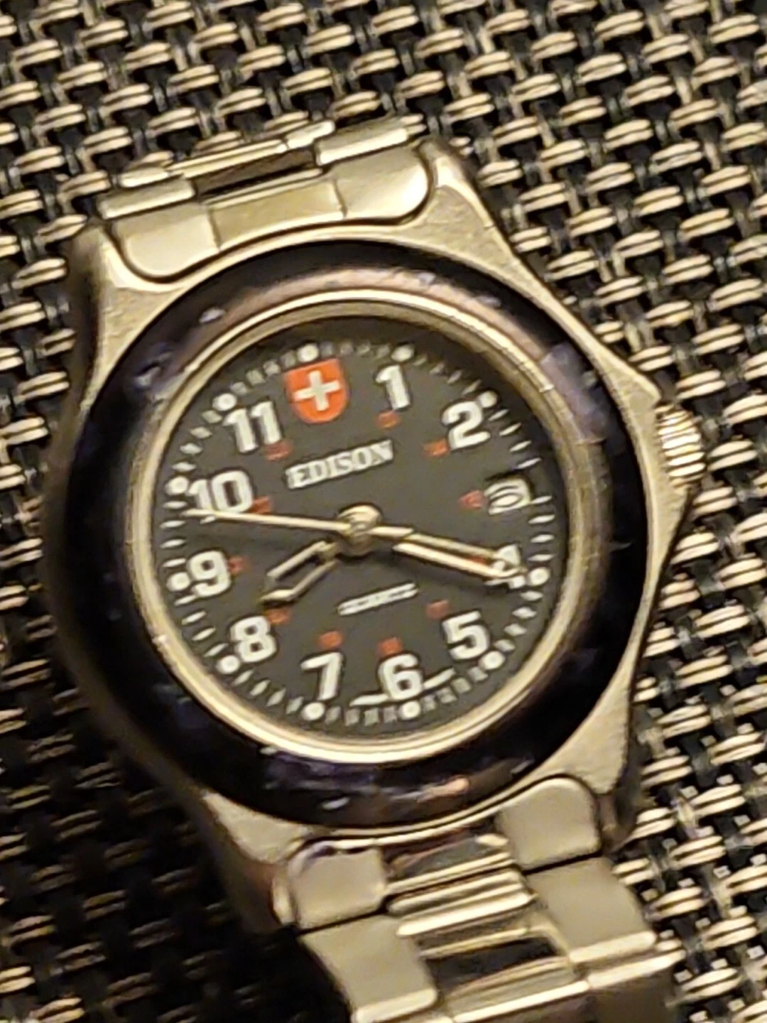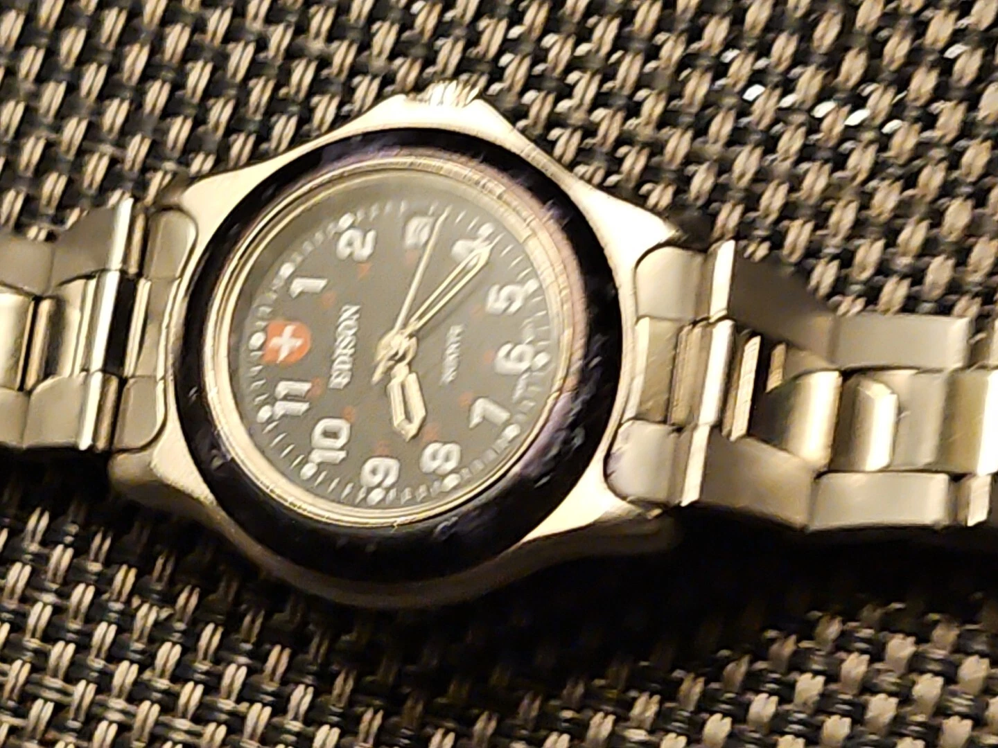 Edison Women's Silvertone Watch Black Dial Two Tone Band New Battery Excellent
