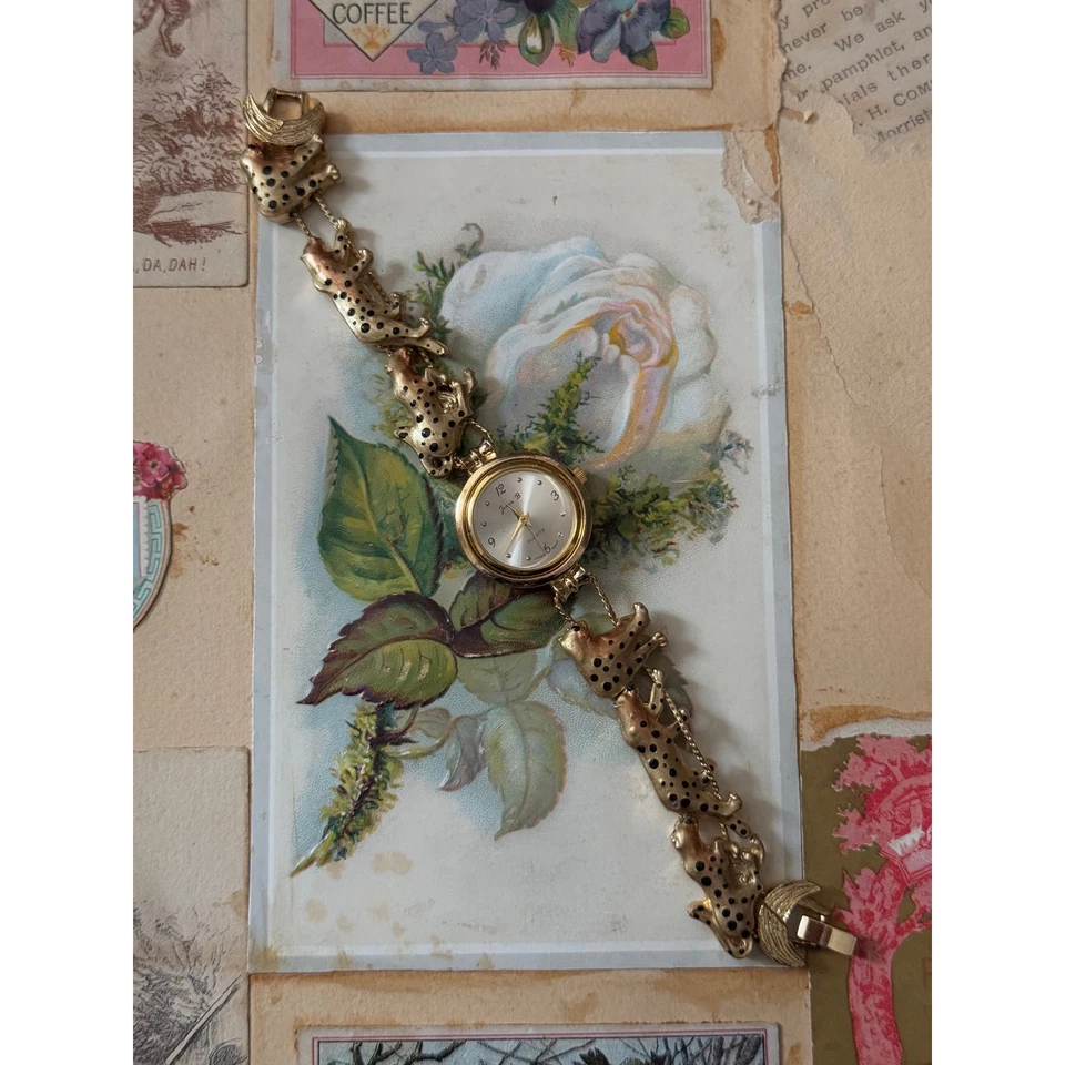 jennie b gold tone vintage leopard cheetah slide charm watch works new battery