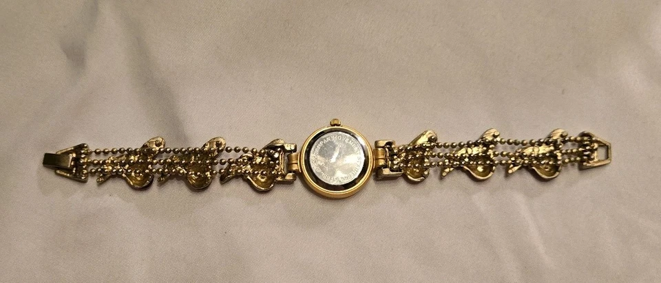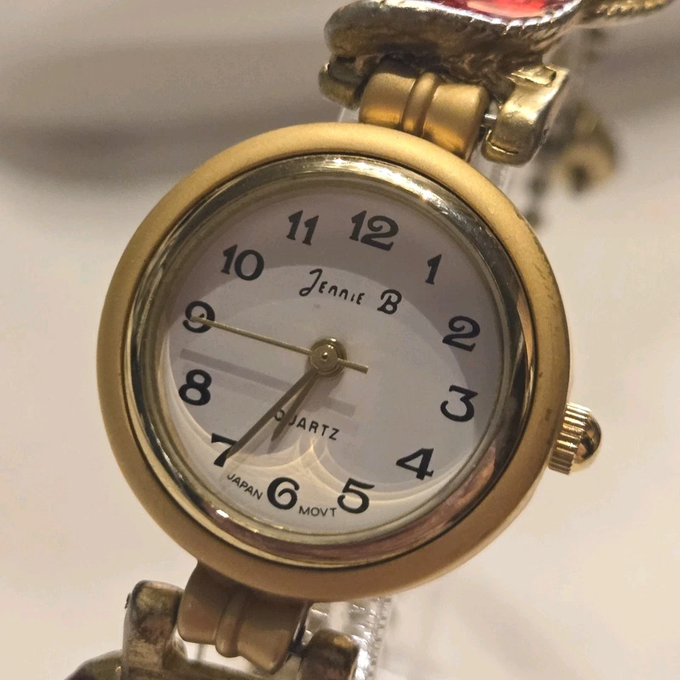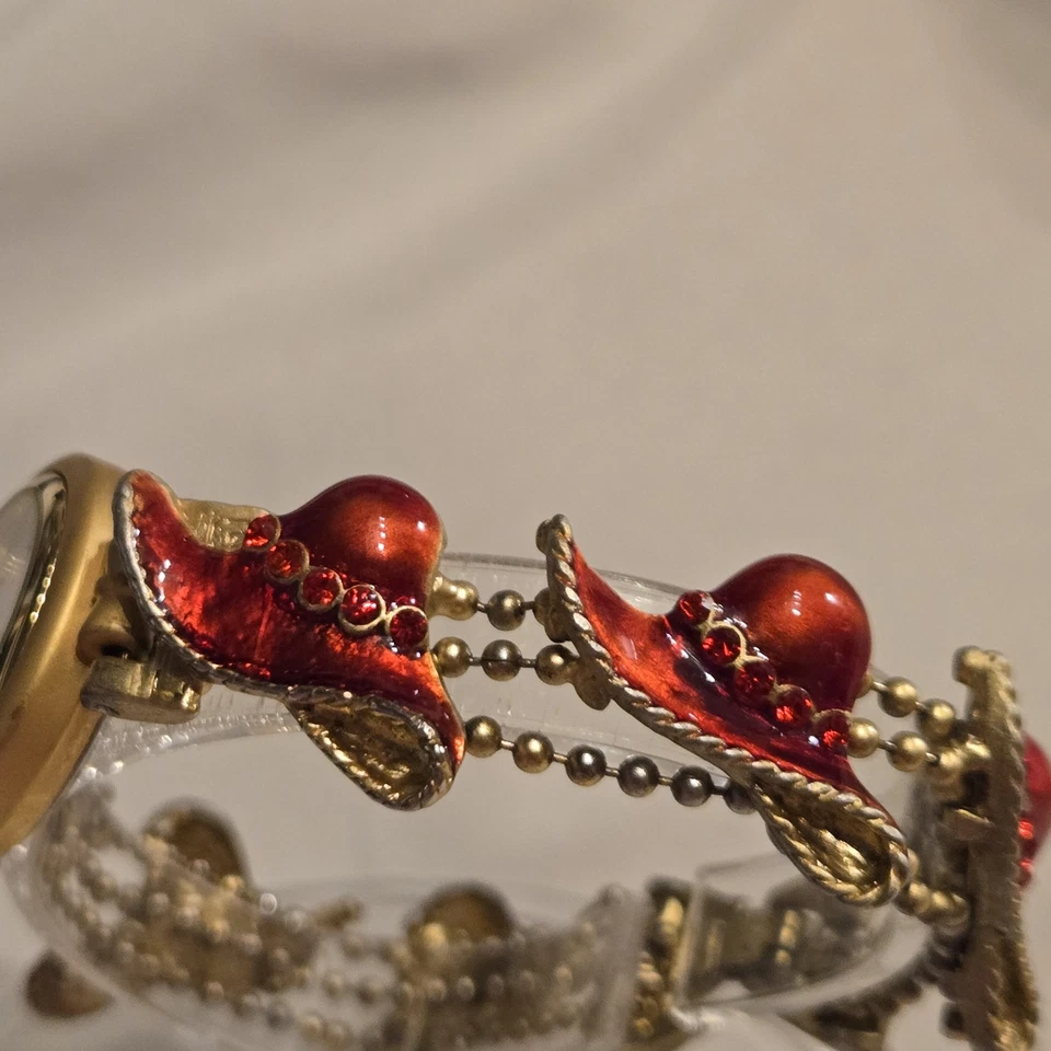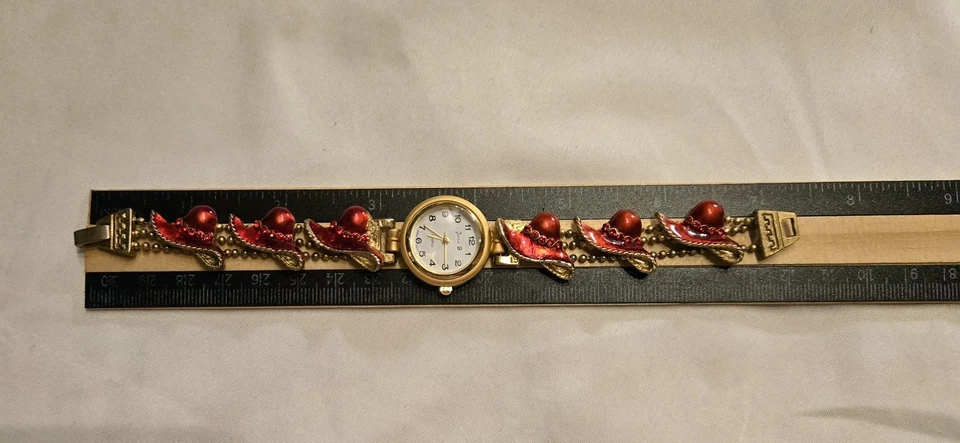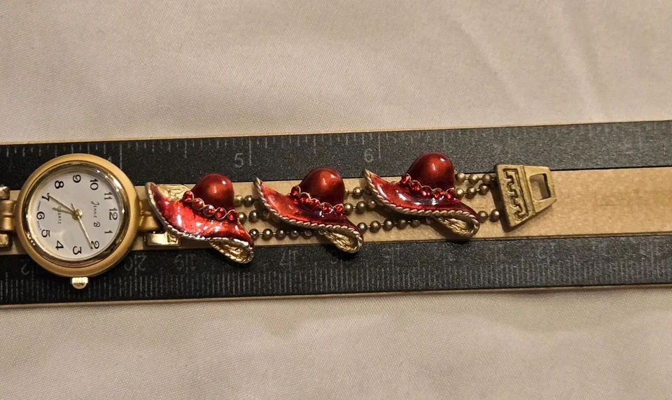 Vtg Jennie B Red Hat Society Watch Rhinestones Gold Tone Enamel New Battery Nice