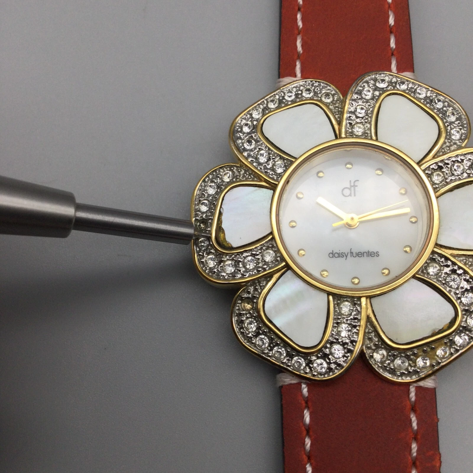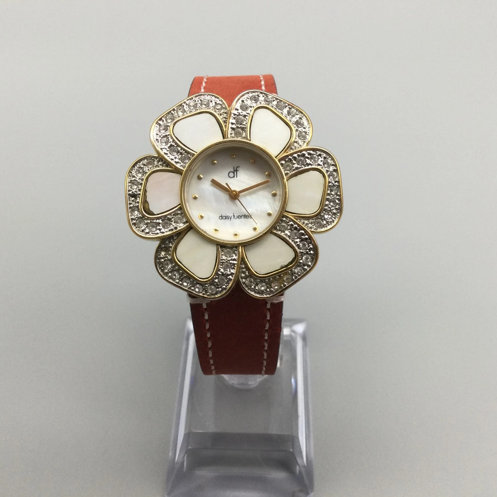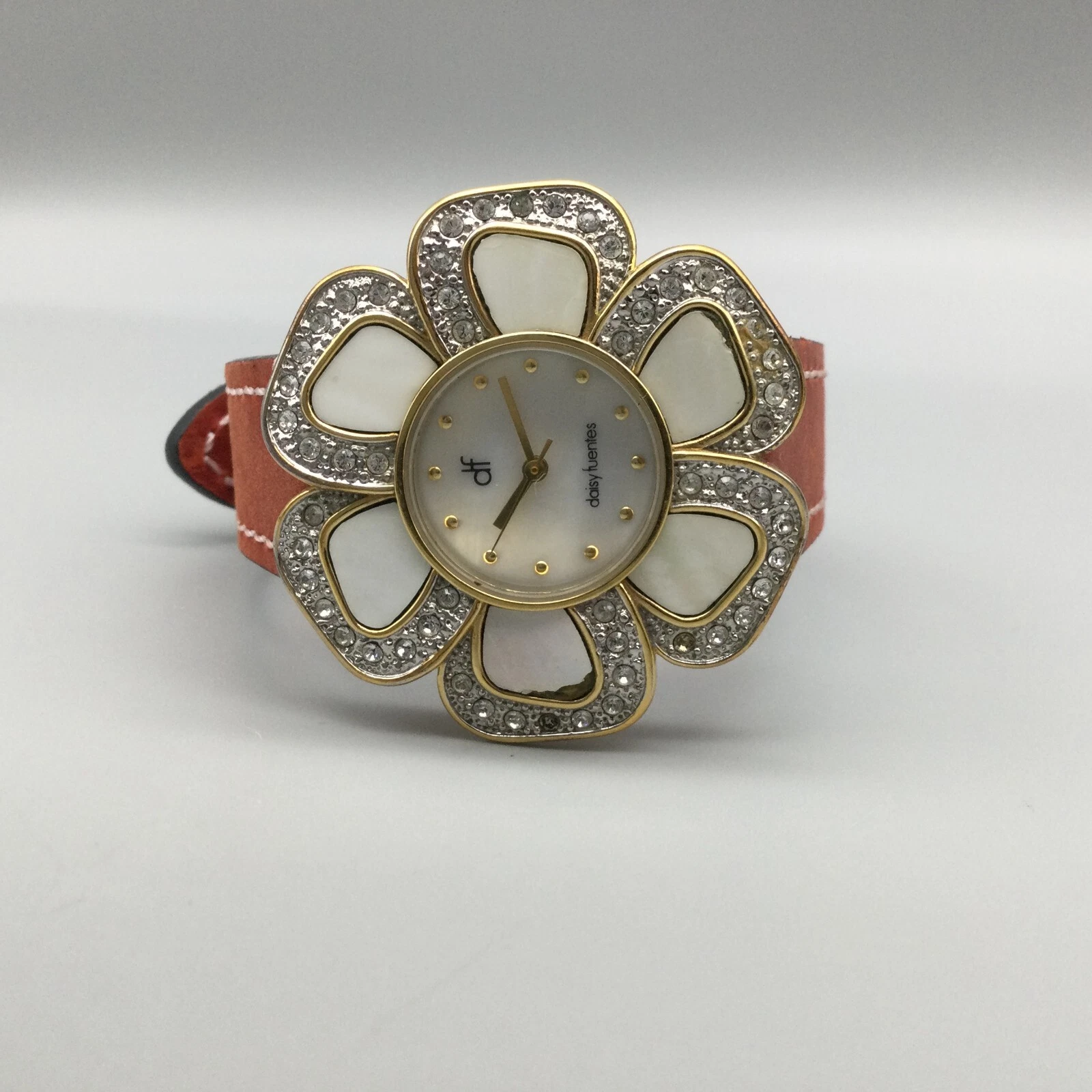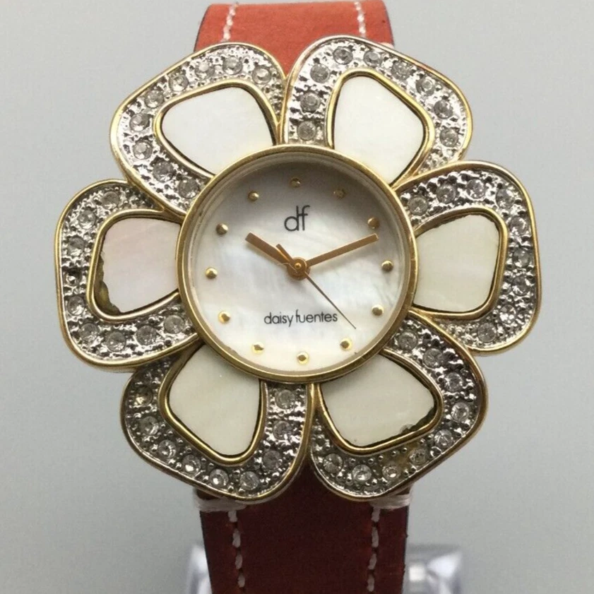 Daisy Fuentes Watch Women Gold Tone Bling Floral Bezel MOP Dial New Battery