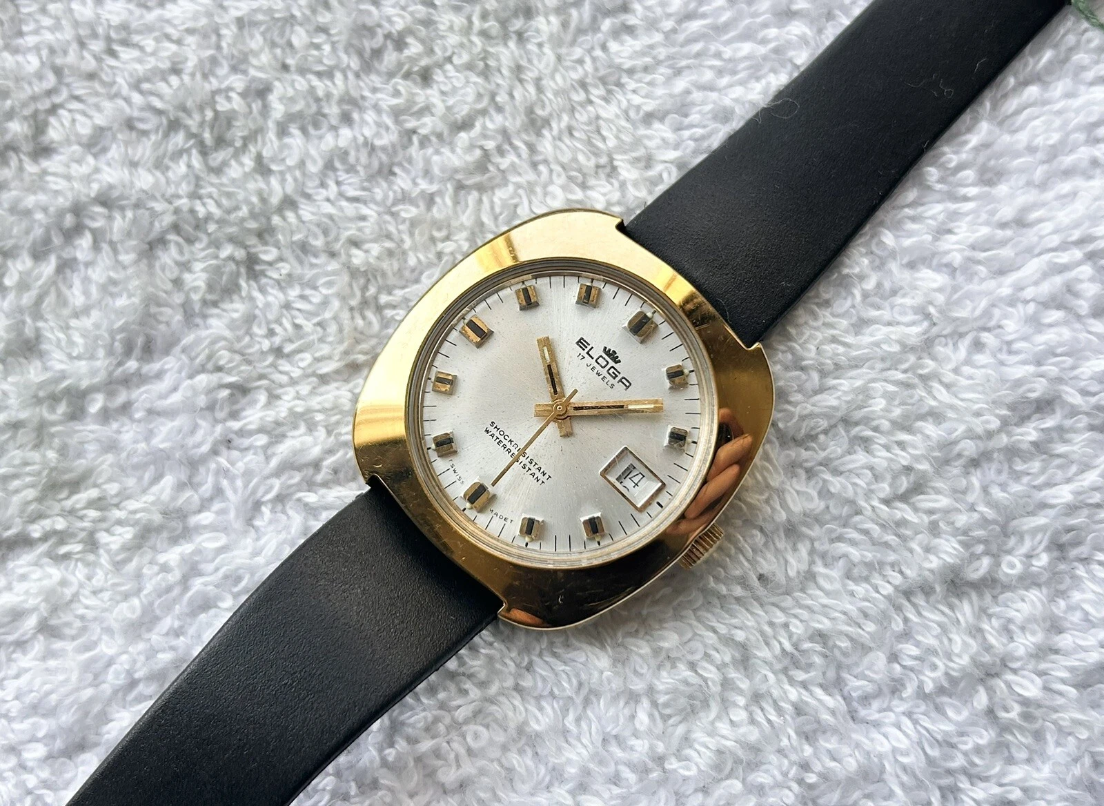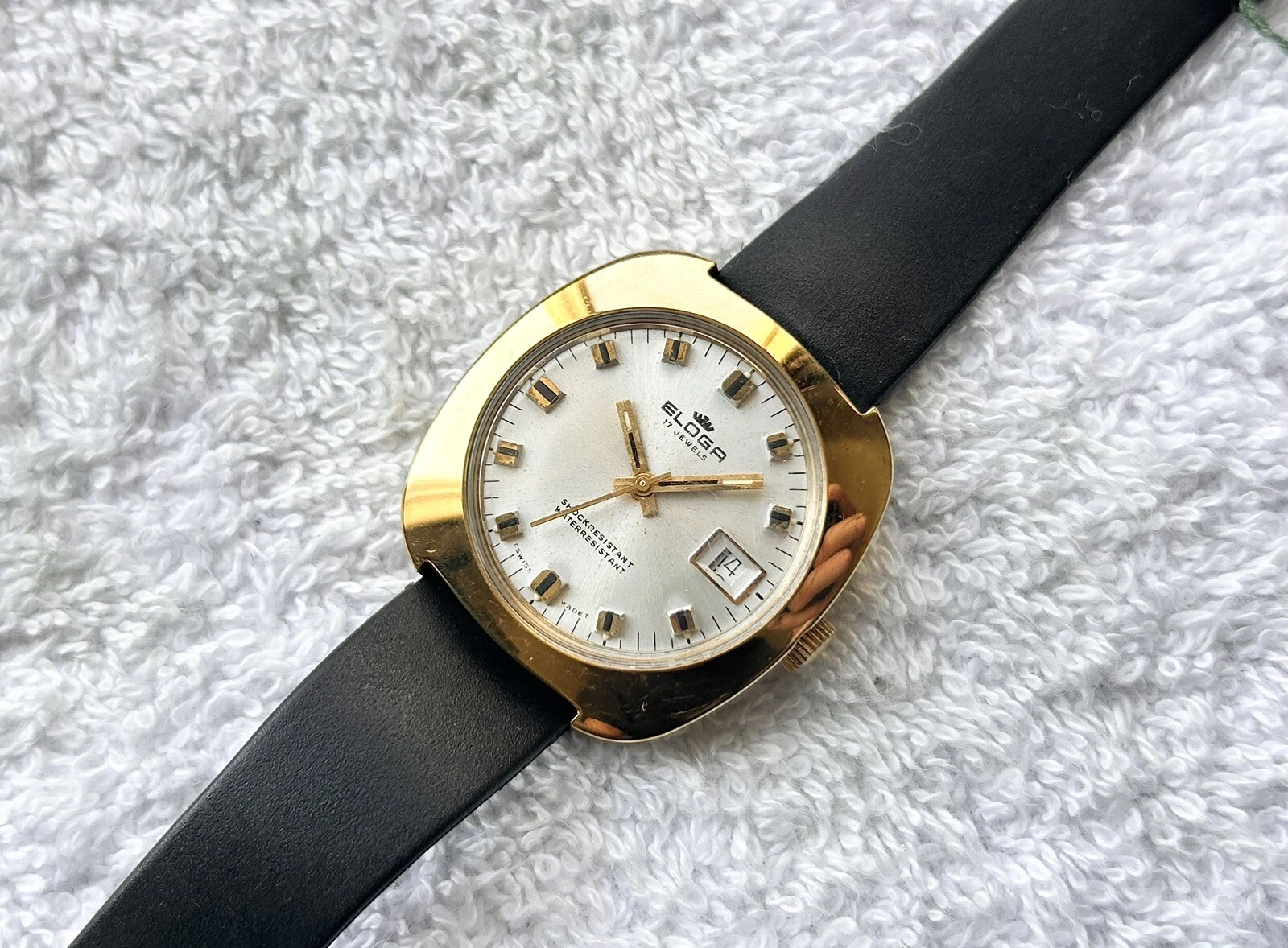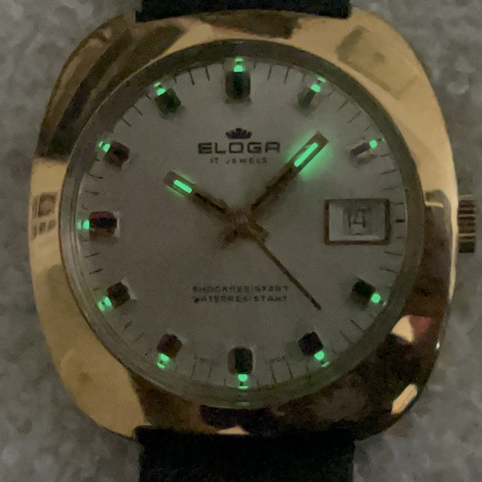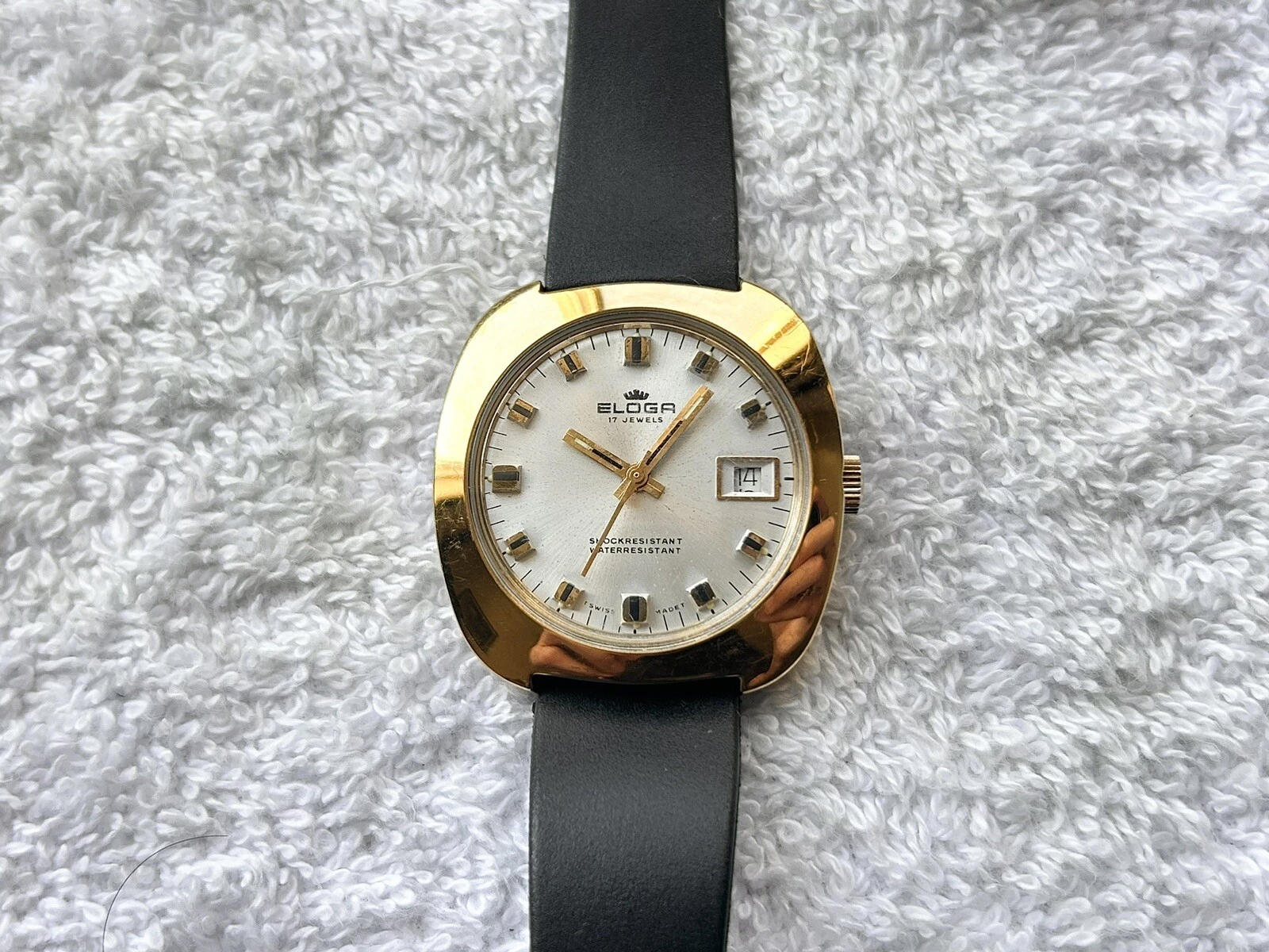 Vintage Eloga 17 Jewels Date Luminescent Winding Gold Plated Swiss Made Watch