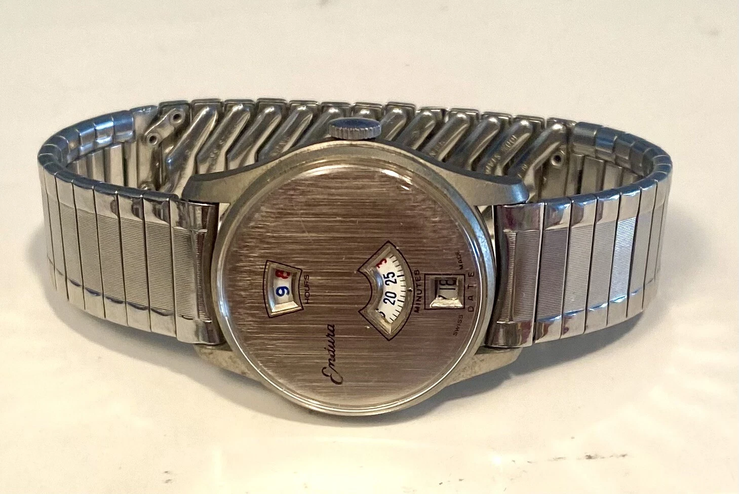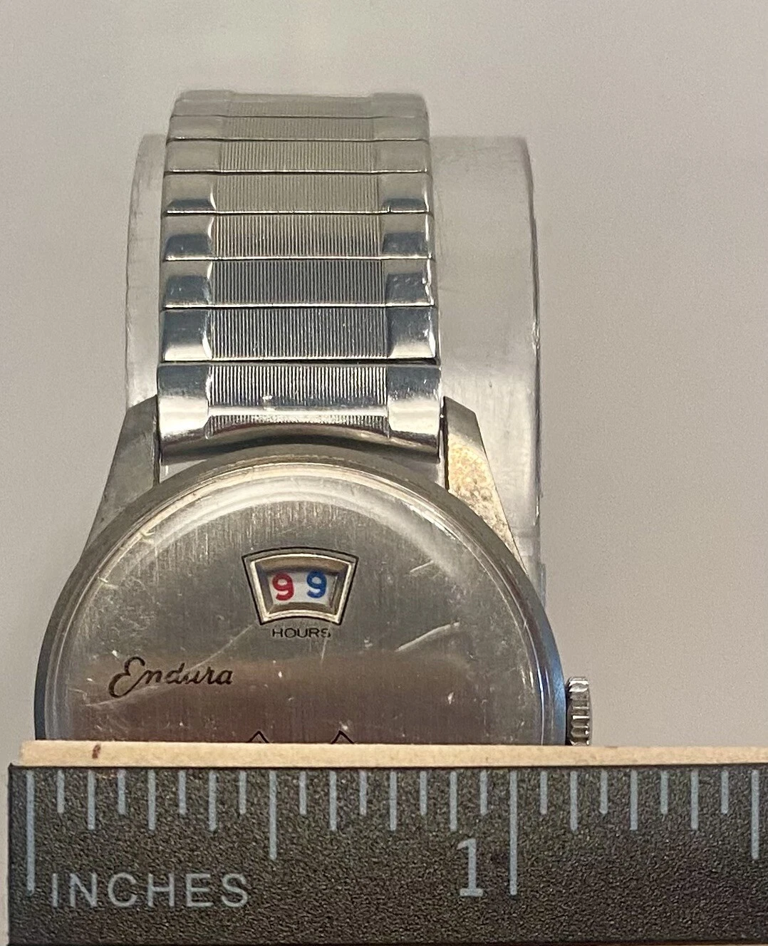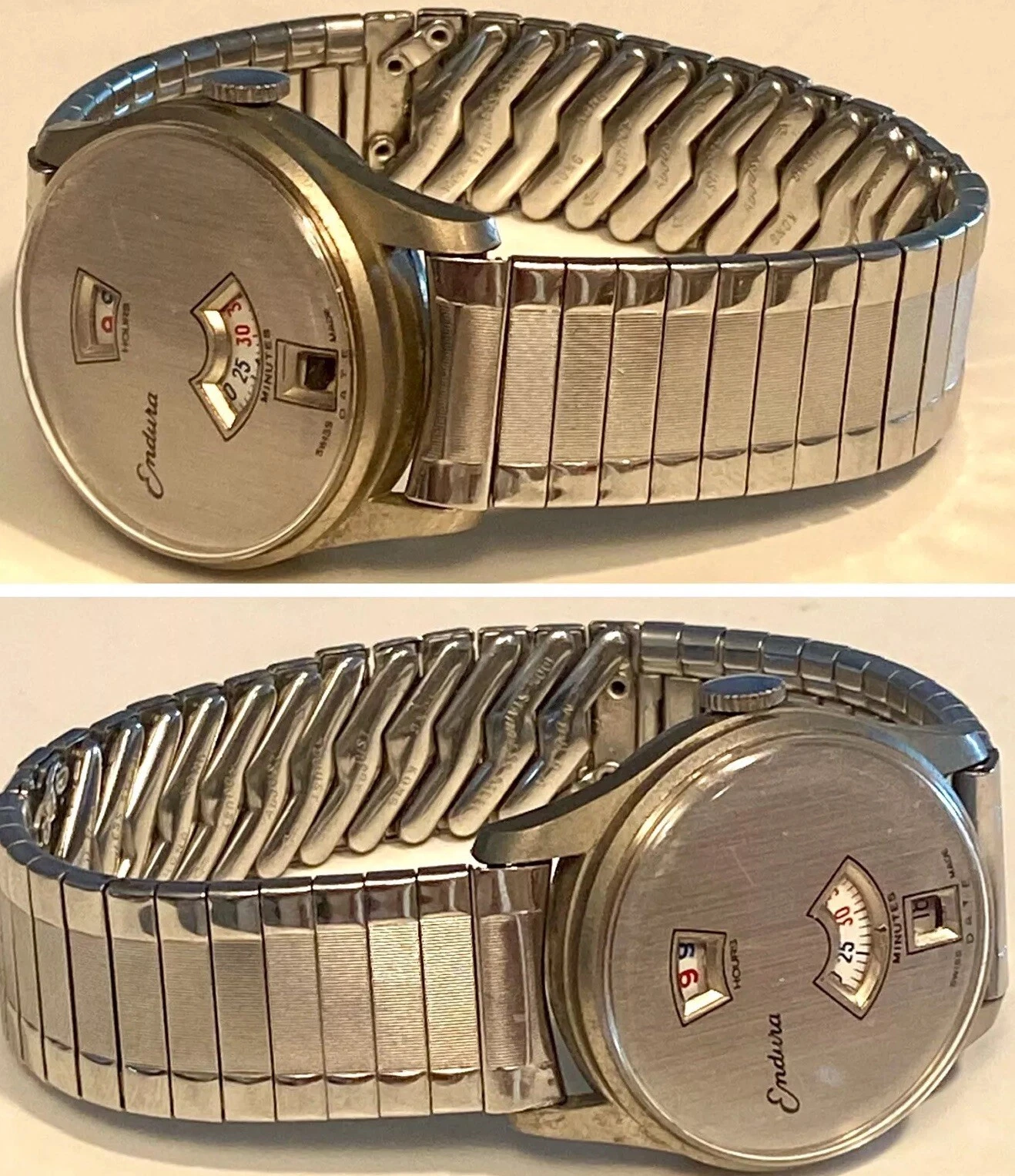 Vintage 1960s JUMP HOUR w/ Date Mechanical 30mm Silvertone Bracelet ENDURA Watch