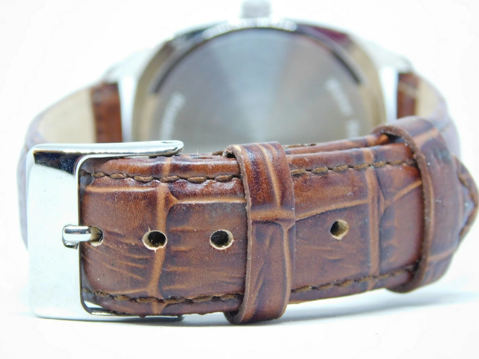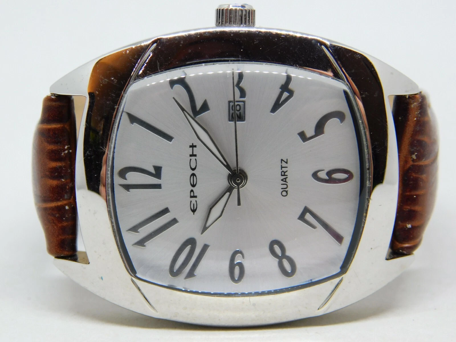 Epoch Stainless Steel Case Genuine Leather Quartz Analog Ladies Watch