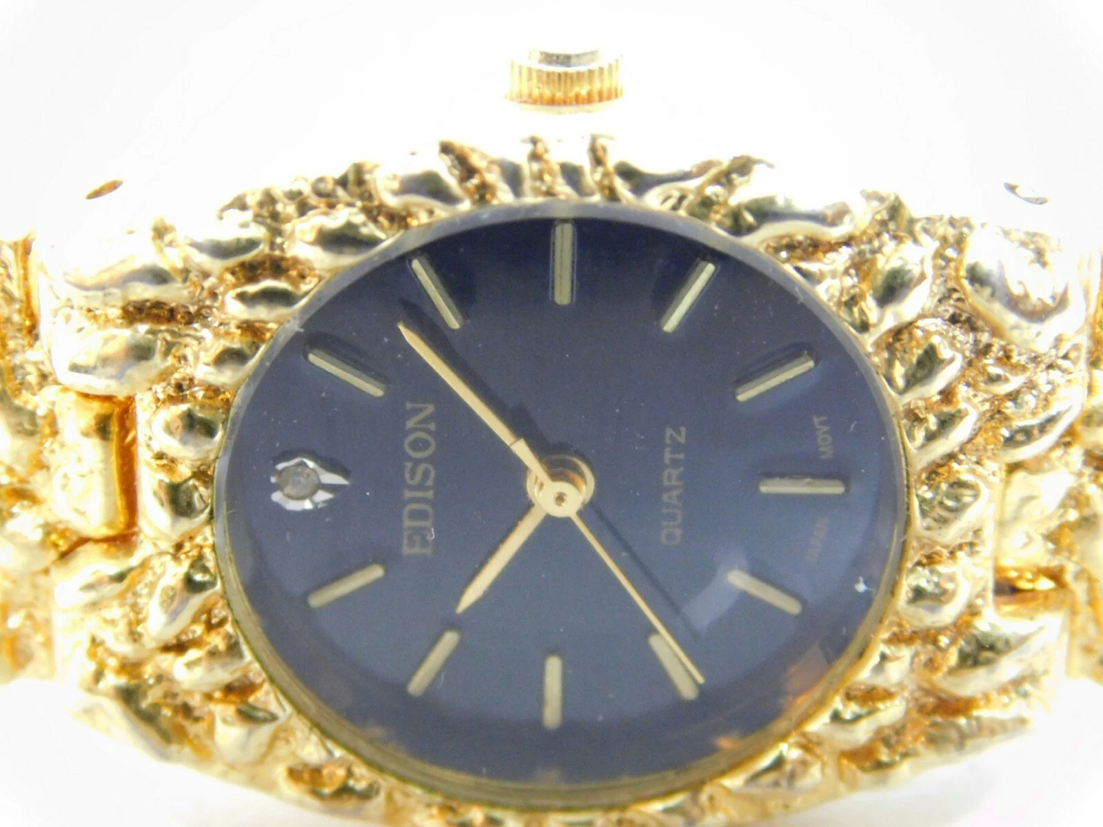 Edison 1940446 Diamond Gold Tone Quartz Analog Women's Watch Sz. 7 1/4"