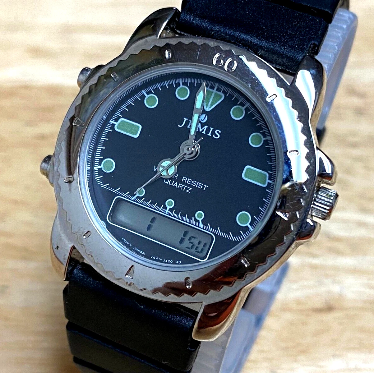Vintage Jemis Silver Black Analog Digital Quartz Alarm Chrono Watch~New Battery