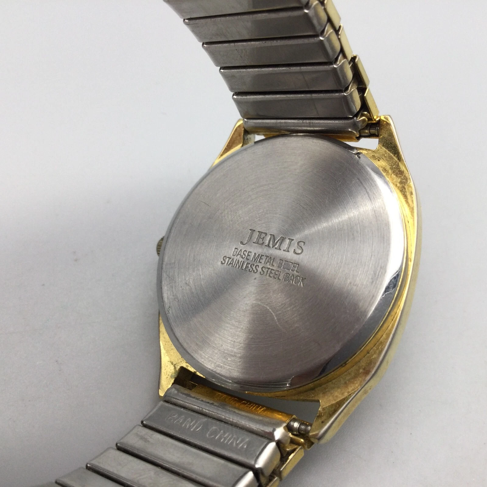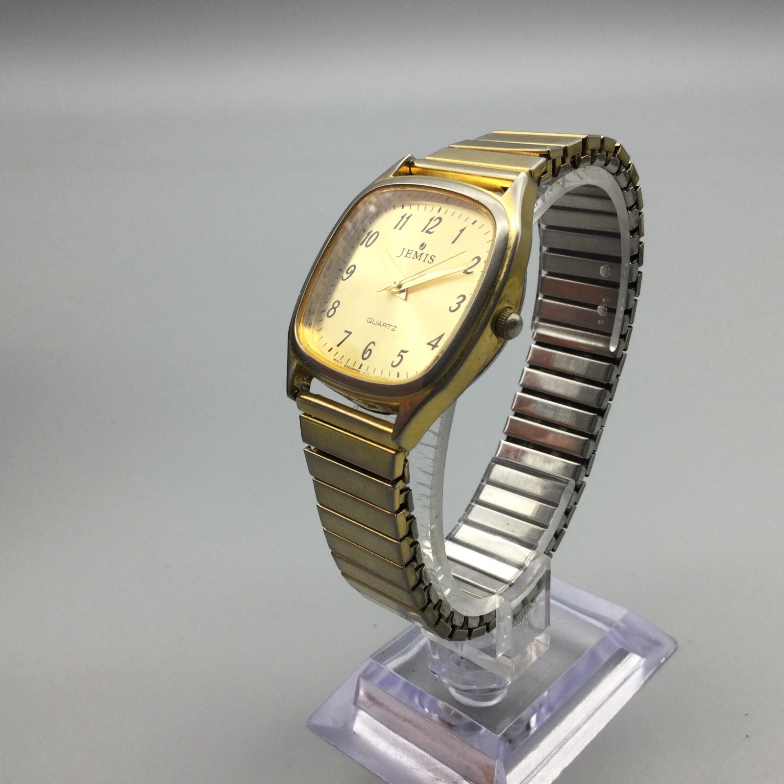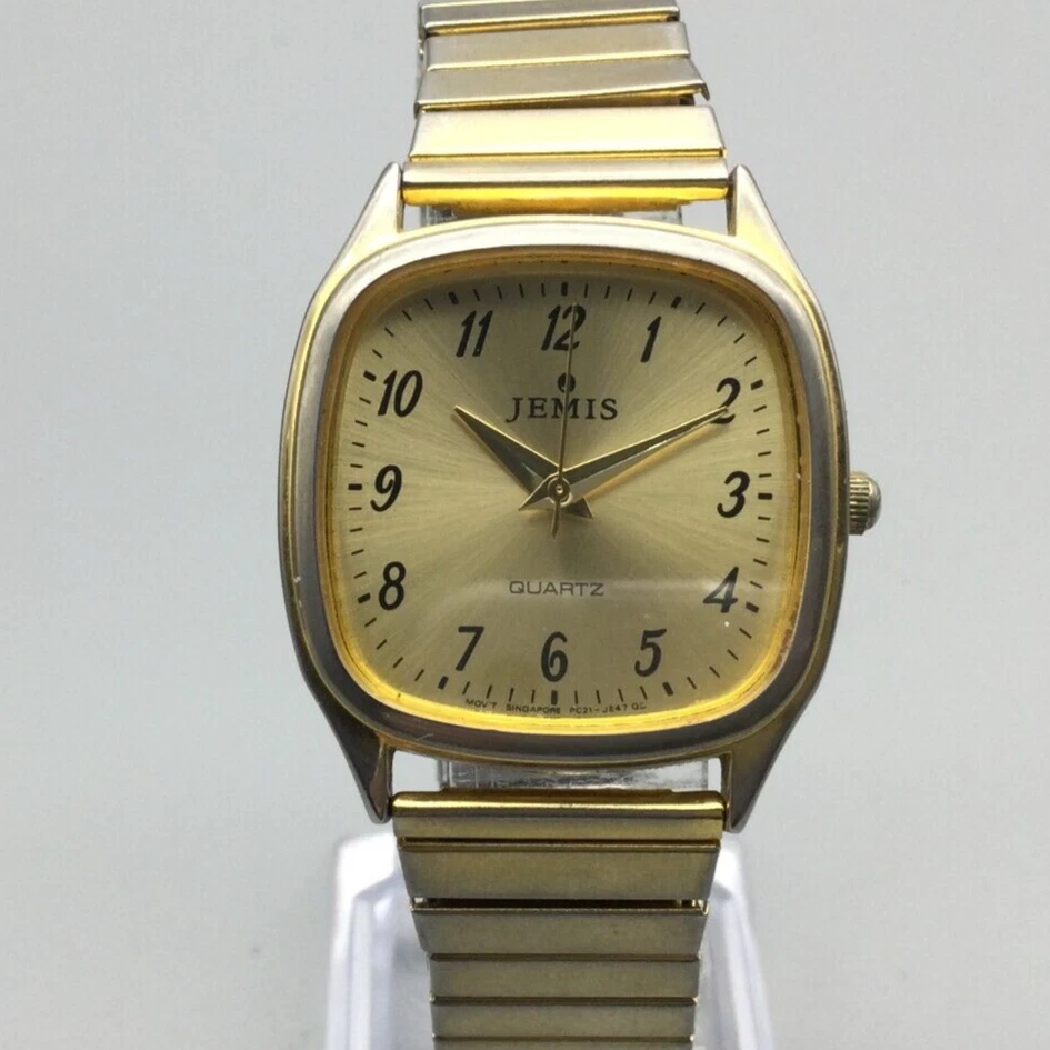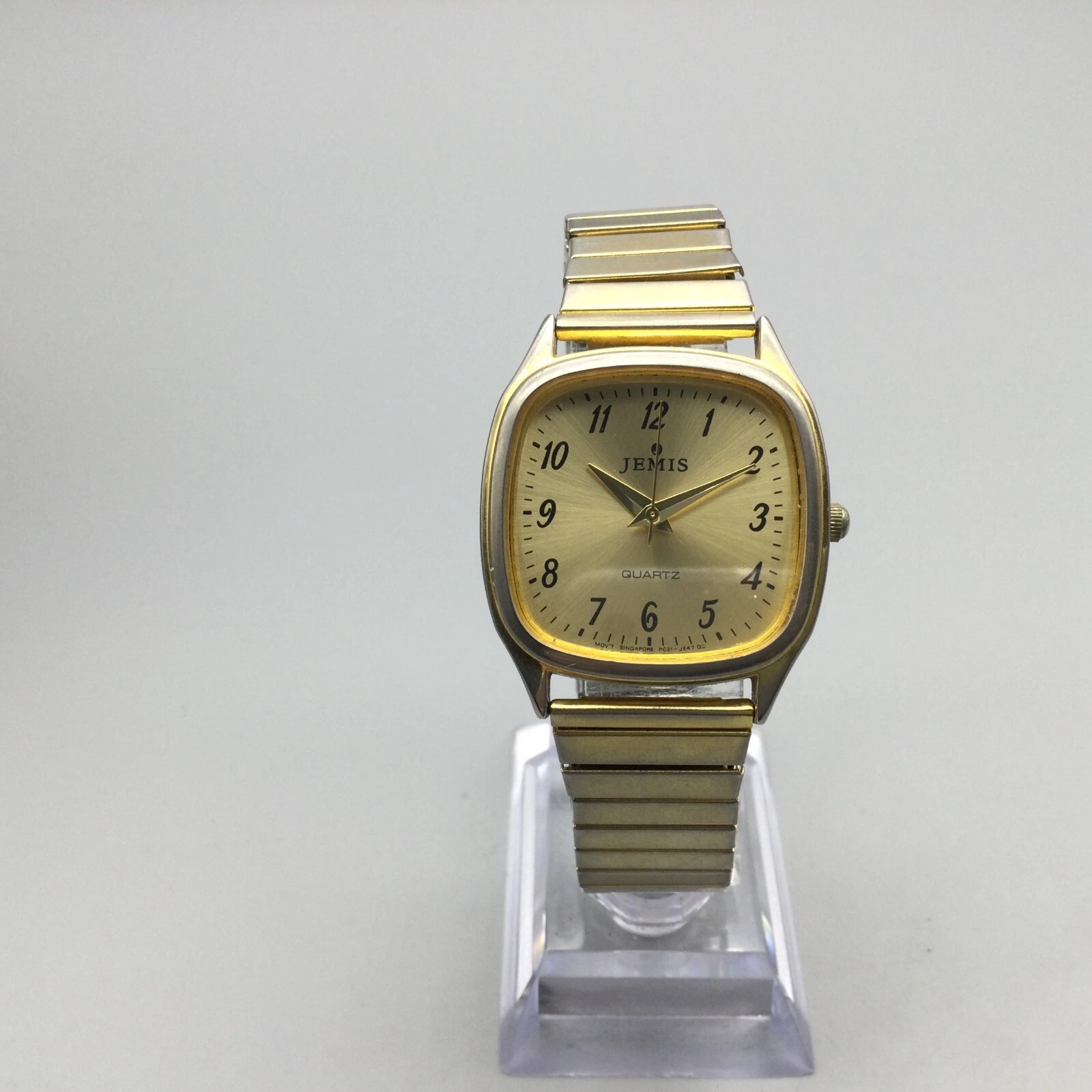 Vintage Jemis Watch Women 31mm Gold Tone Square Dial Stretch Band New Battery
