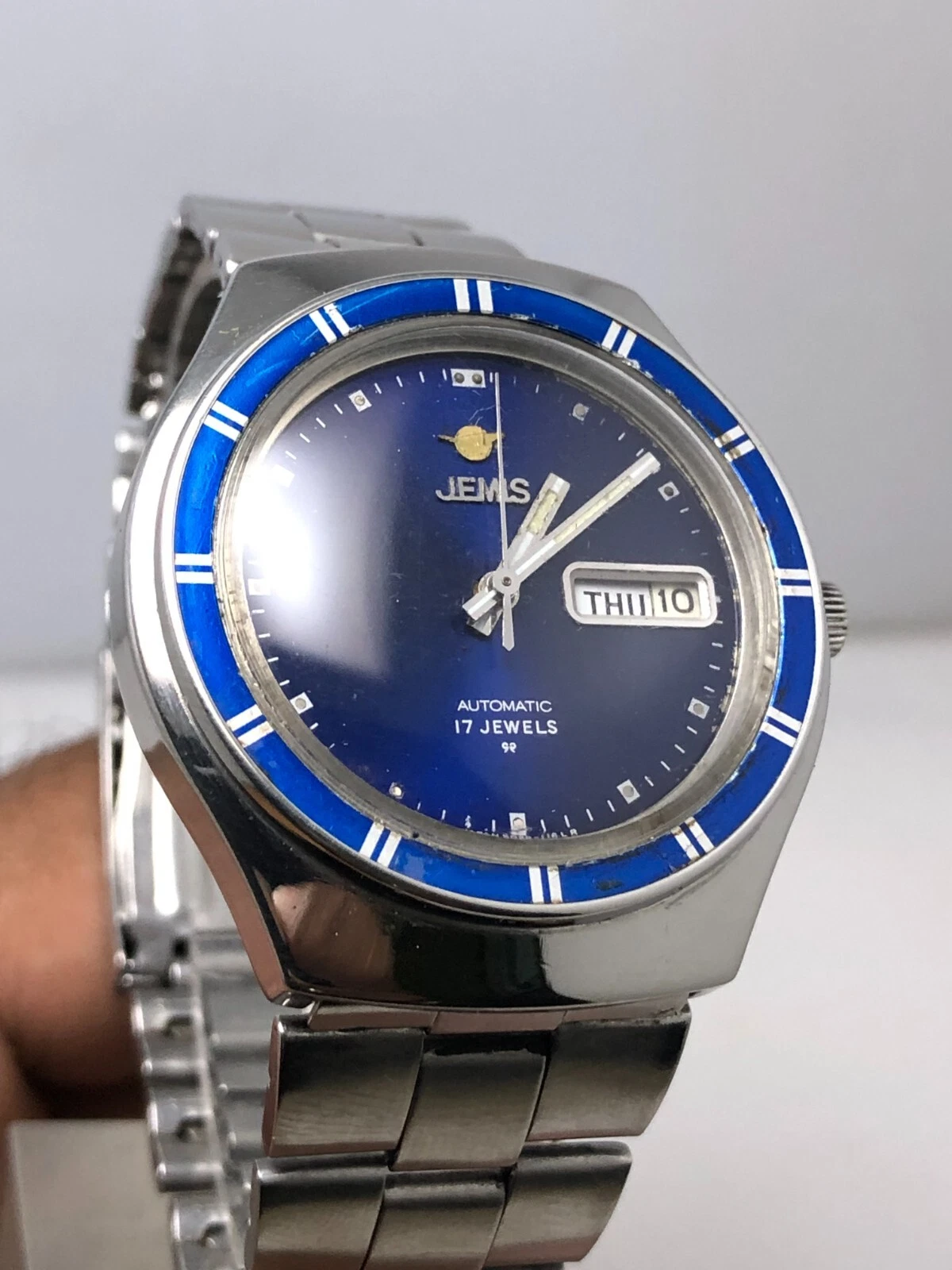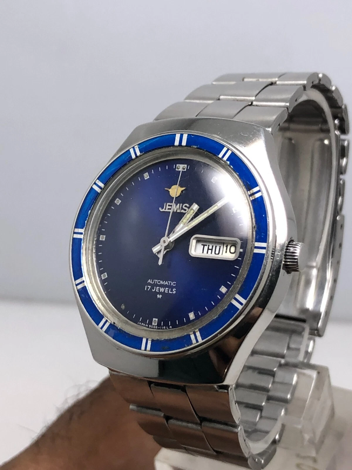 Vintage Jemis 5021-029A Automatic 17 Jewel Blue Dial Men's Wristwatch