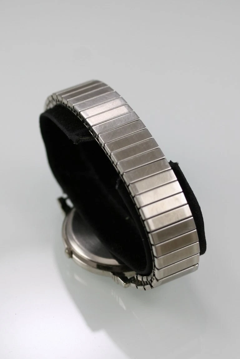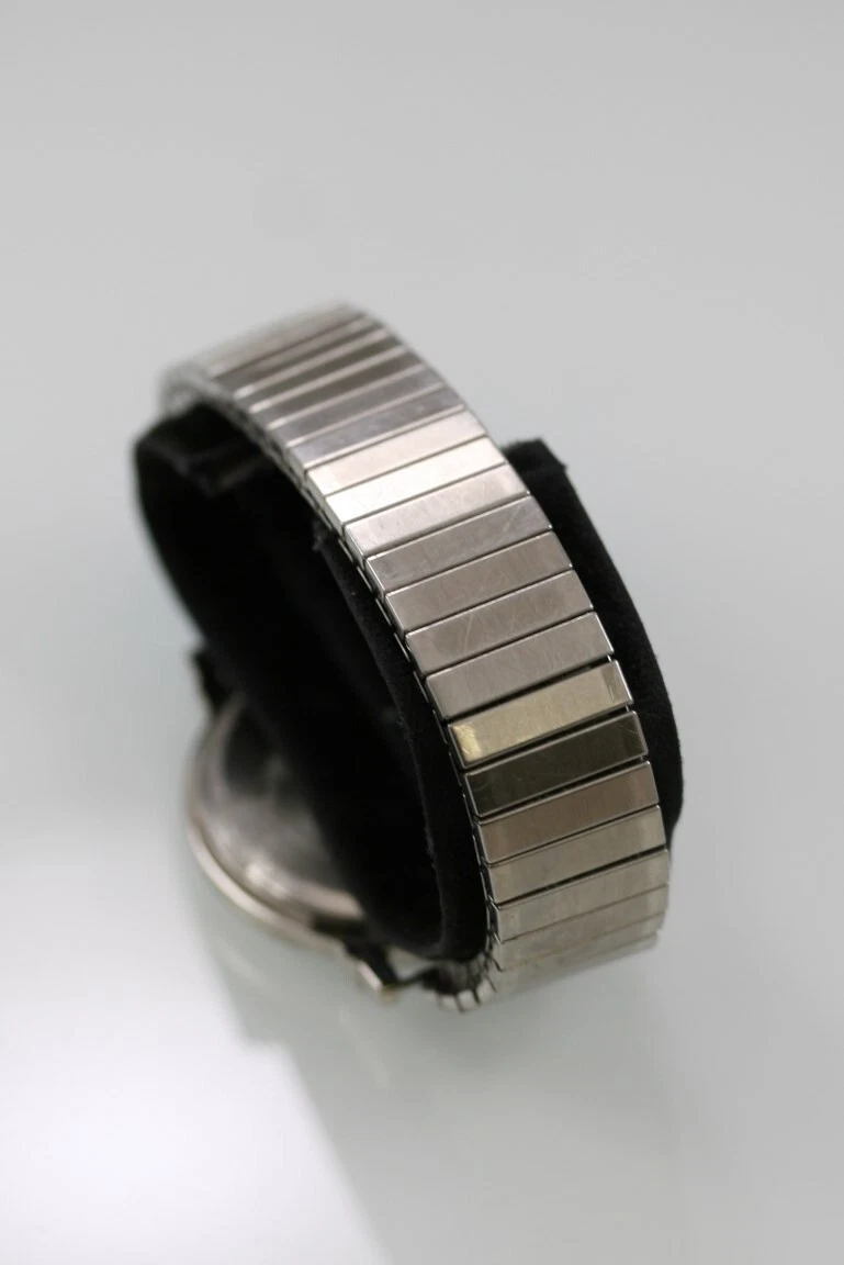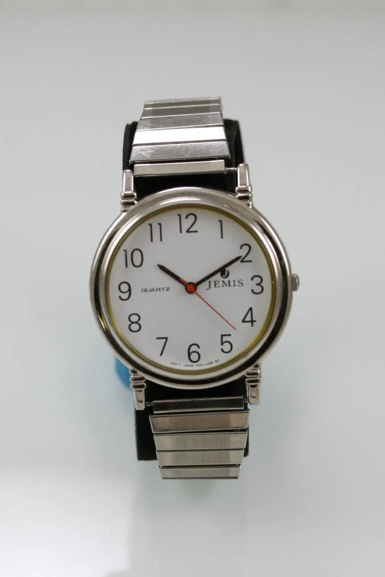 Jemis Watch Men Stainless Steel Silver Stretch Battery Water Resist White Quartz