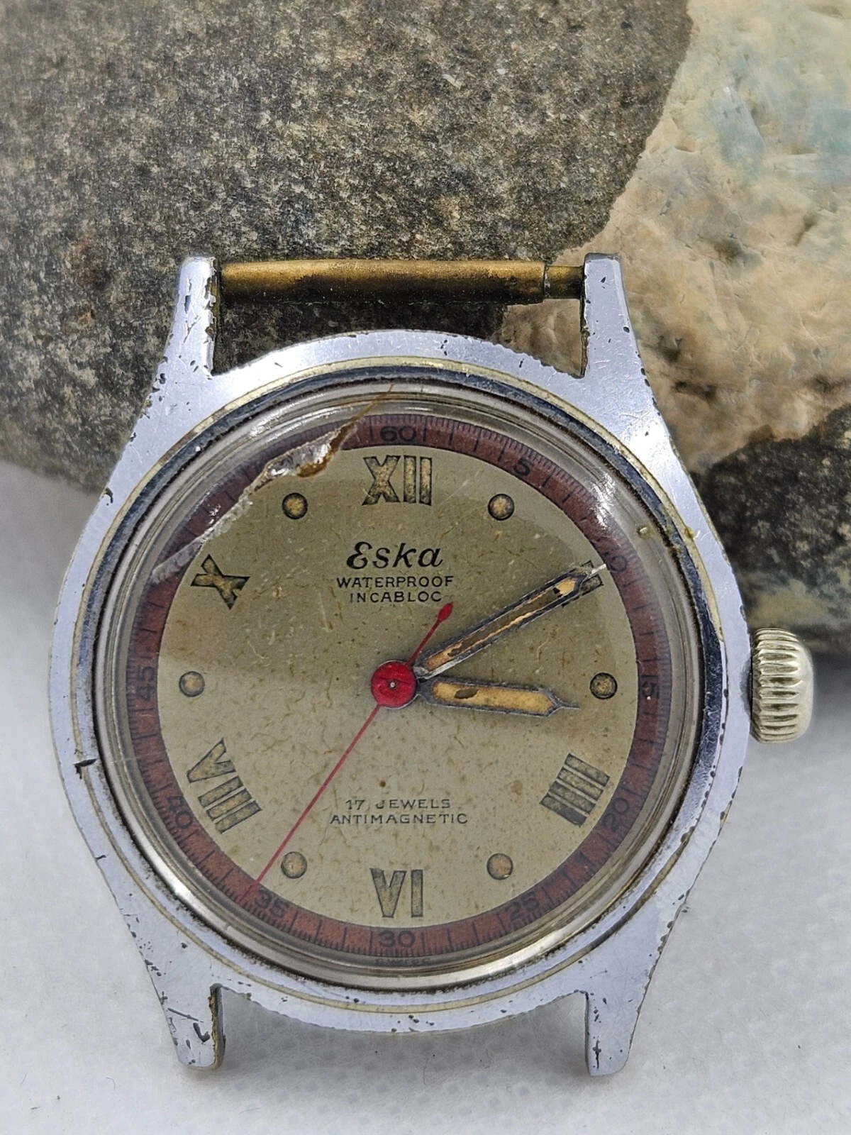 Vintage 1940's Eska WWII Military Type Original Fancy Dial Men's Watch - Waterpr