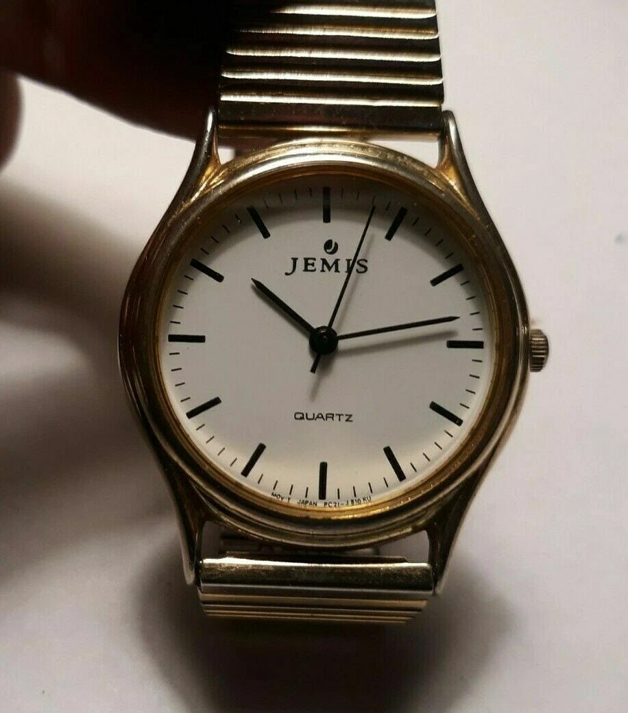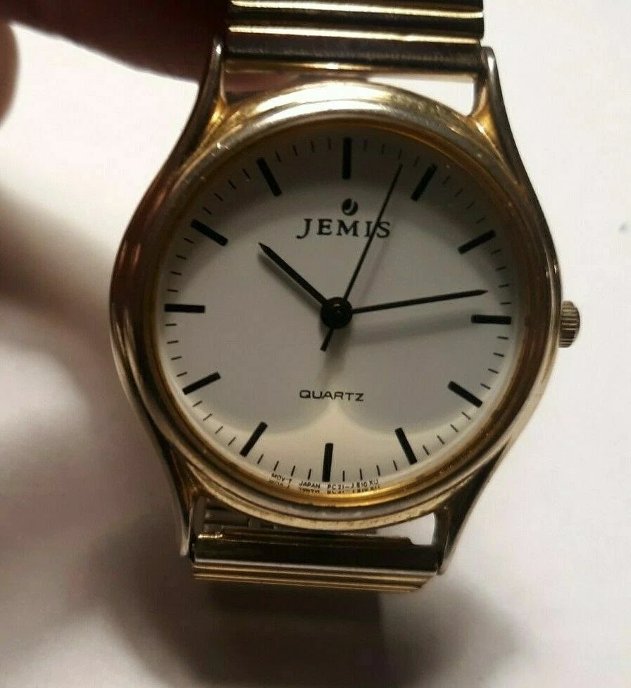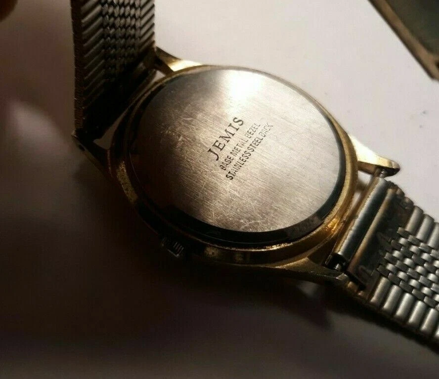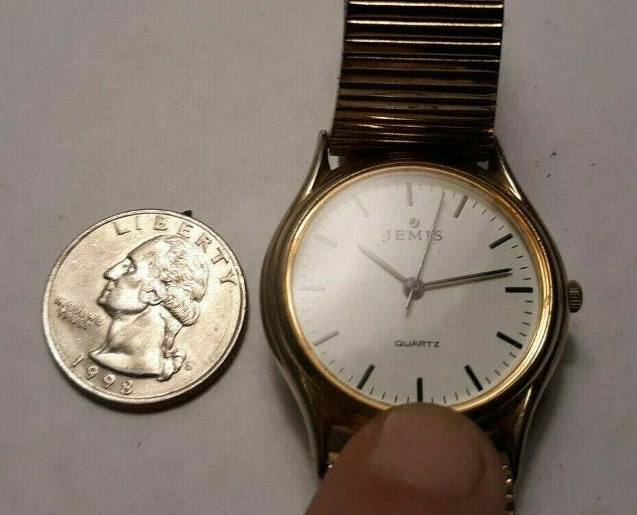 Goldtone JEMIS Quartz Mens Watch WORKS but NEEDS BATTERY