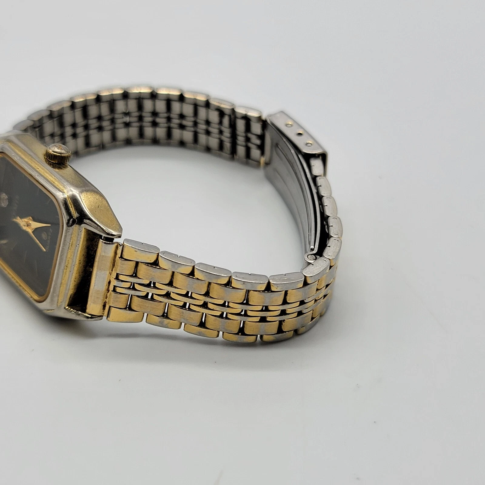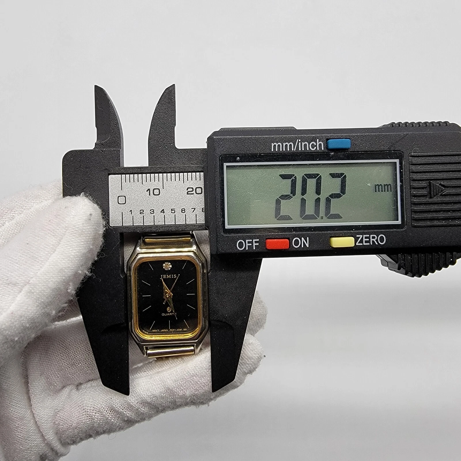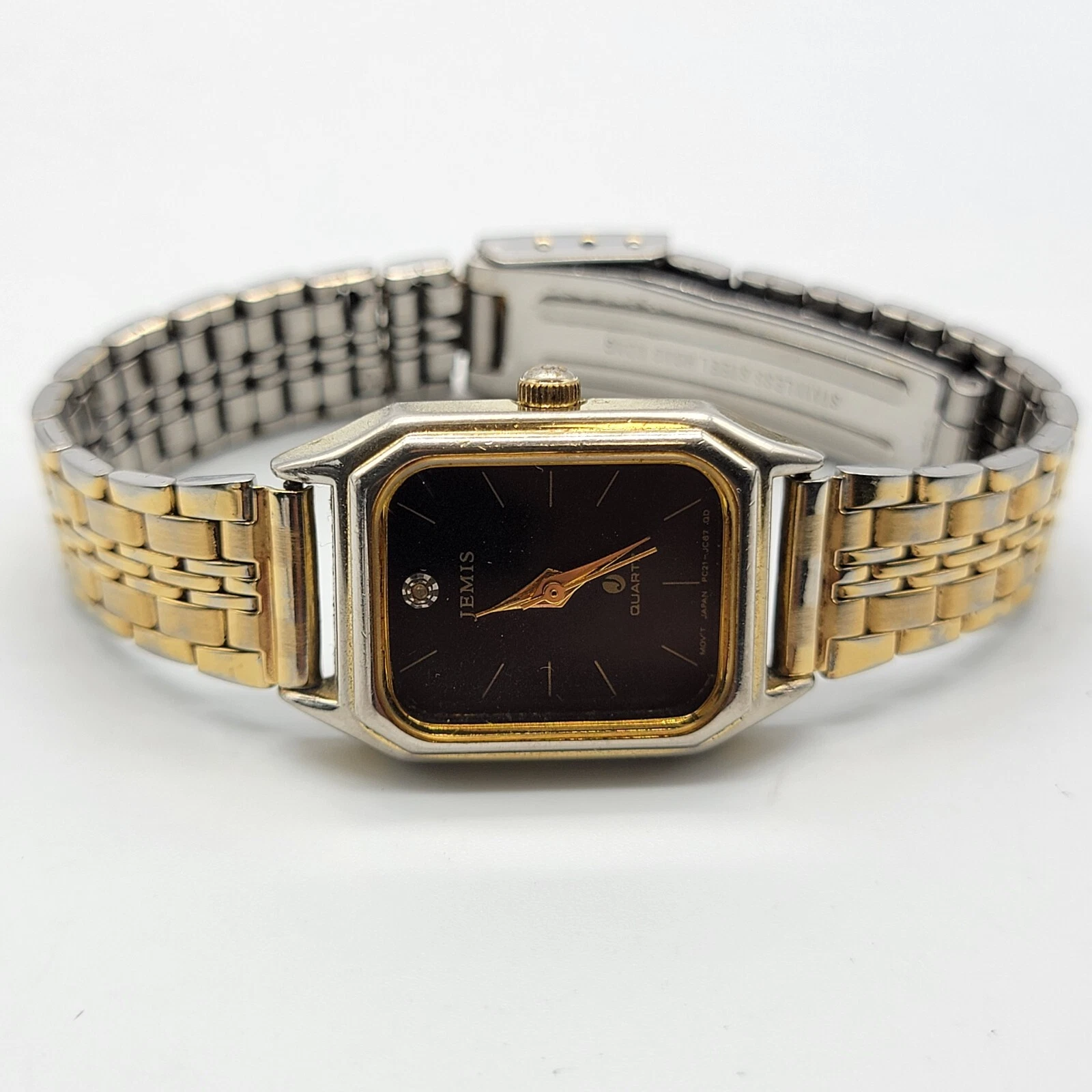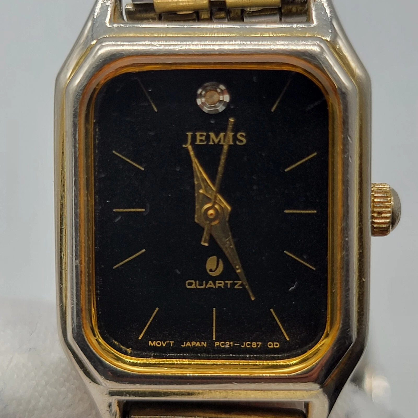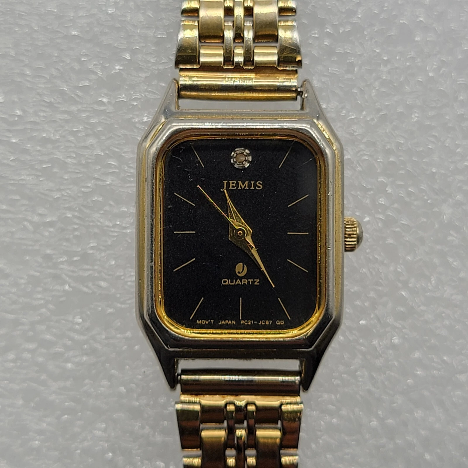 VTG Jemis Women Watch 20mm Black Dial Gold Tone Stainless Steel Band NewBattery*