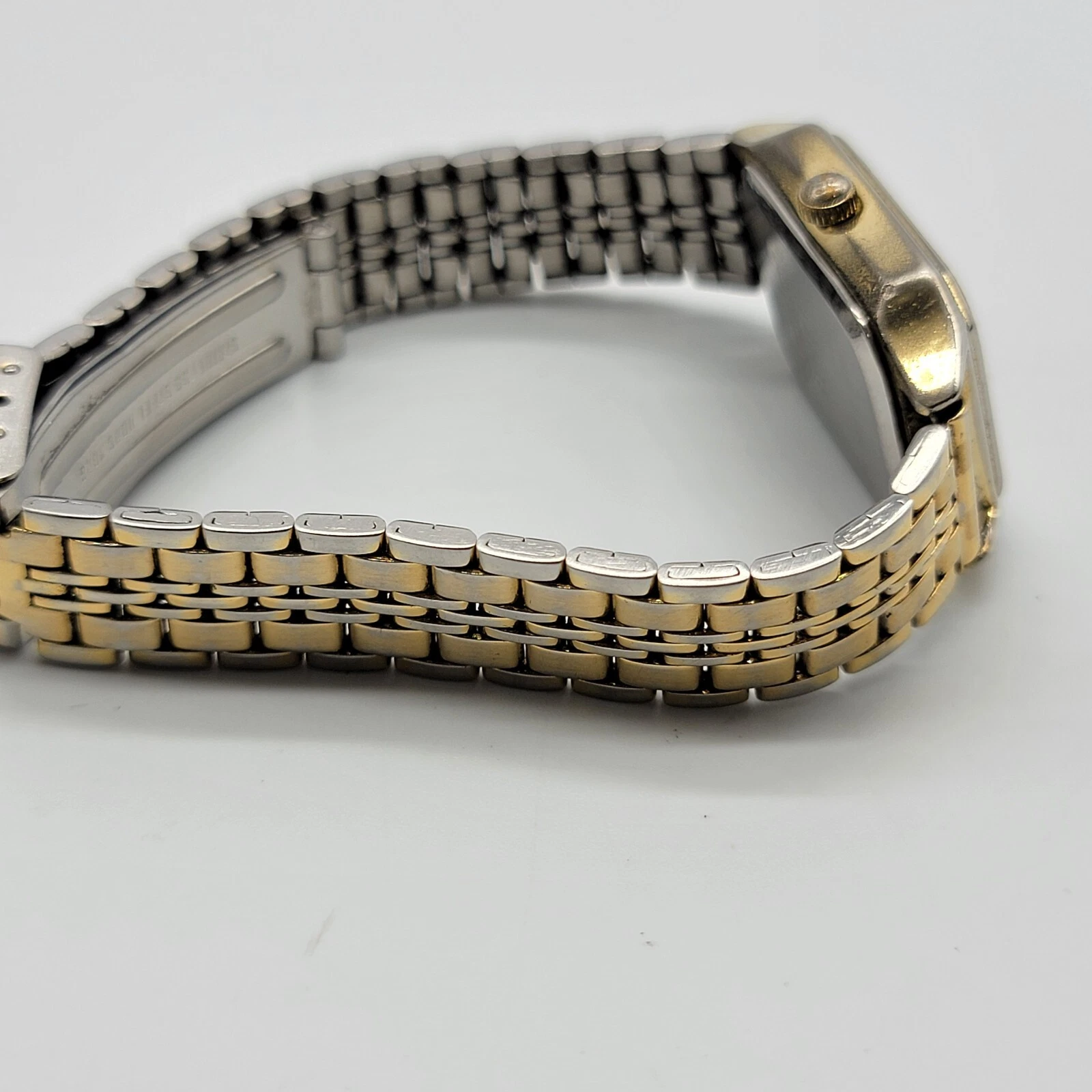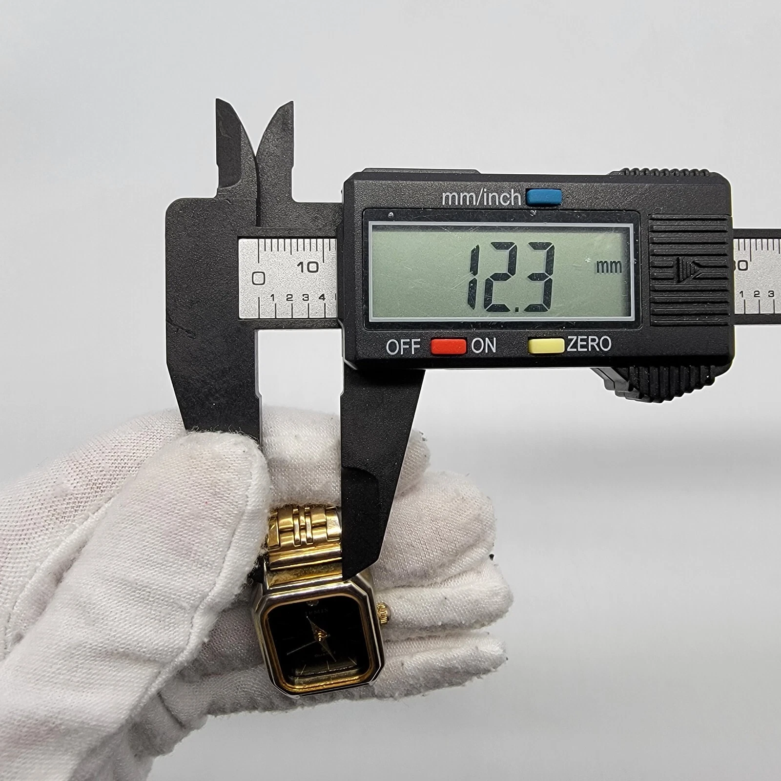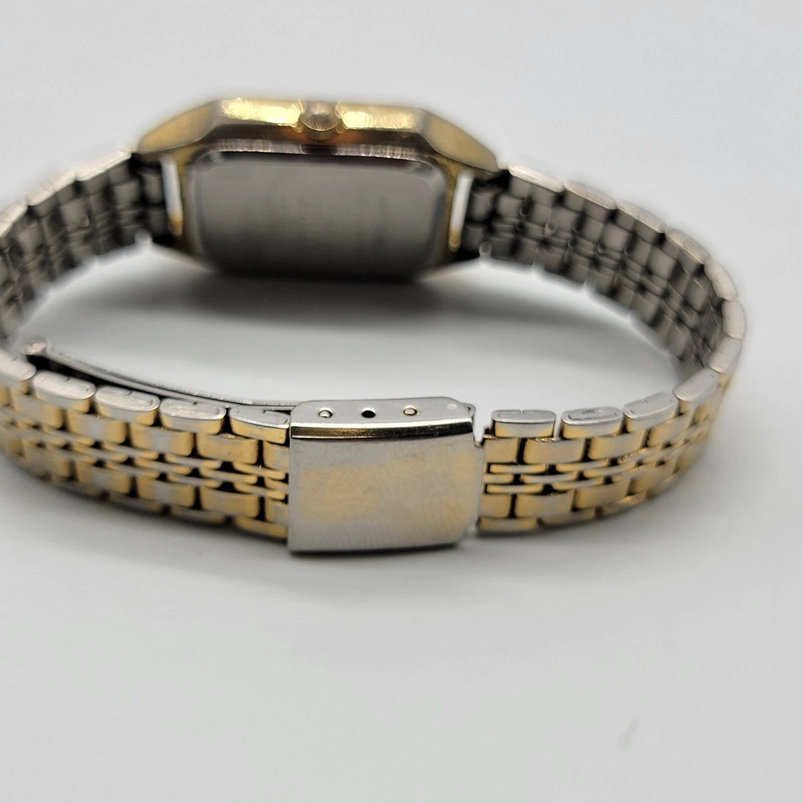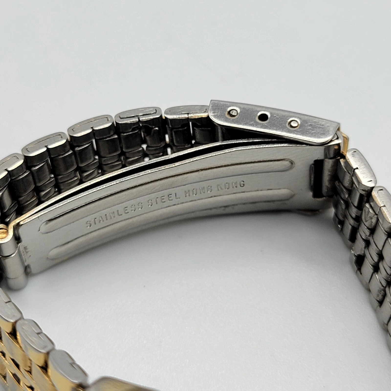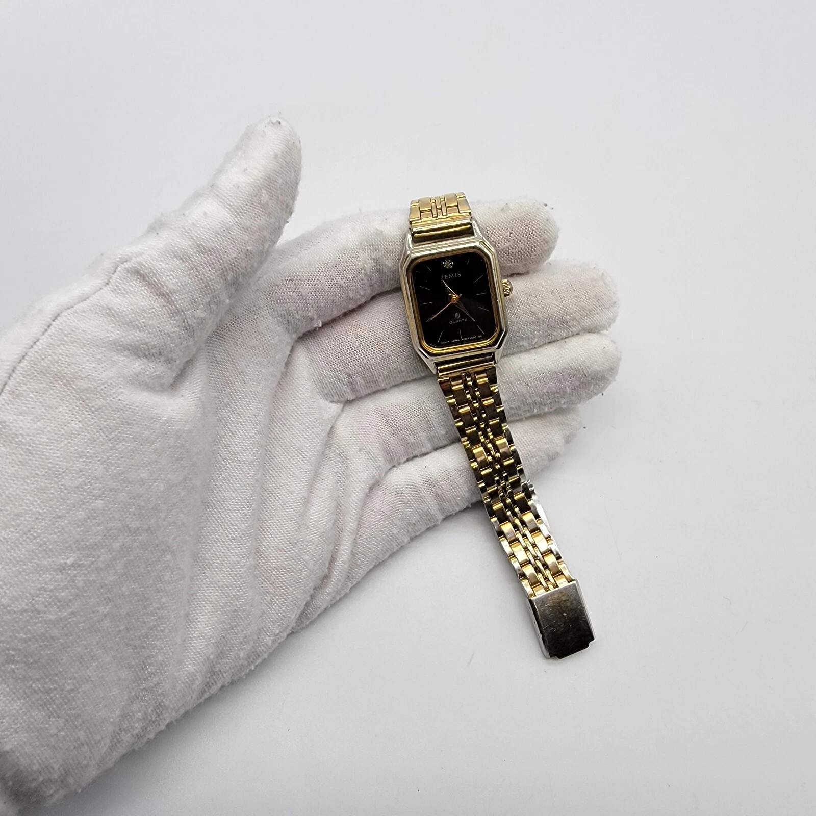 VTG Jemis Women Watch 20mm Black Dial Gold Tone Stainless Steel Band NewBattery*