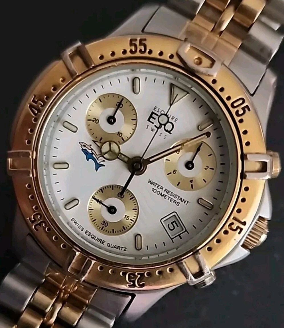 Movado ESQ Swiss Quartz Chronograph Date W/Breit Influences,Stainless & Goldtone