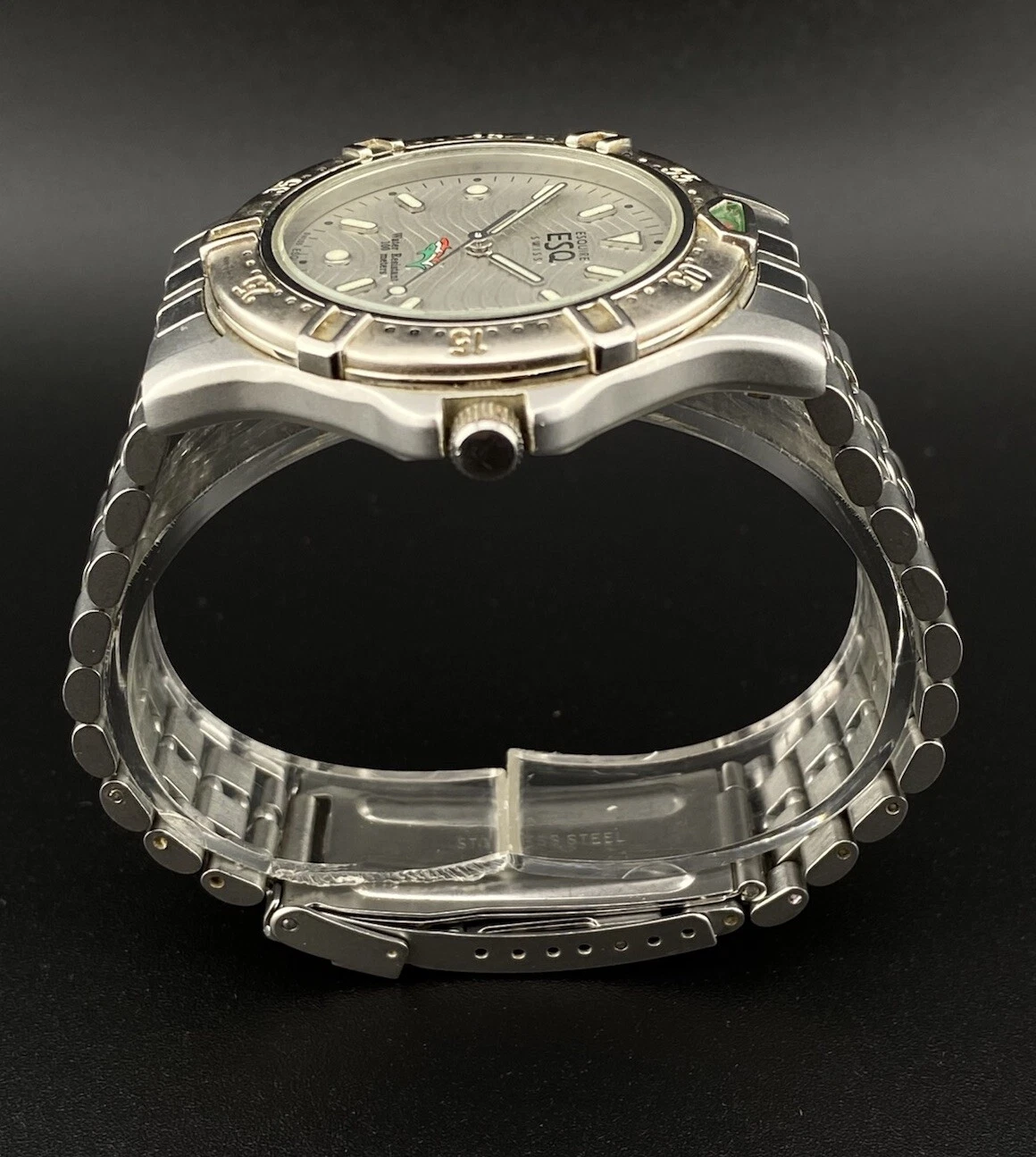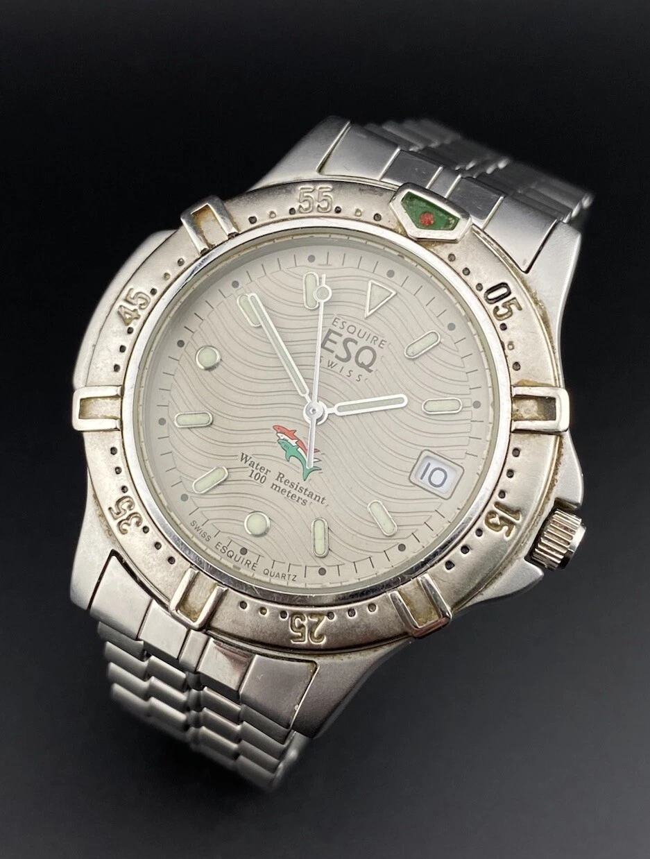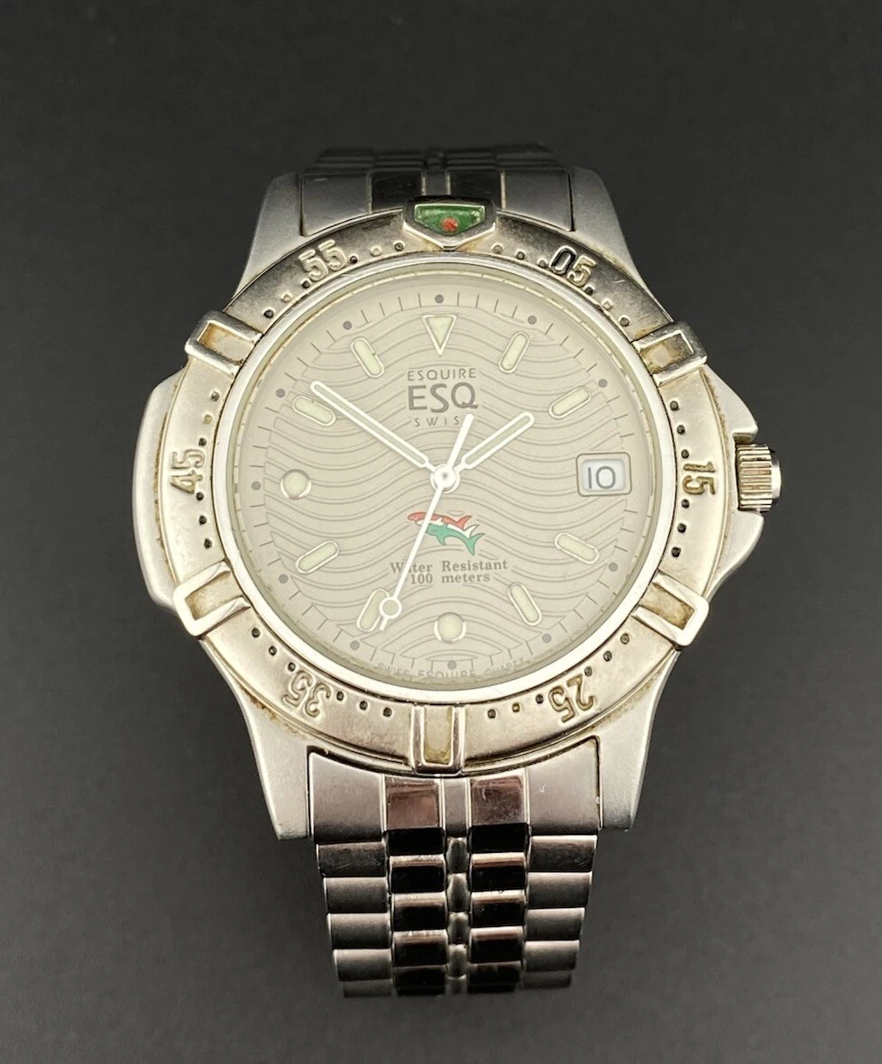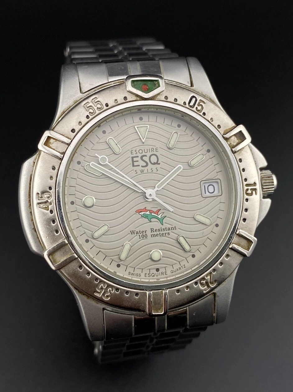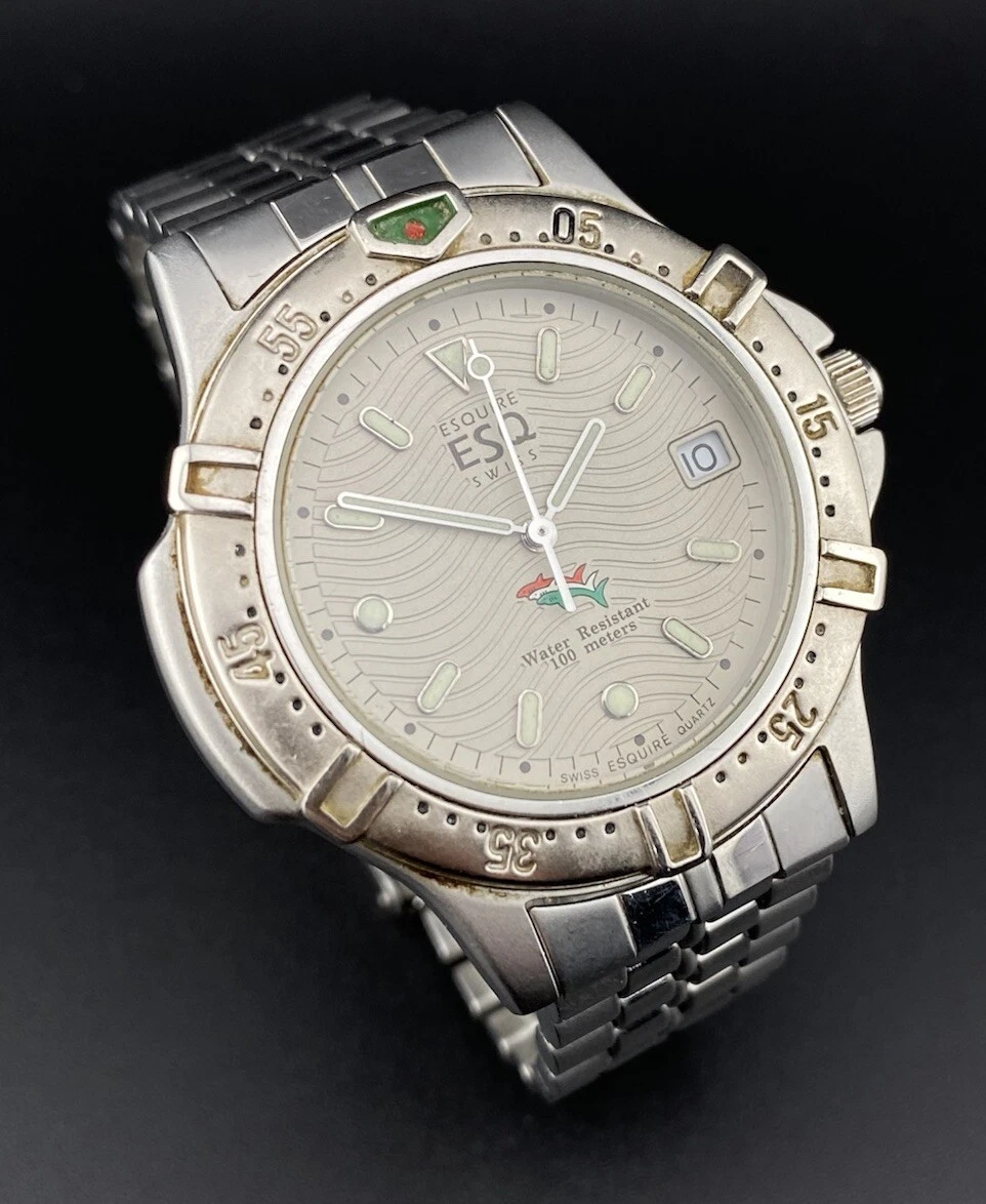 Vintage Movado ESQ Esquire Swiss Date Stainless Steel Men’s Watch Diver Nautical