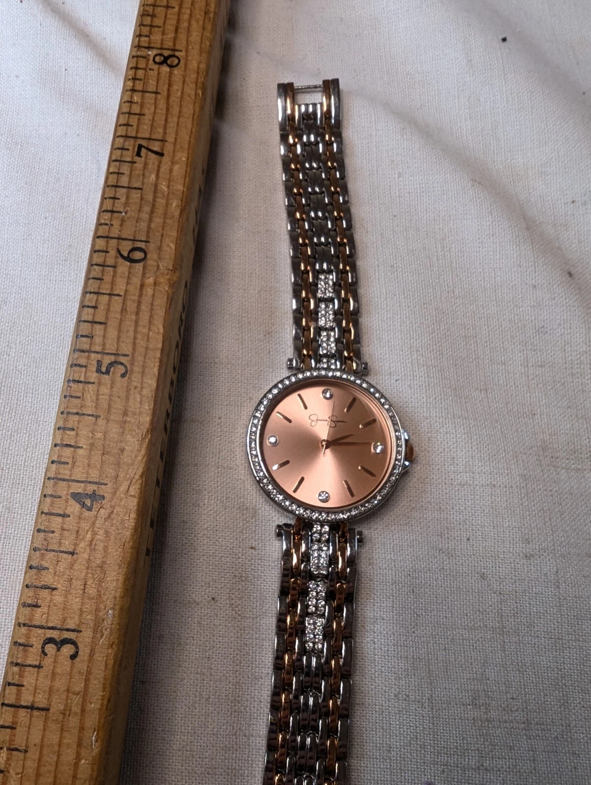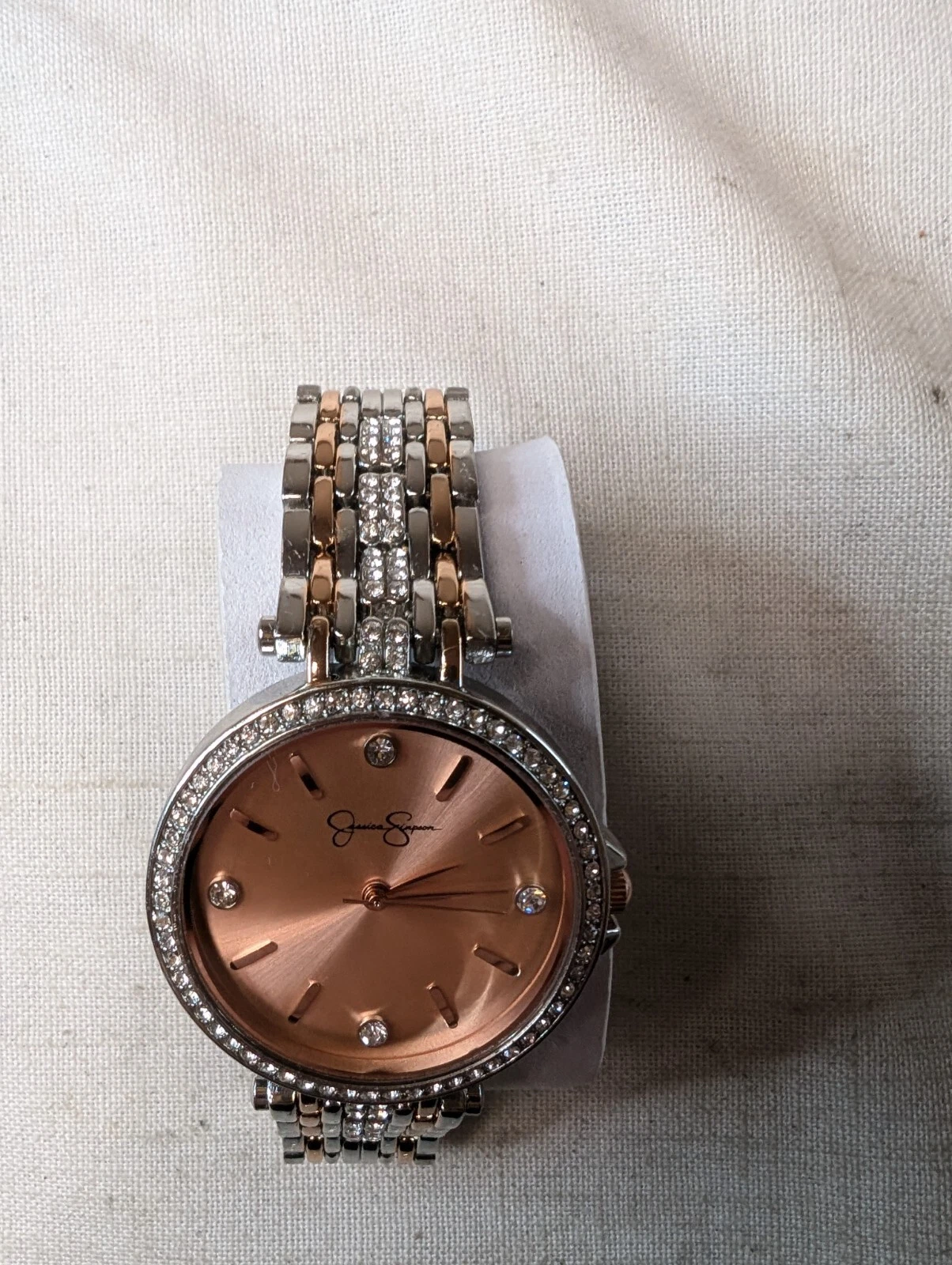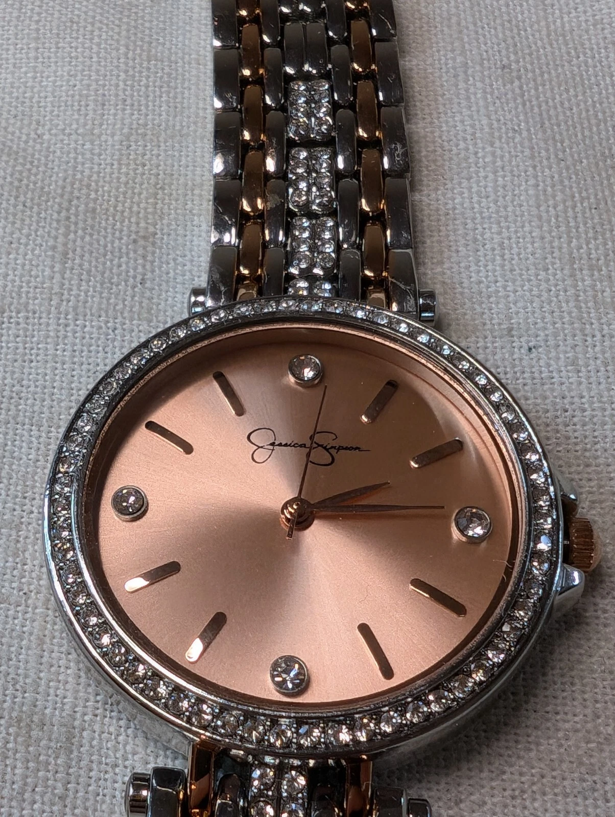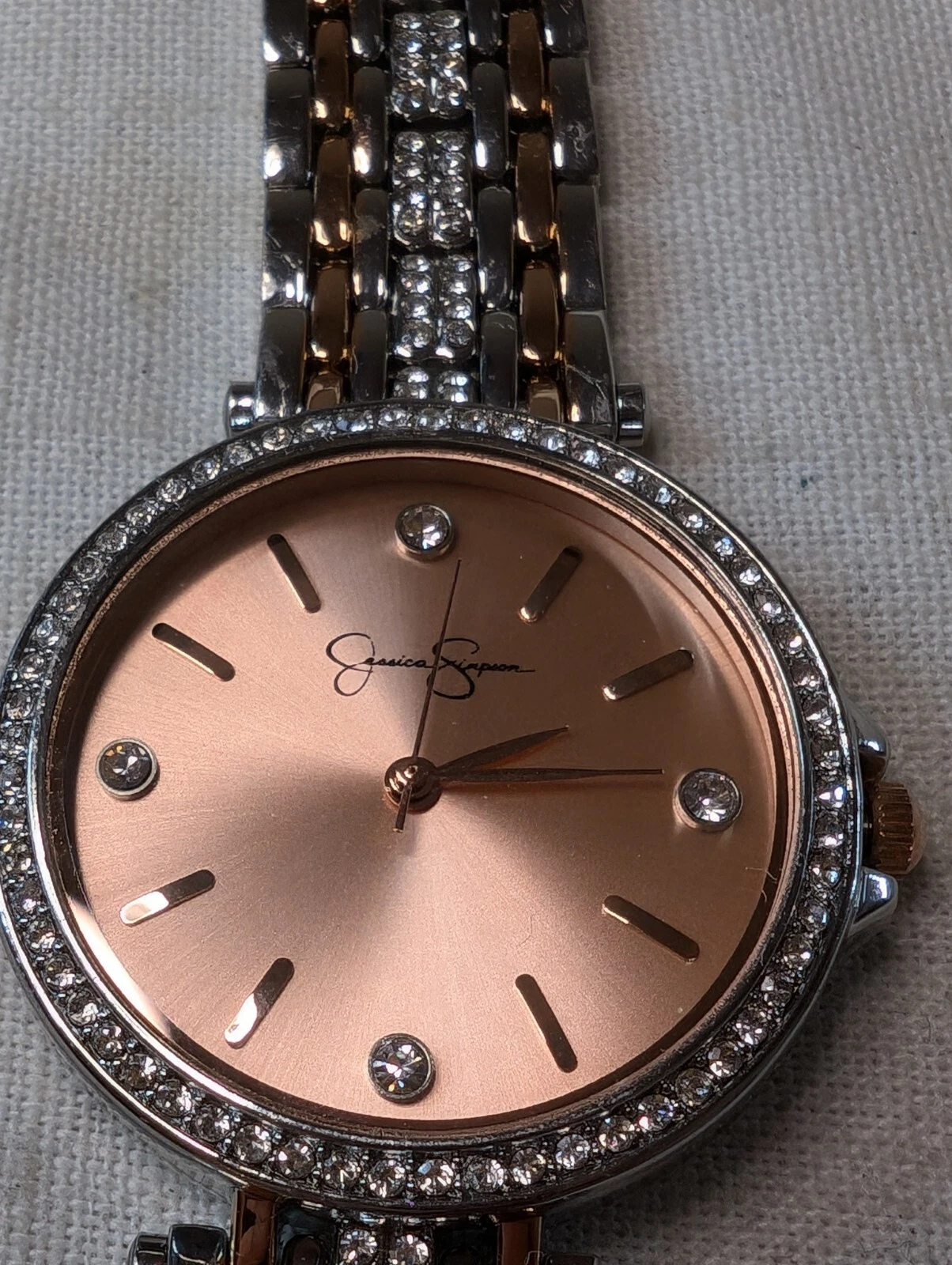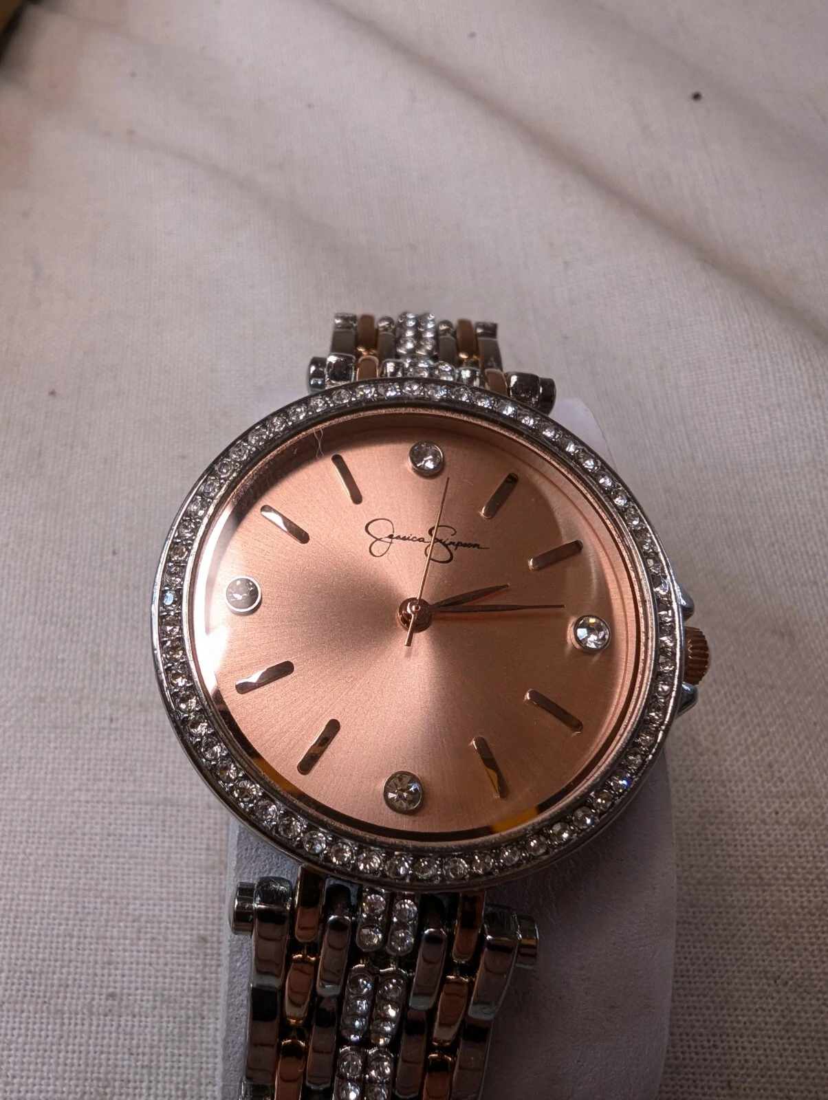 Jessica Simpson New Women's 8" Silvertone Gemmed Watch JSB8006TSL New Battery