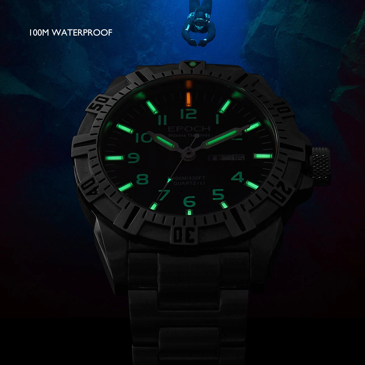 EPOCH Men Pilot Watch Military Watches Quartz Wristwatch 10ATM Luminous Sport