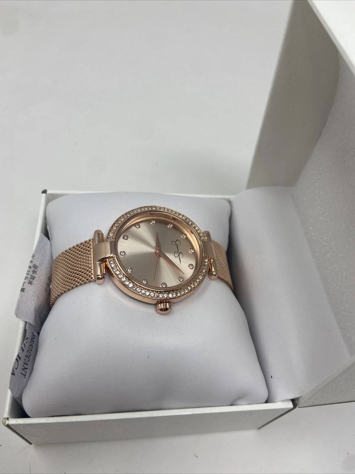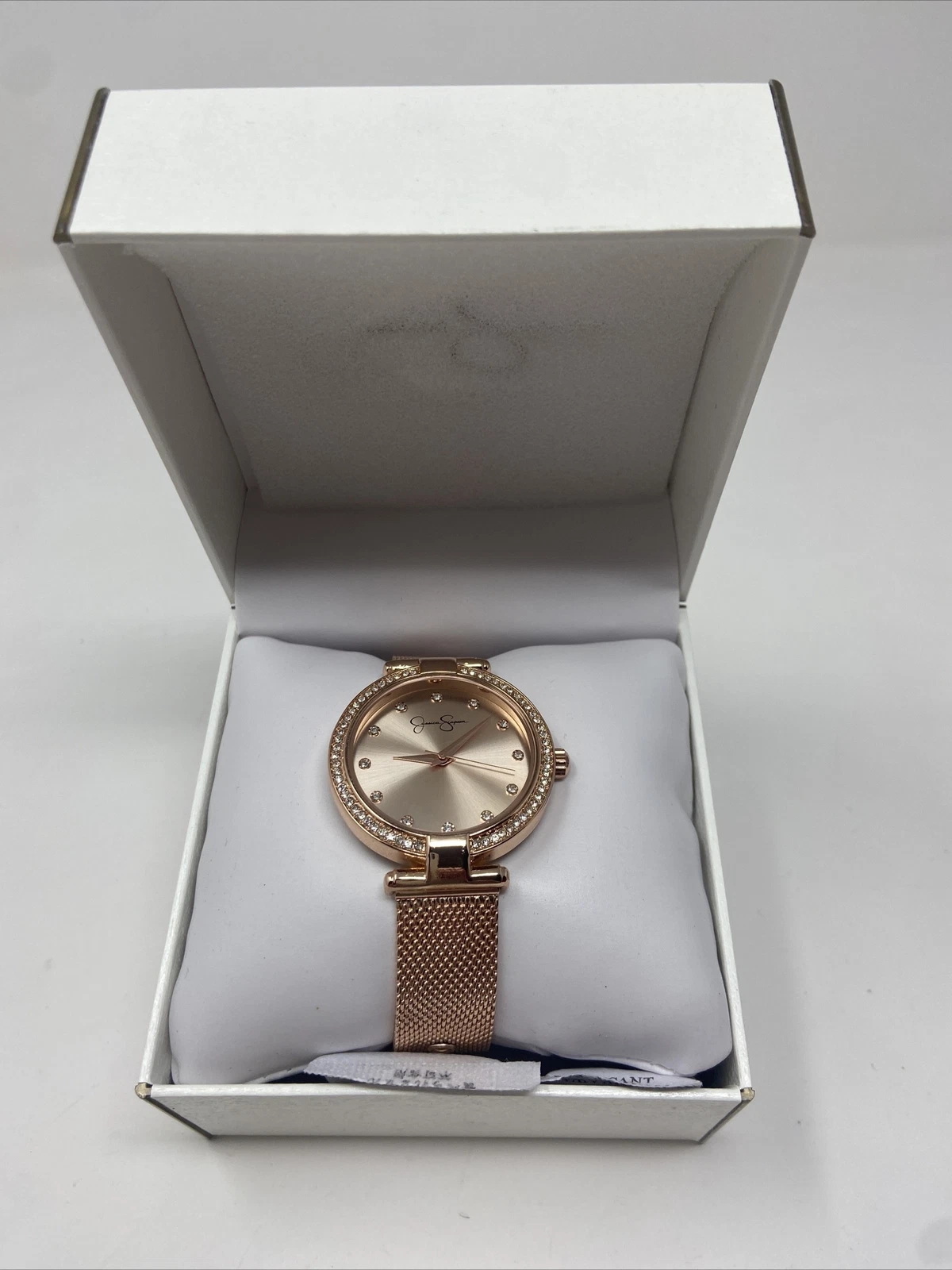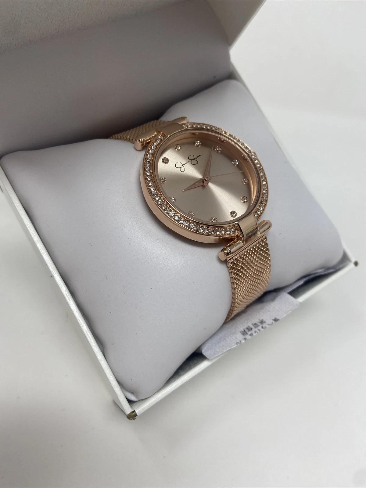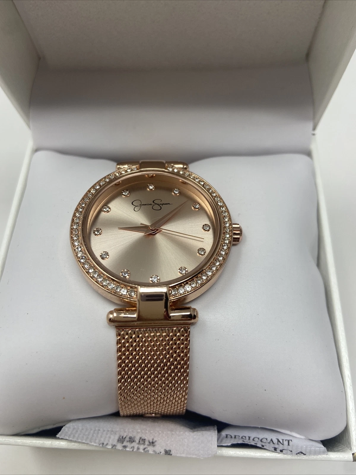 Jessica Simpson Women's Rose Gold Watch Mess Band Diamond Rhinestones No Battery