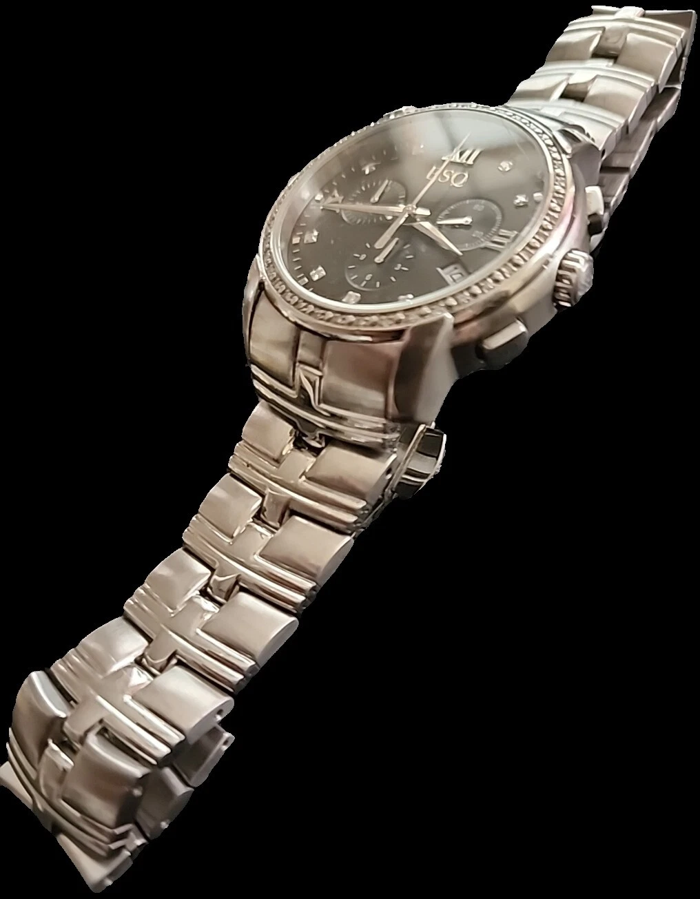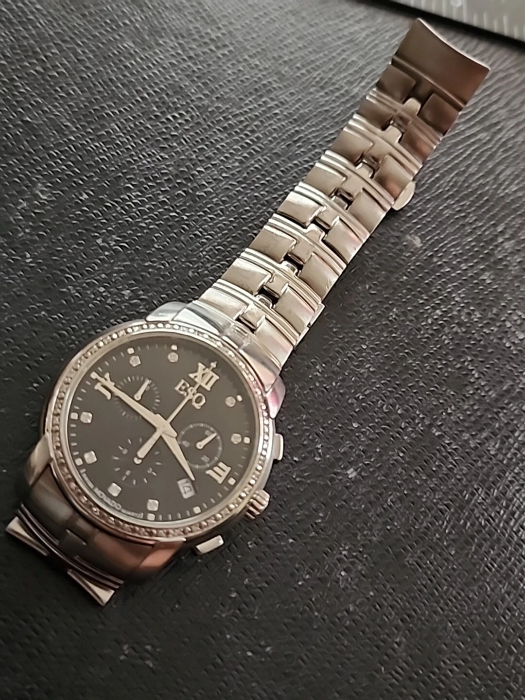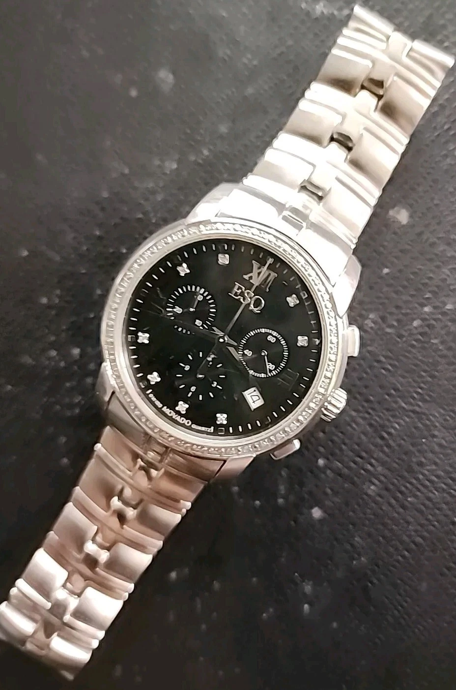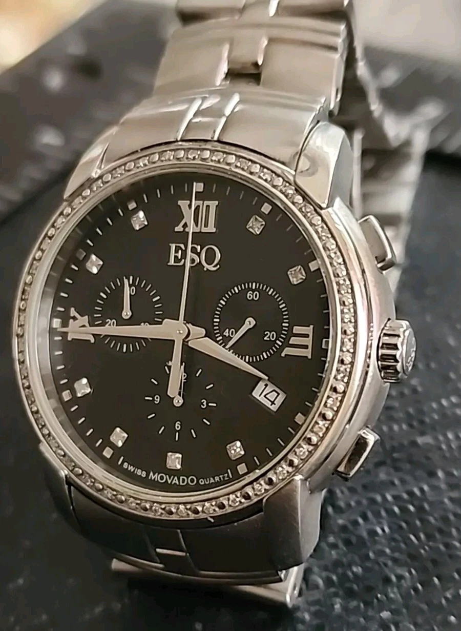 Movado ESQ Chrono Onyx Tone Roman MarkersDate Dial,Solid Stainless,Satin/Polish.