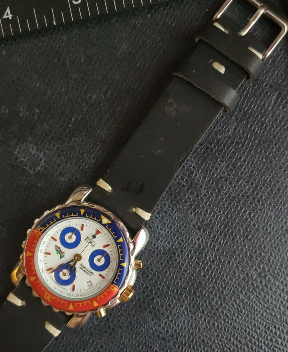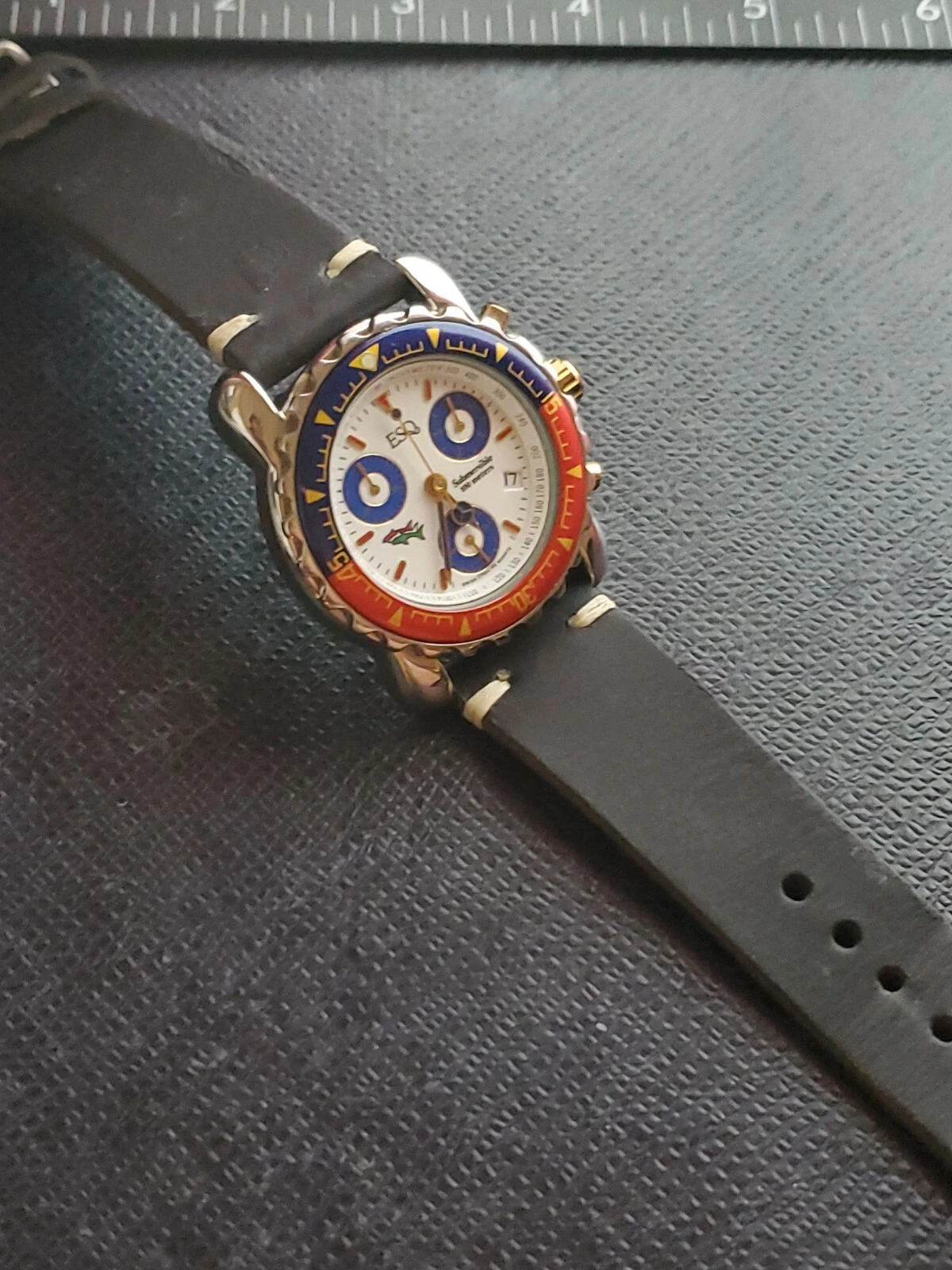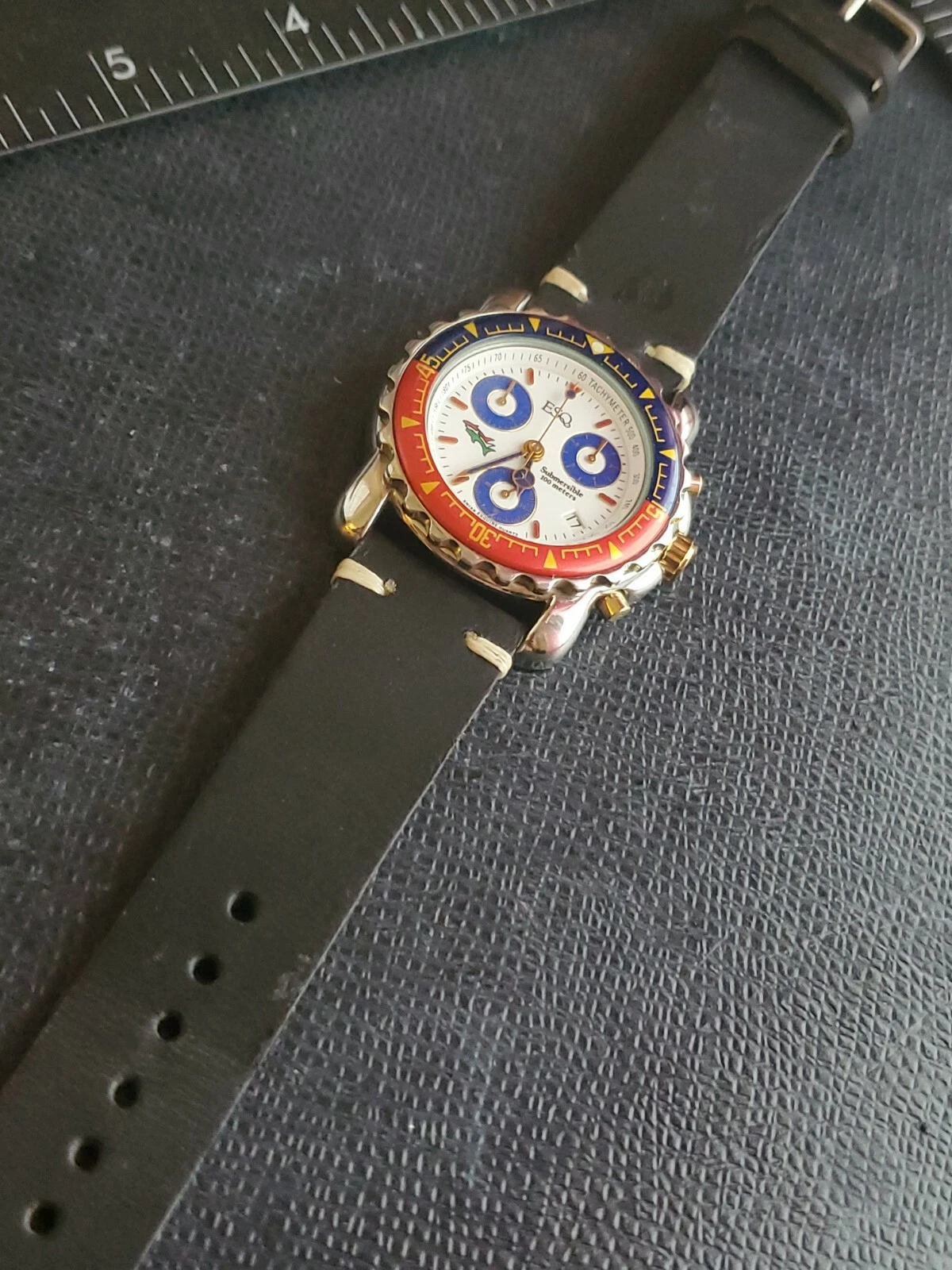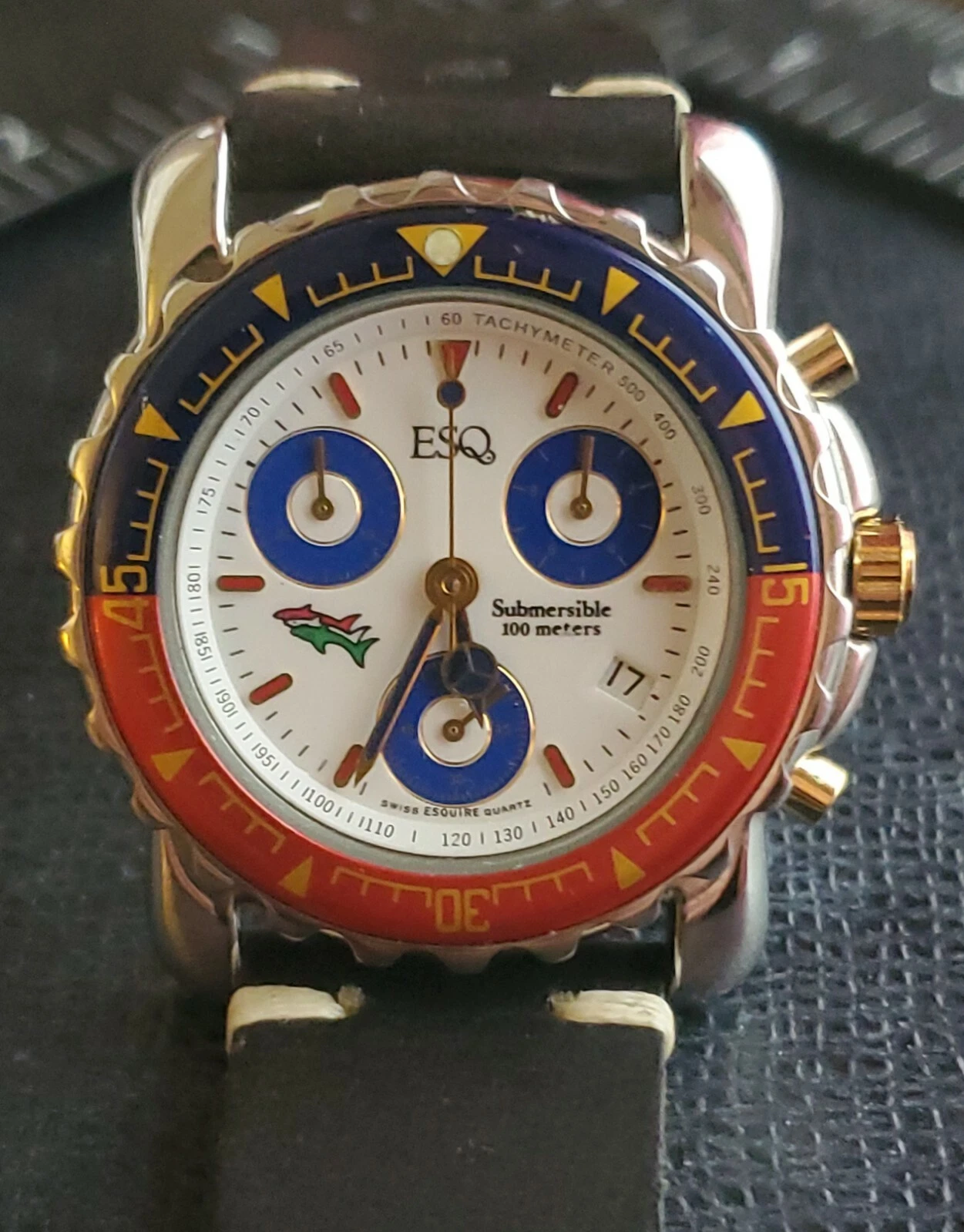 Vintage Movado ESQ Chrono Swiss Quartz Rare Clown Dial,Pepsi Bezel & New Band.