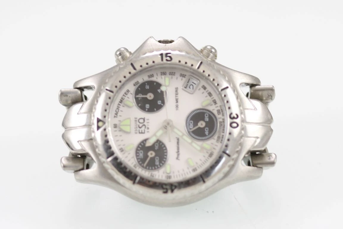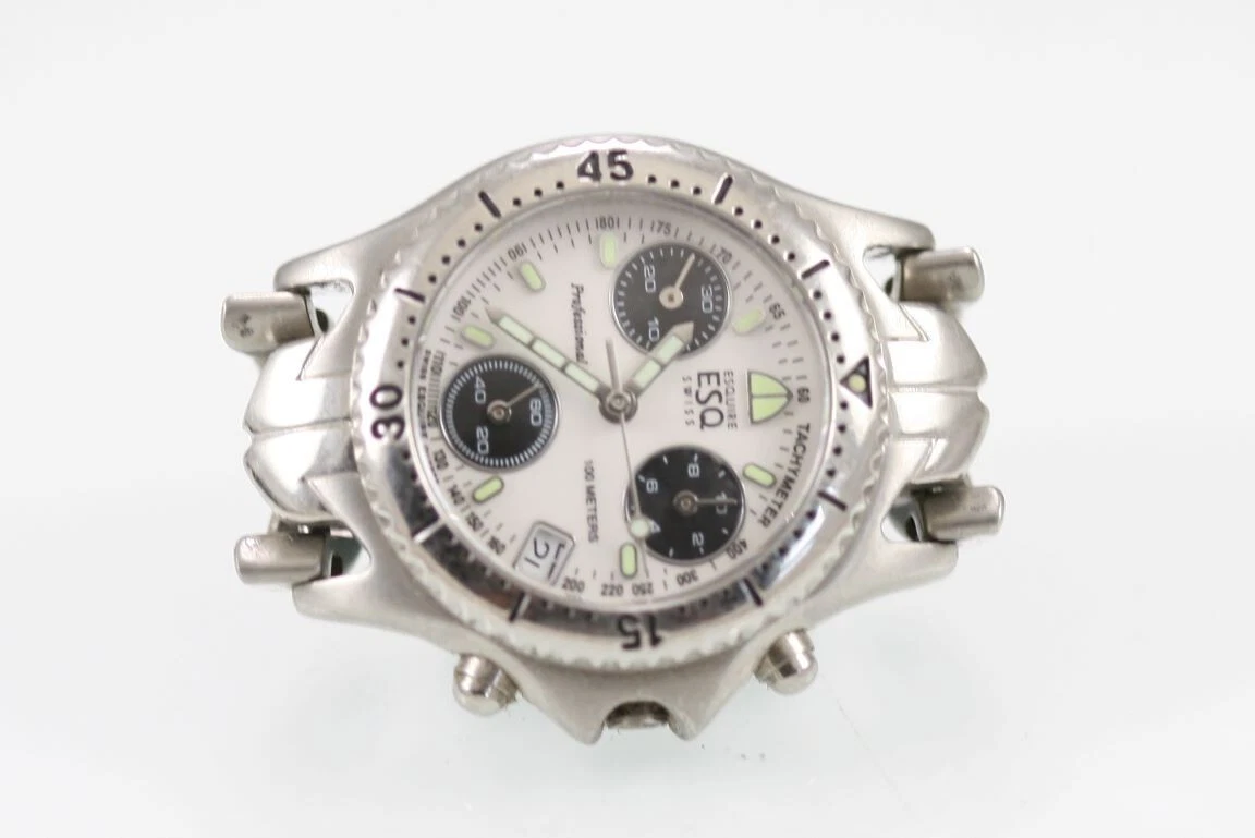 ESQ Women Watch Stainless Steel Chron Date 100m White NON WORKING PART Quartz