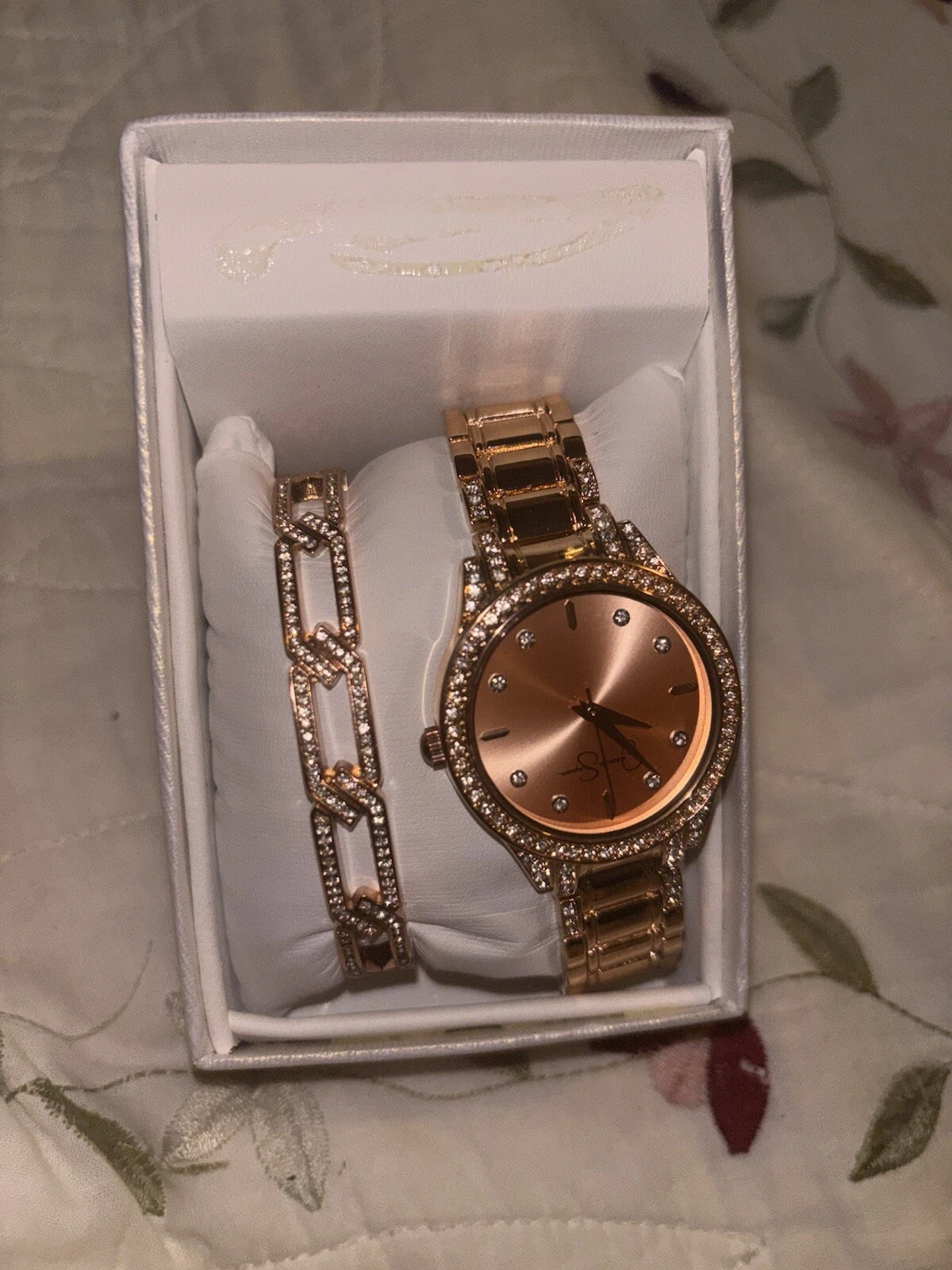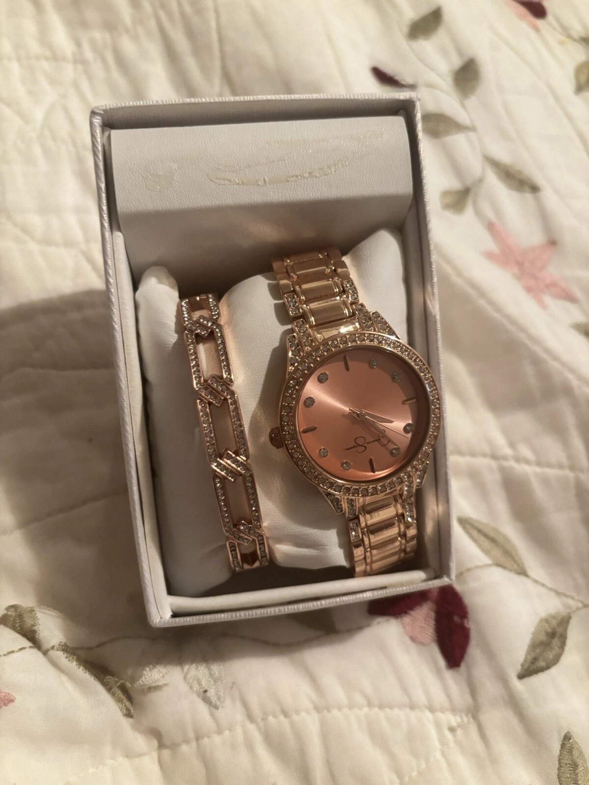 Jessica Simpson Watch And Bracelet Combo Womens Rose Gold New