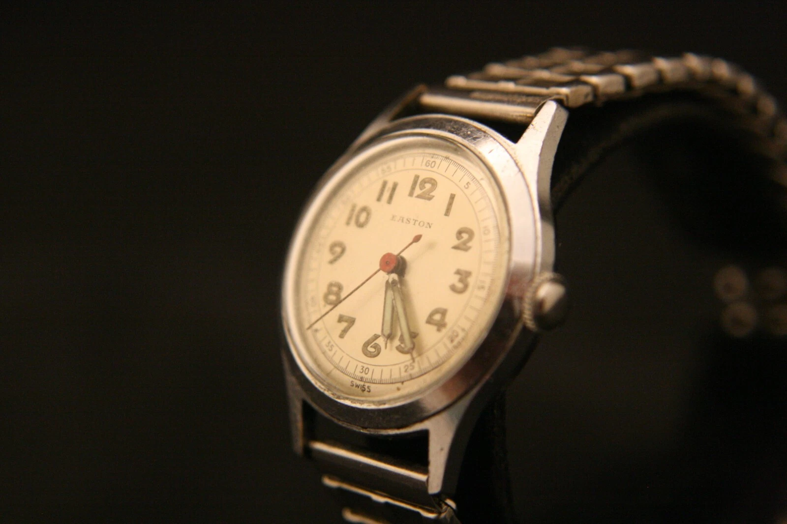Very rare vintage WWII 1940's ESKA / Easton 17J Swiss men's military wristwatch
