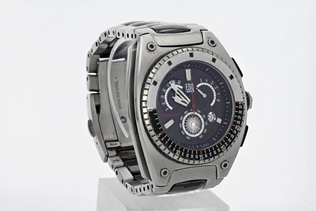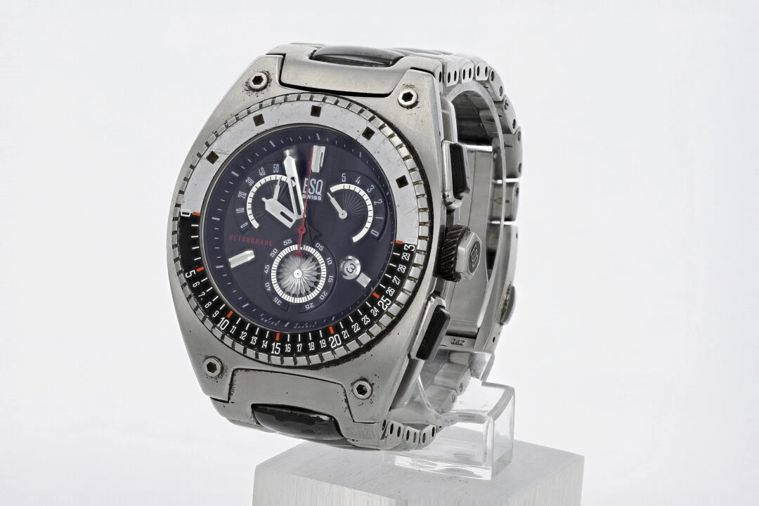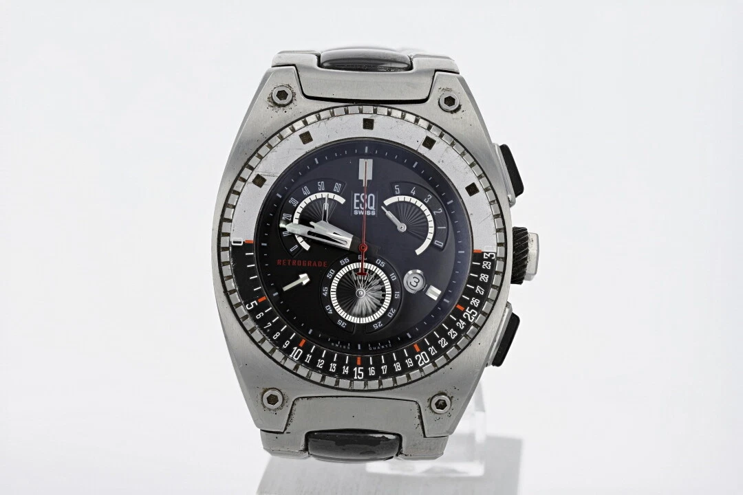ESQ Fusion Retrograde Black Dial Chronograph Stainless Steel Men's Wristwatch