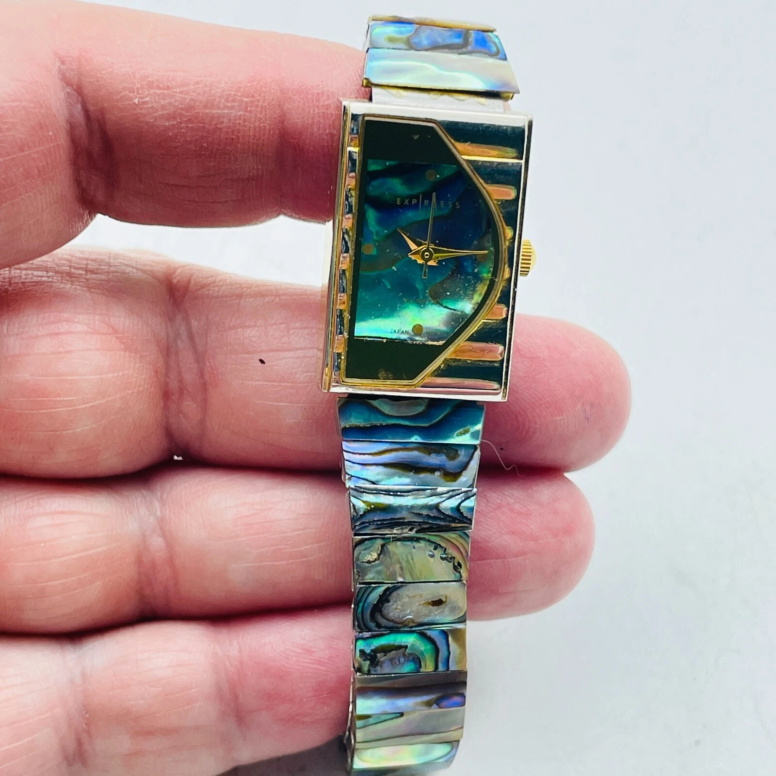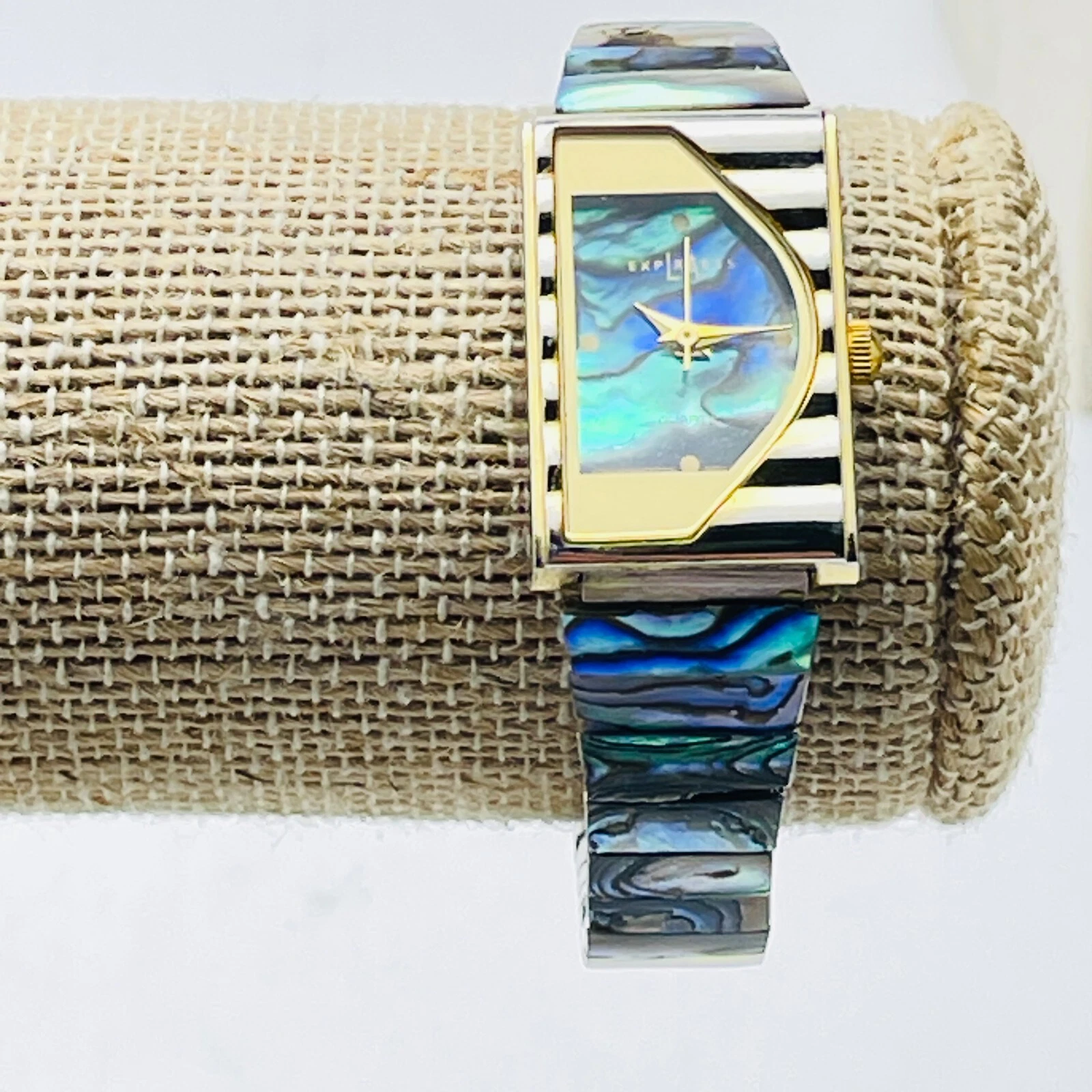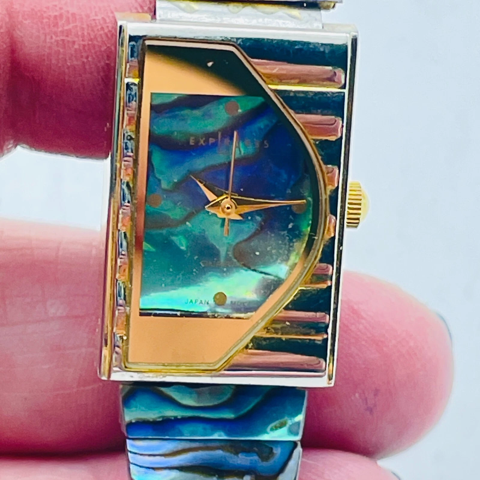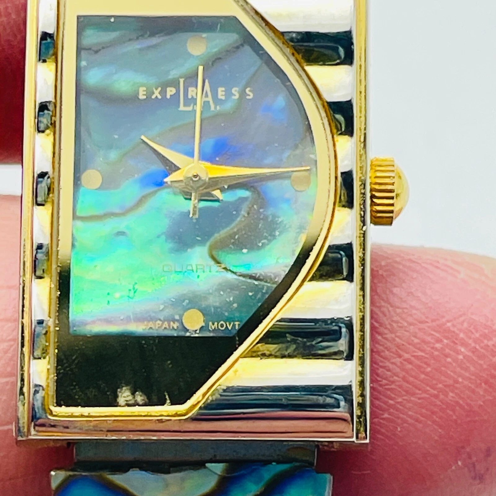 LA EXPRESS Ladies Expansion Watch Gold Tone Blue Shell Quartz READ