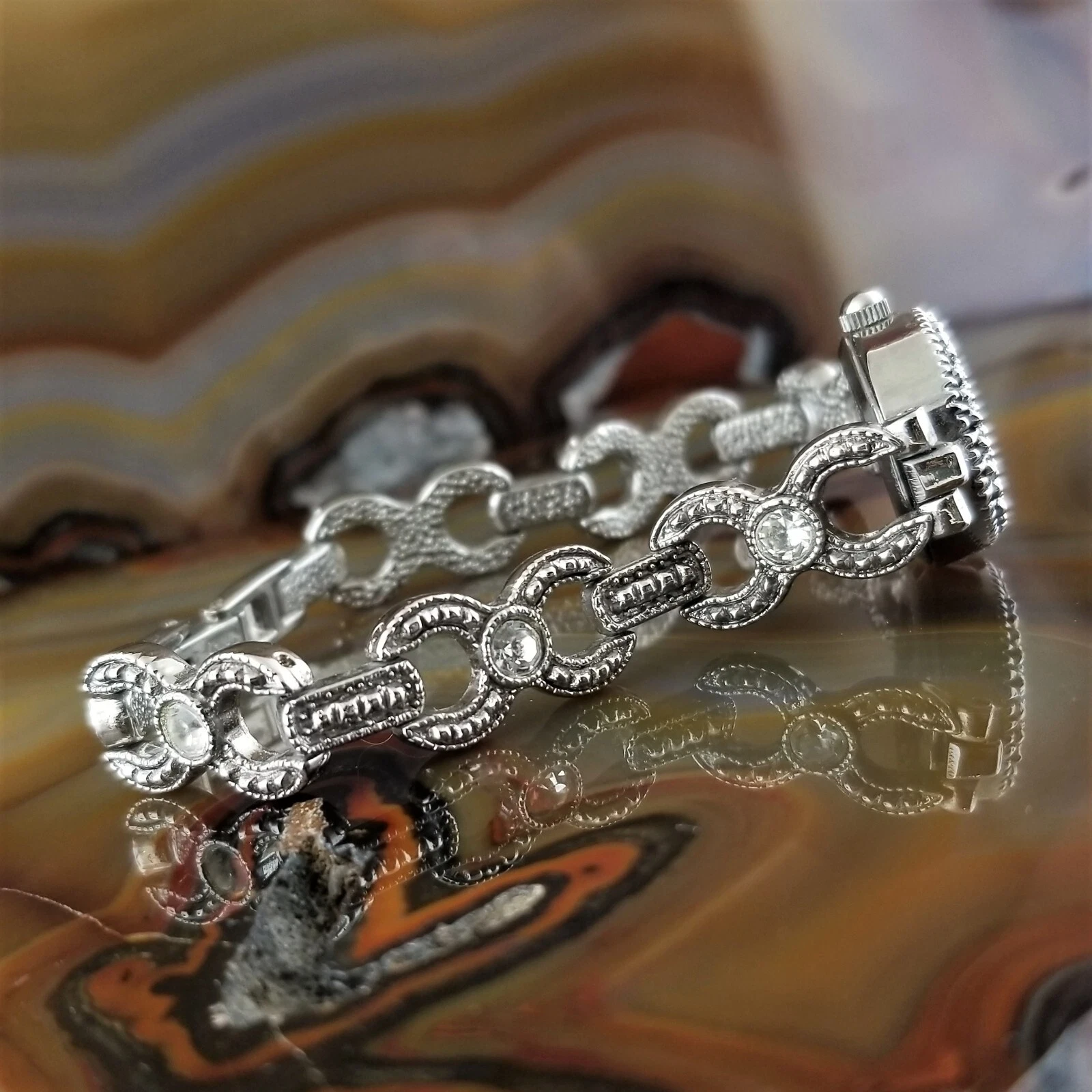 Women's LA Express Silver Horseshoe Link Bracelet Crystal Accents