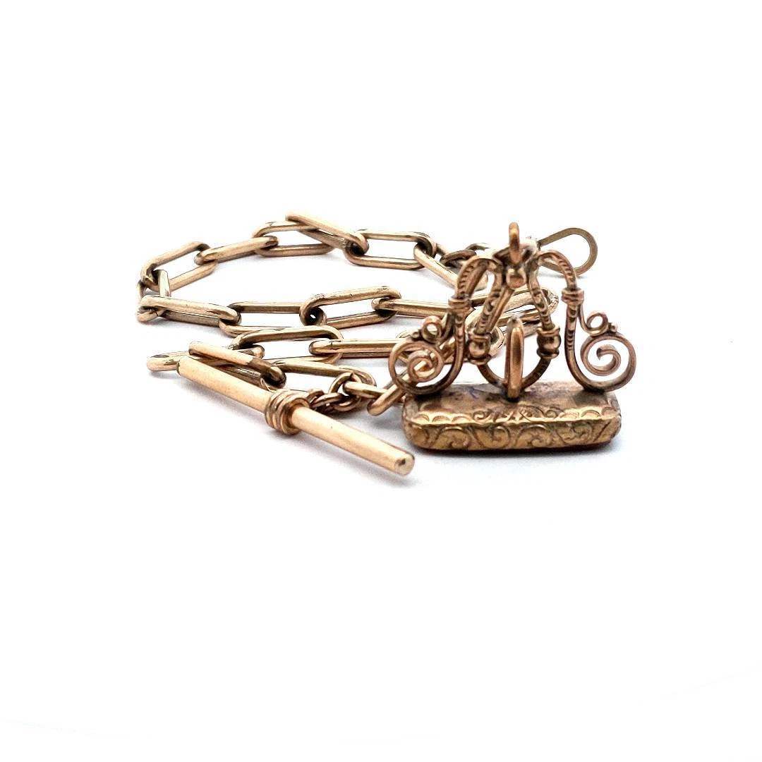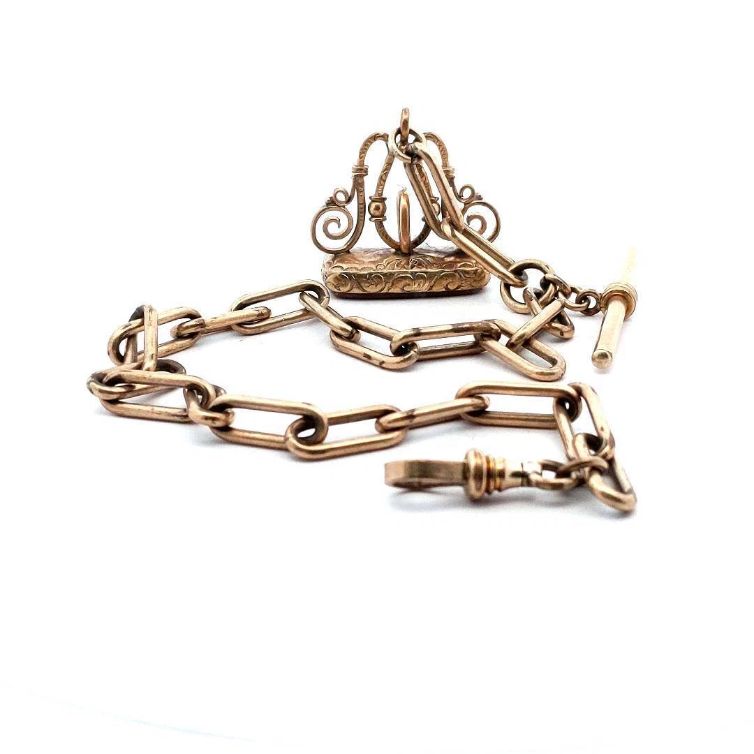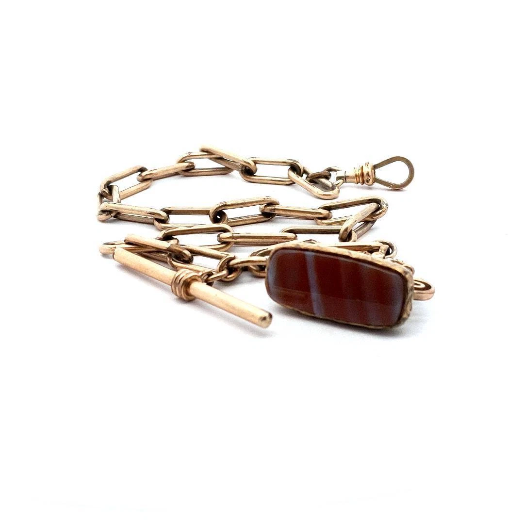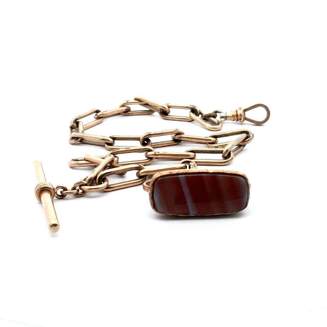 Antique Gold Filled Banded Agate Fob Pocket Watch Chain