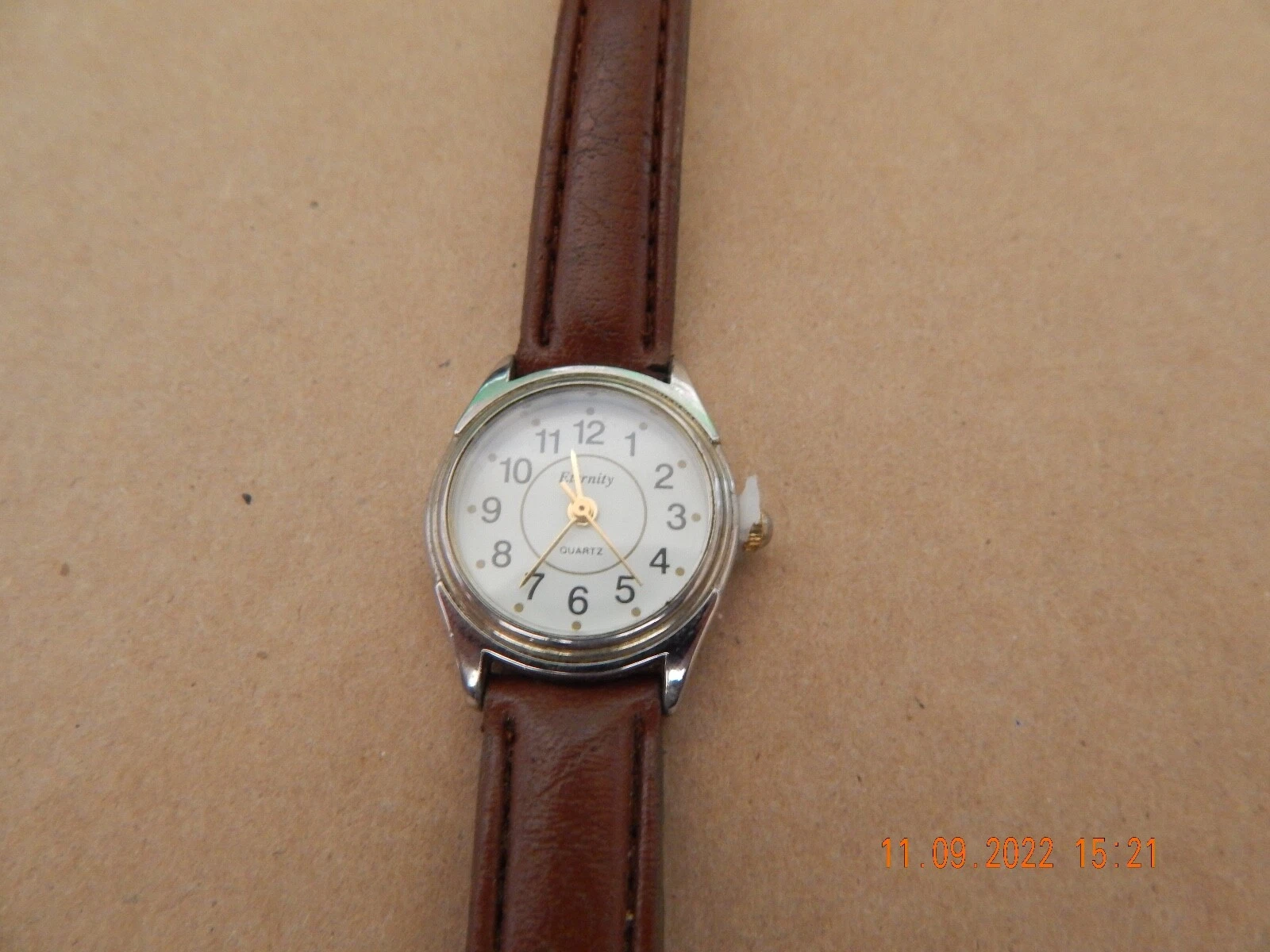 Eternity Watch Women Silver Tone Round Dial Leather BAND New Battery