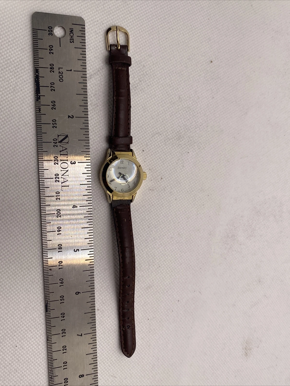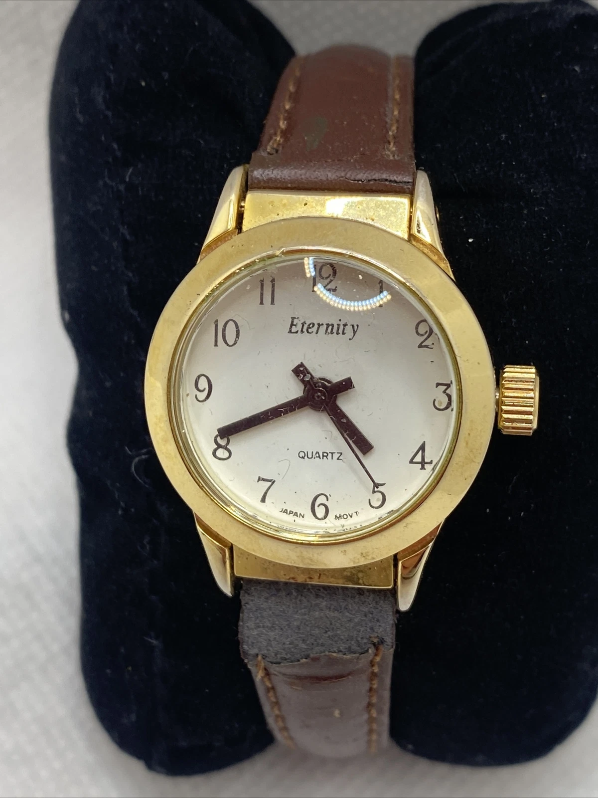 Eternity Gold Watch Leather Band Works New Battery Used!