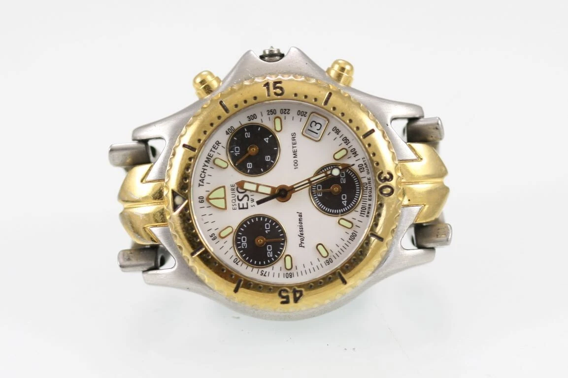 ESQ Watch Women Date Stainless Silver Gold Chron 100m NON WORKING PART Quartz